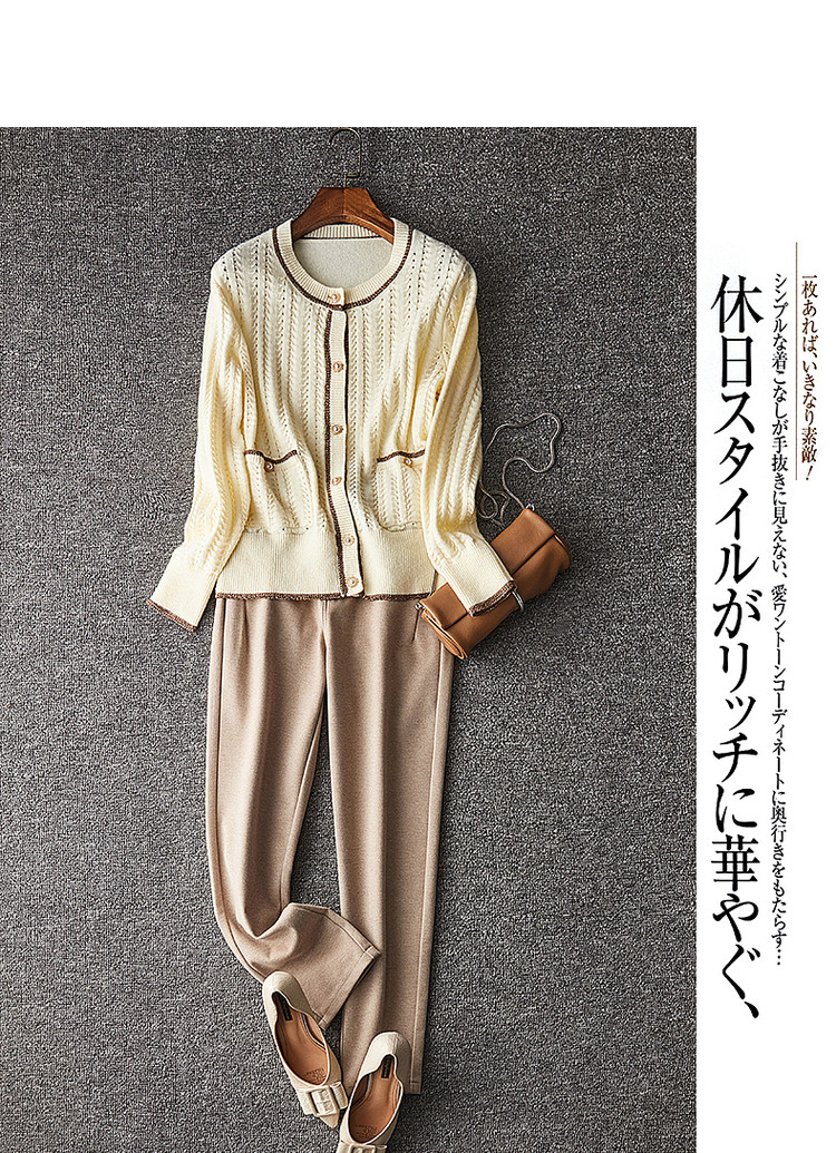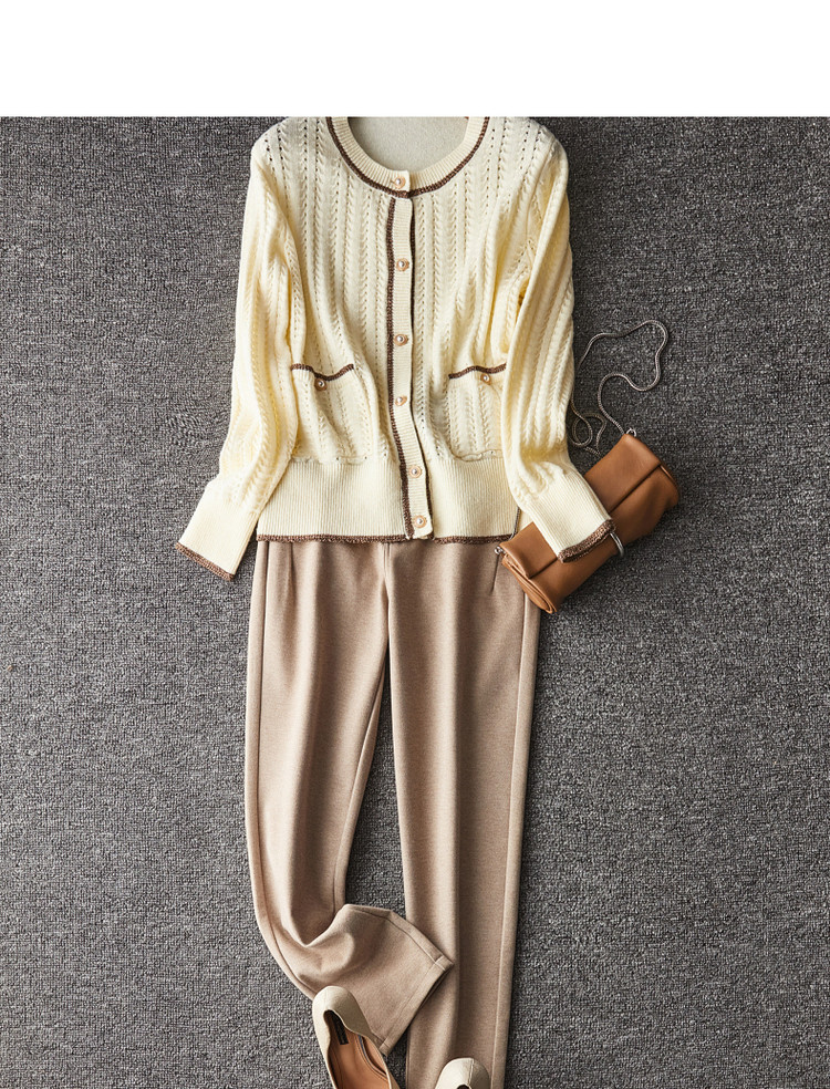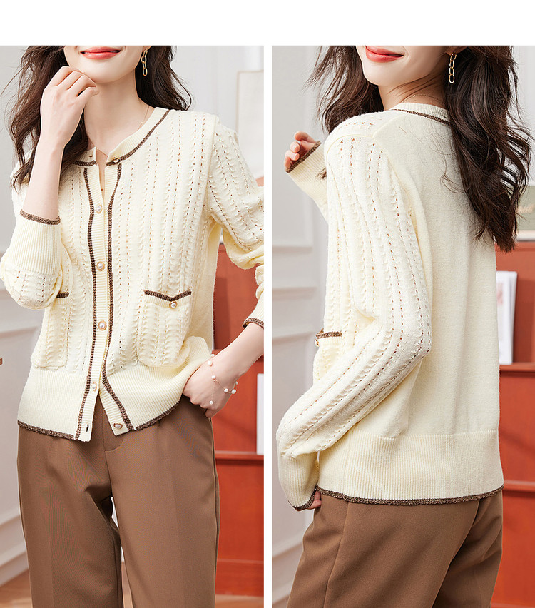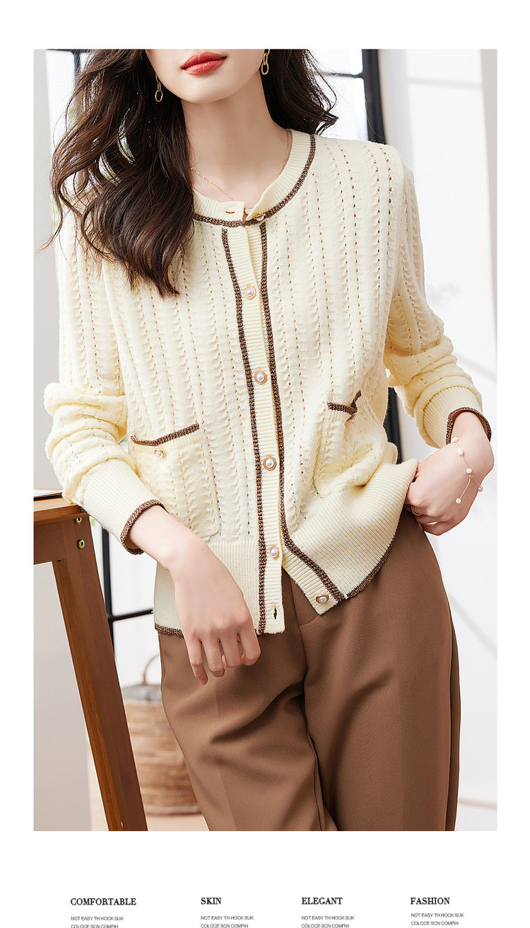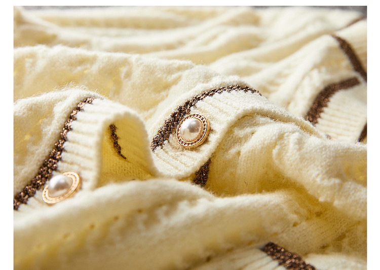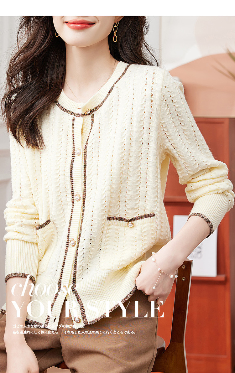 商品名称:【爆热销】春秋安哥拉纤绒纱拼色开衫金属丝嵌边毛衣女春秋 411777