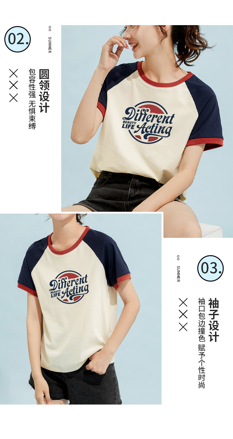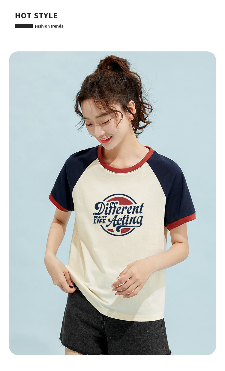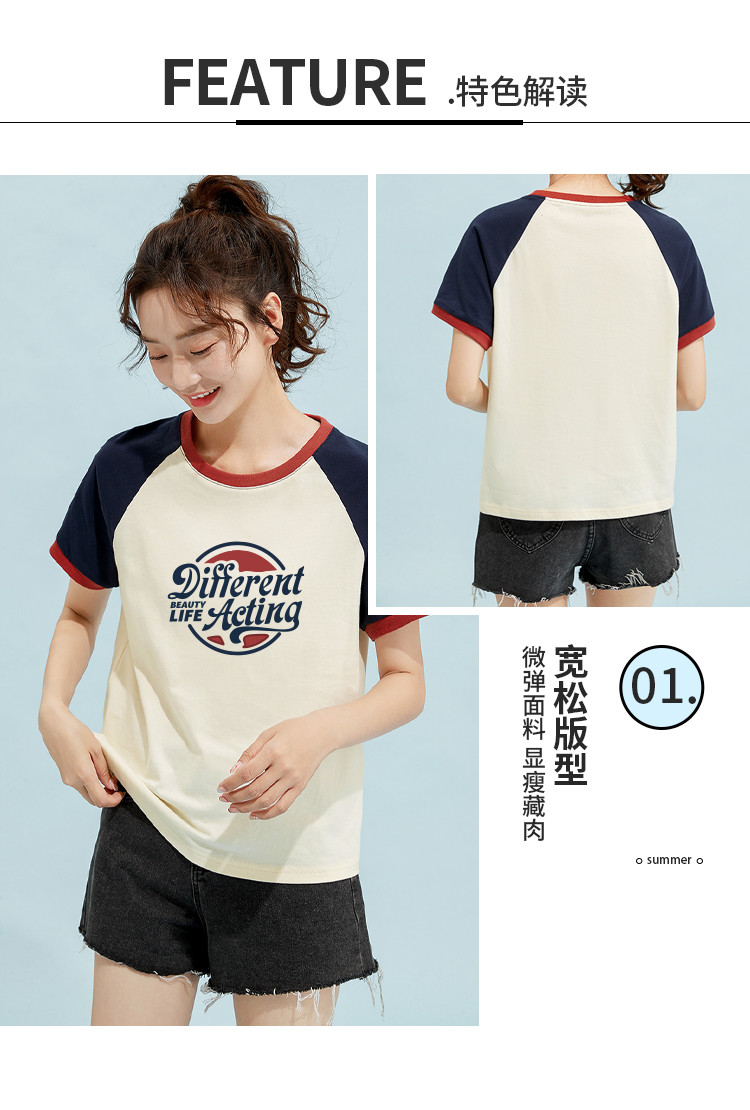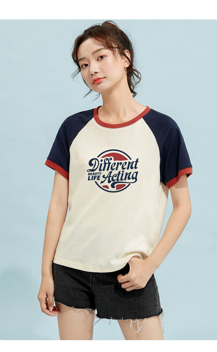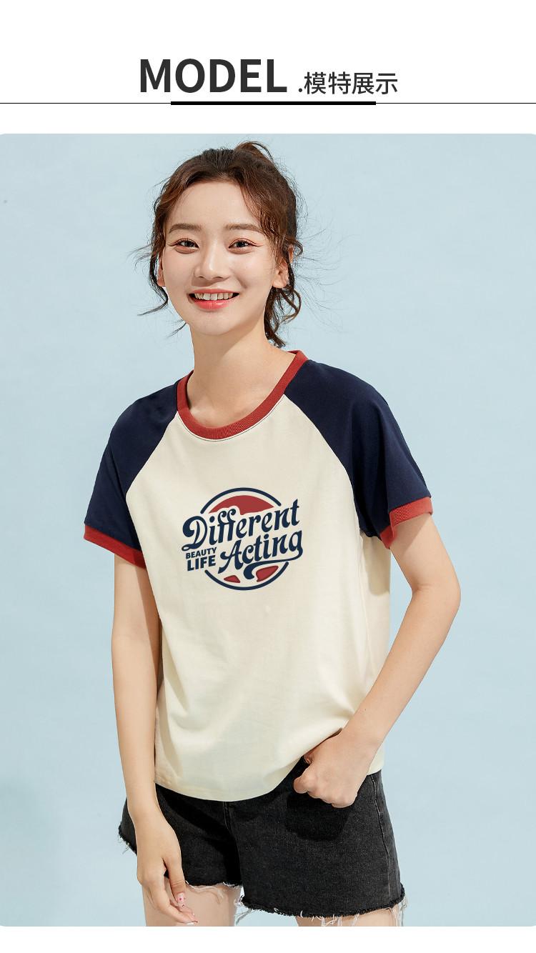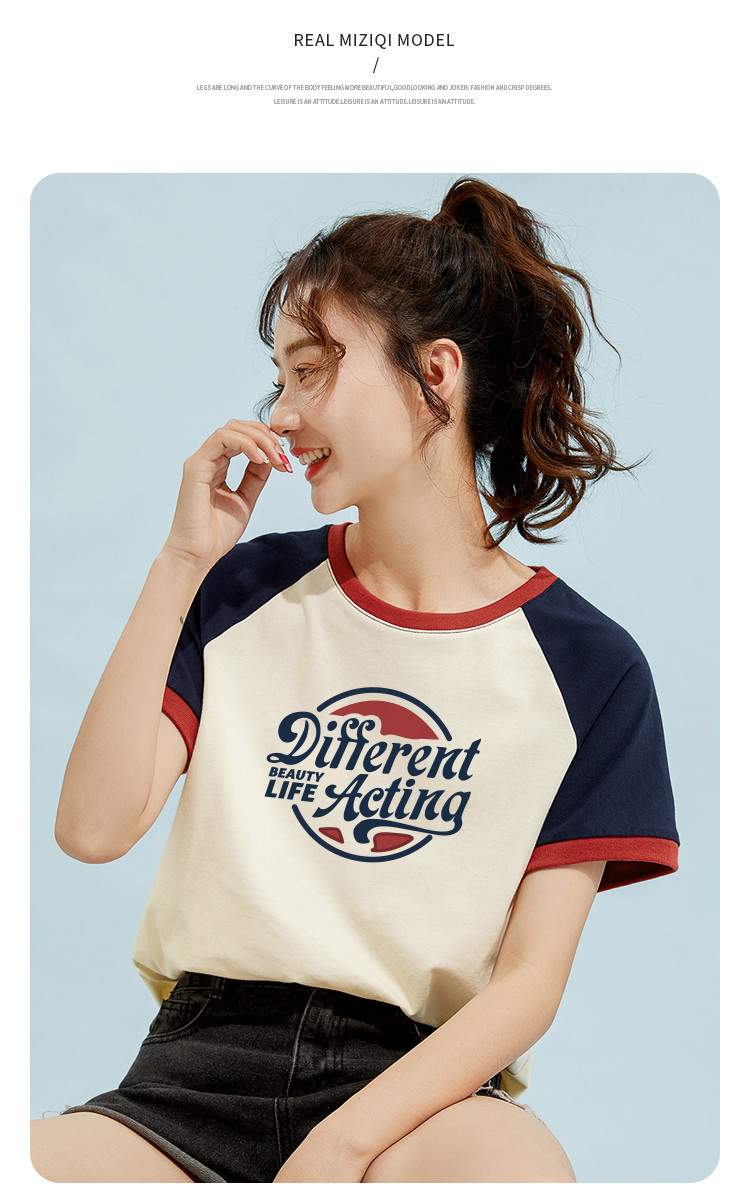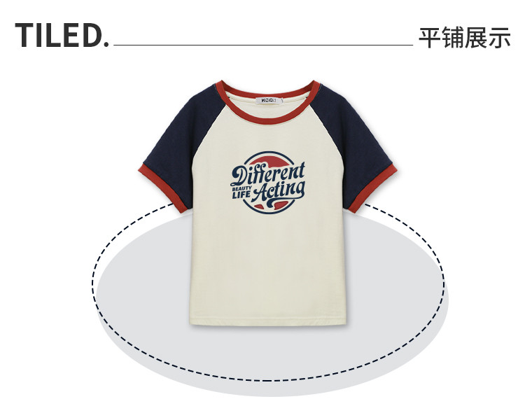 米子旗夏季圆领创意印花女式T恤插肩袖设计宽松休闲短袖上衣 630298