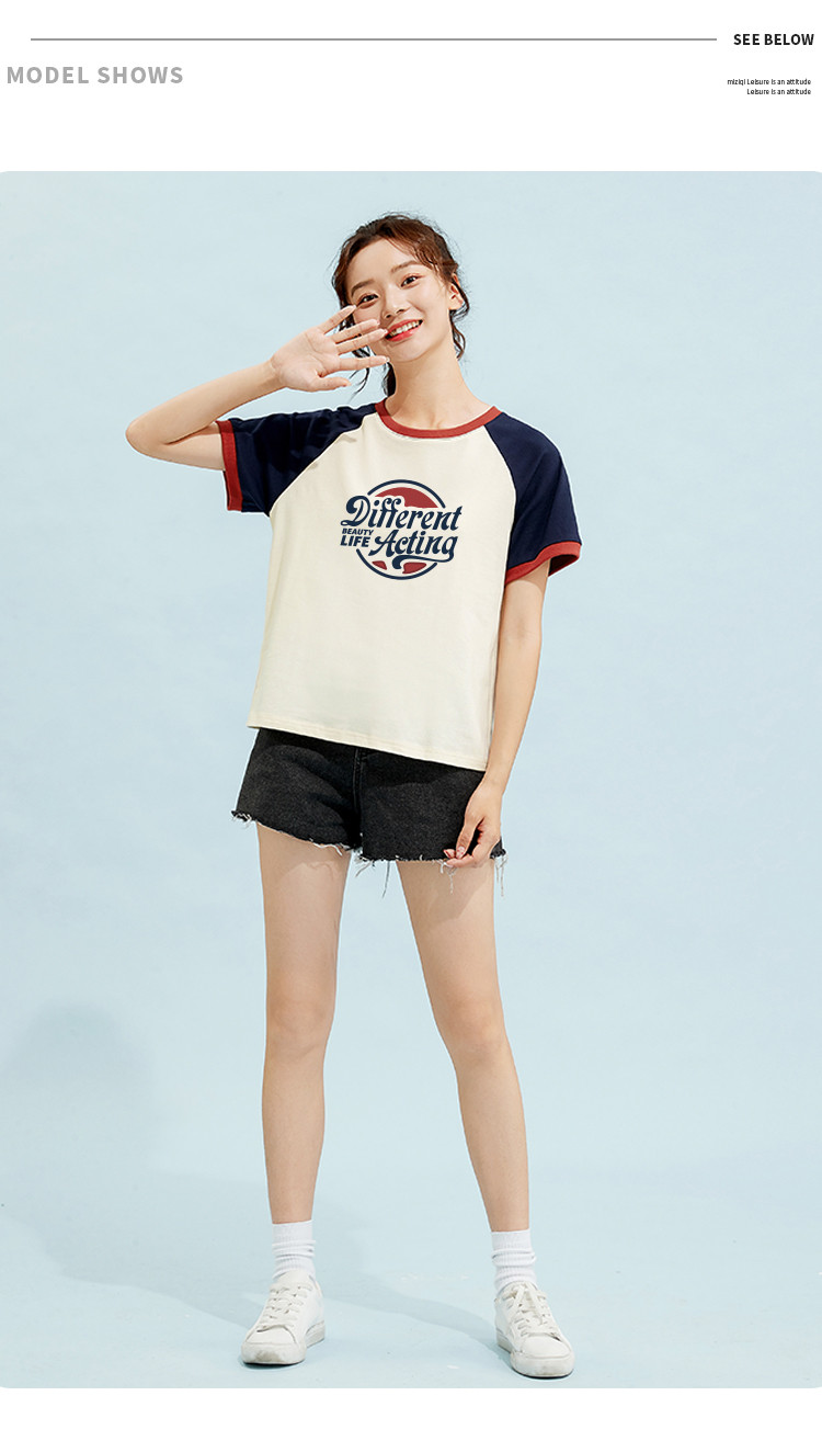 商品名称:米子旗夏季圆领创意印花女式T恤插肩袖设计宽松休闲短袖上衣 630298
