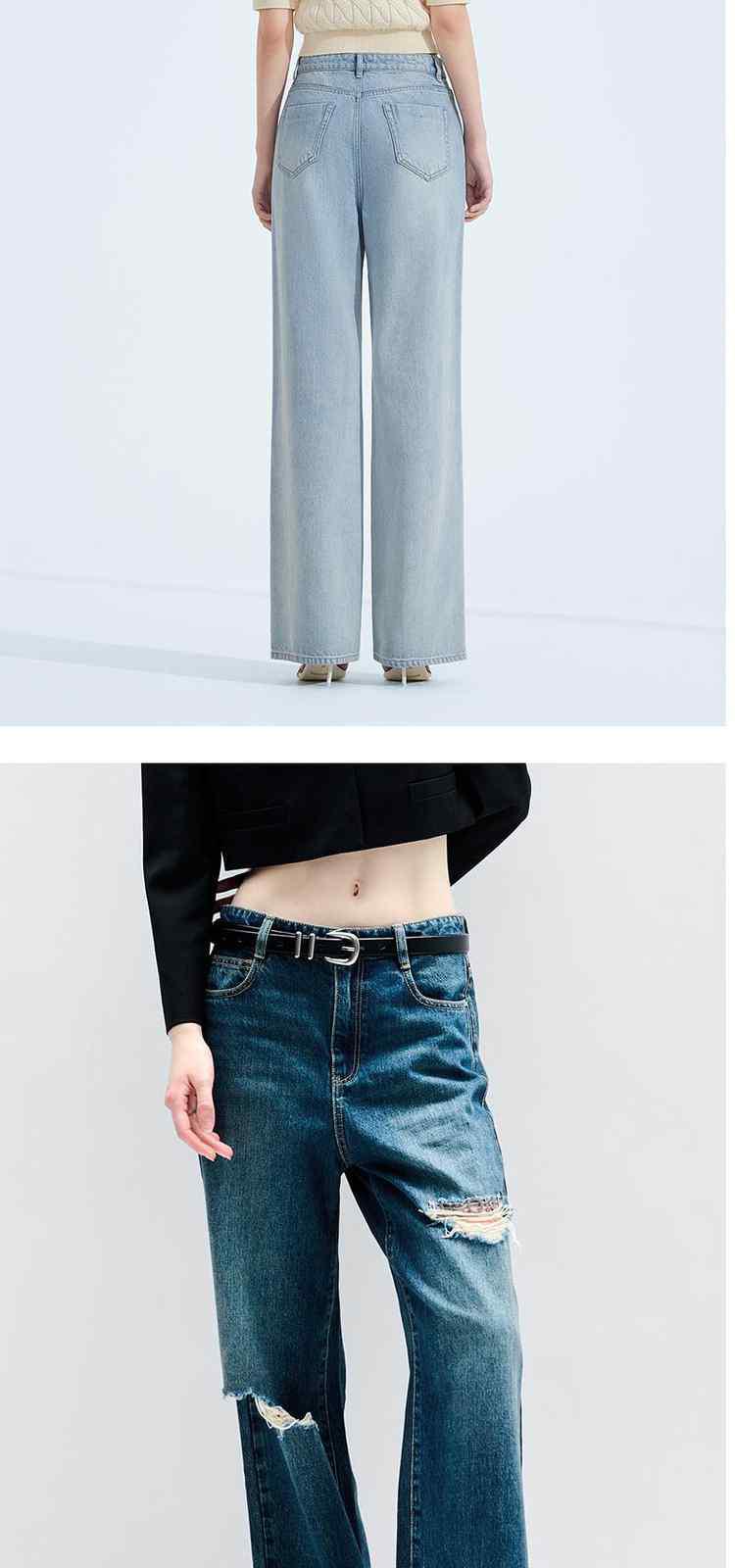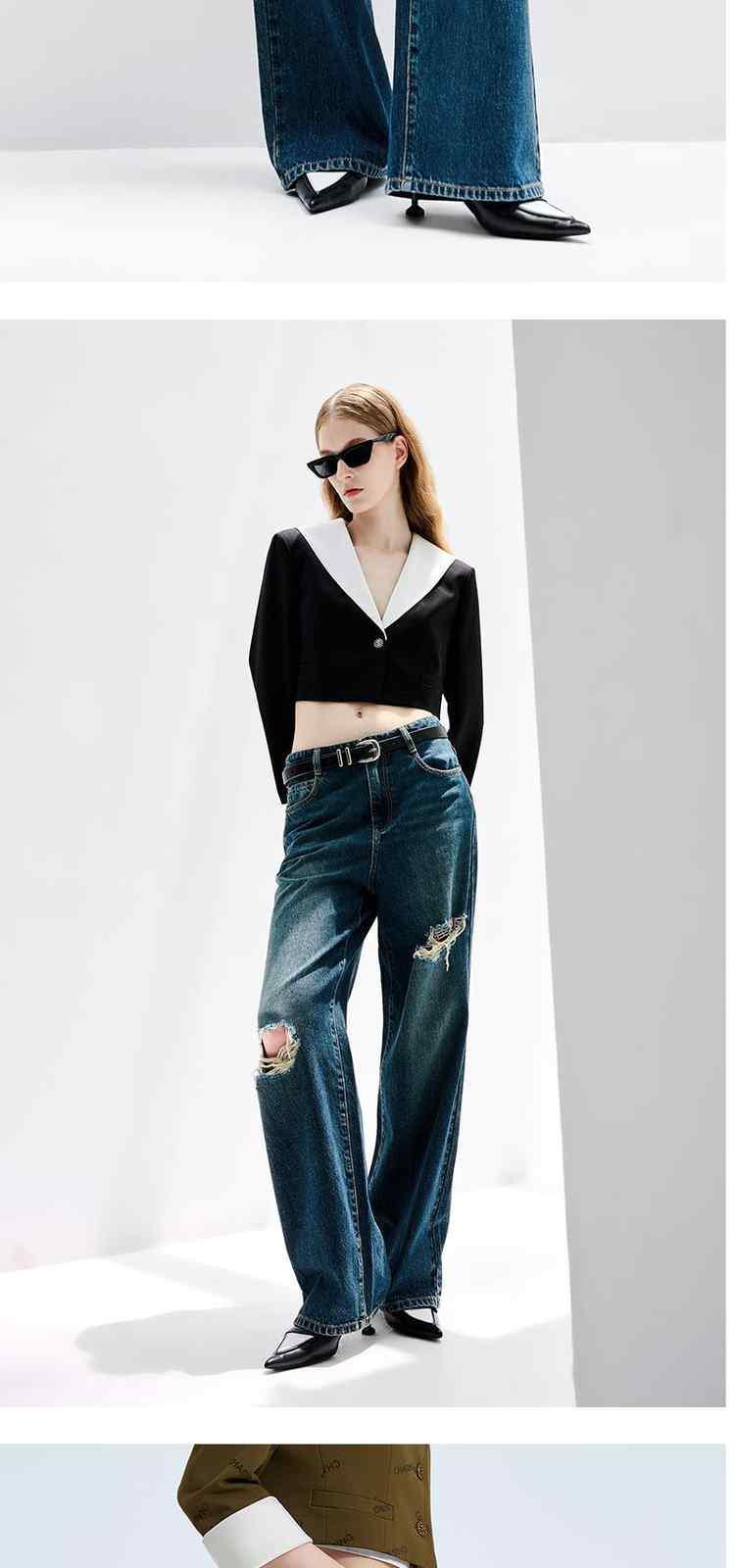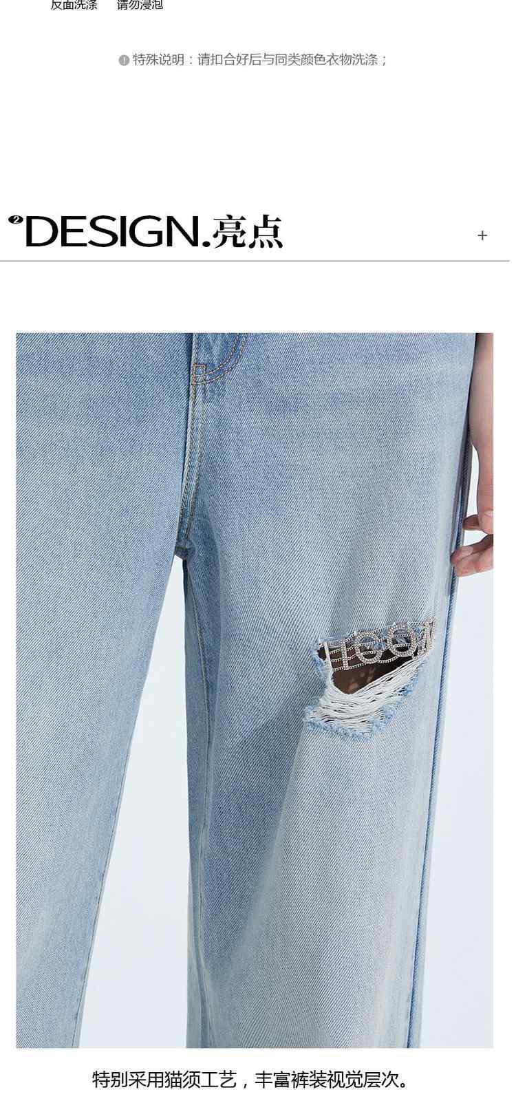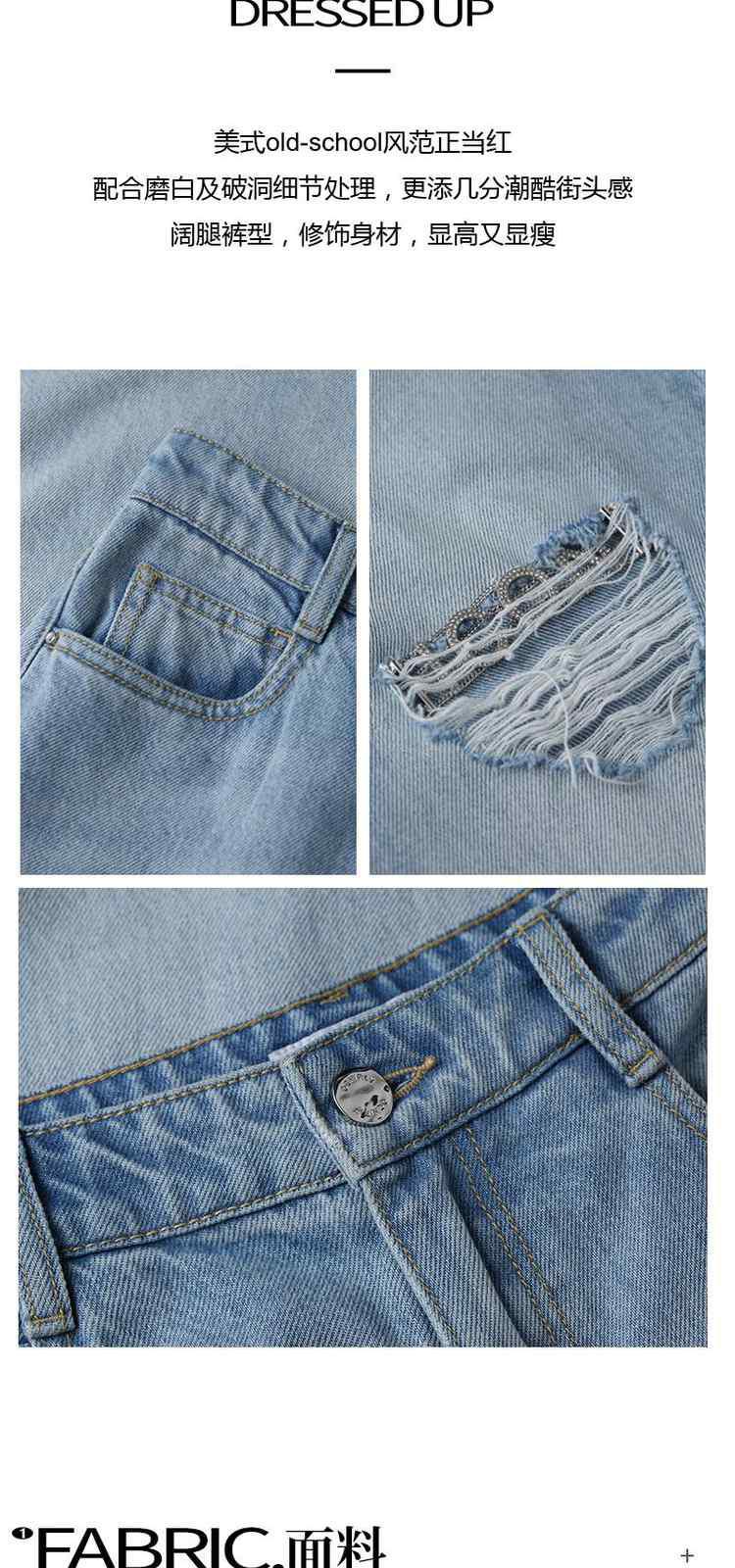 商品名称:春装美式复古宽松显瘦破洞阔腿牛仔裤女 301199