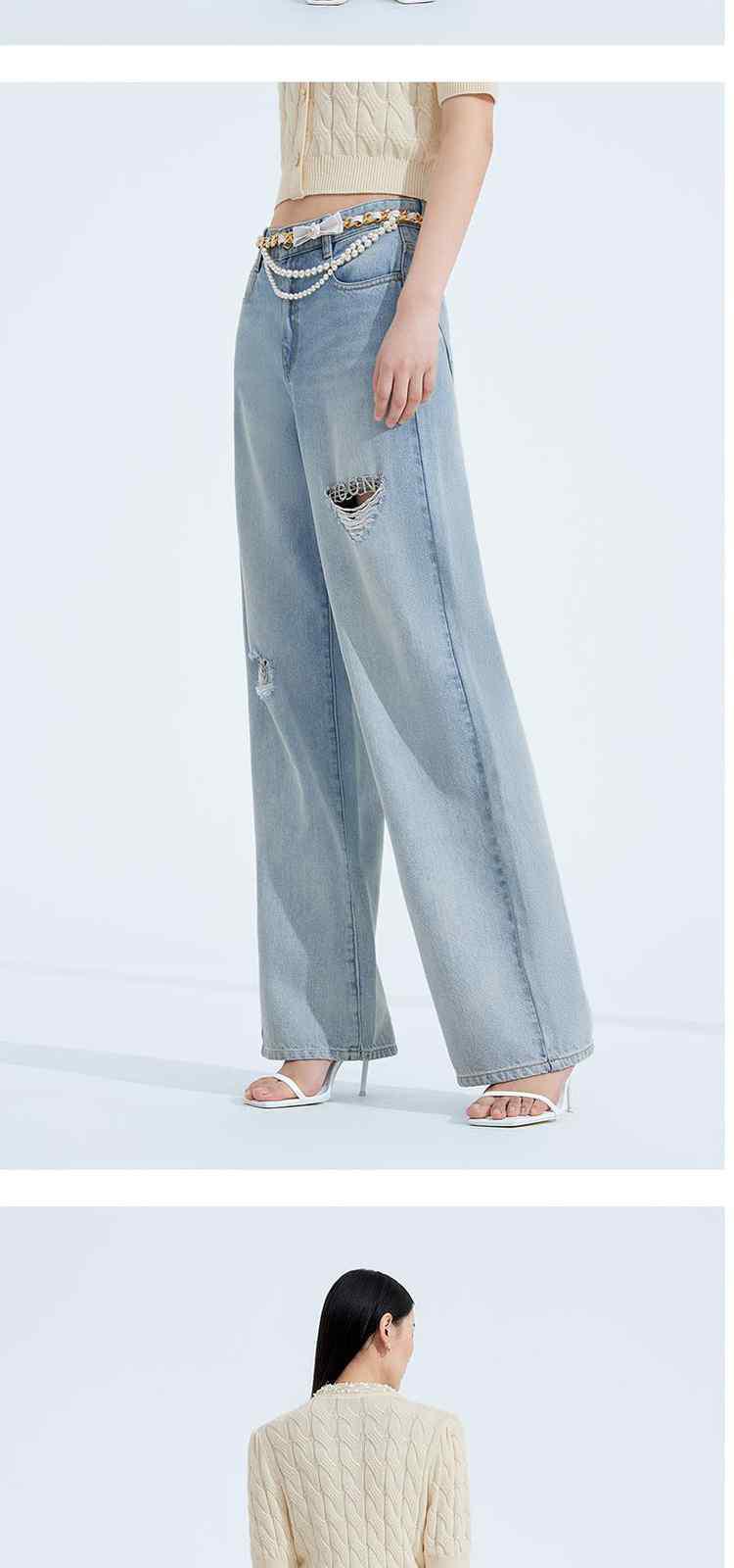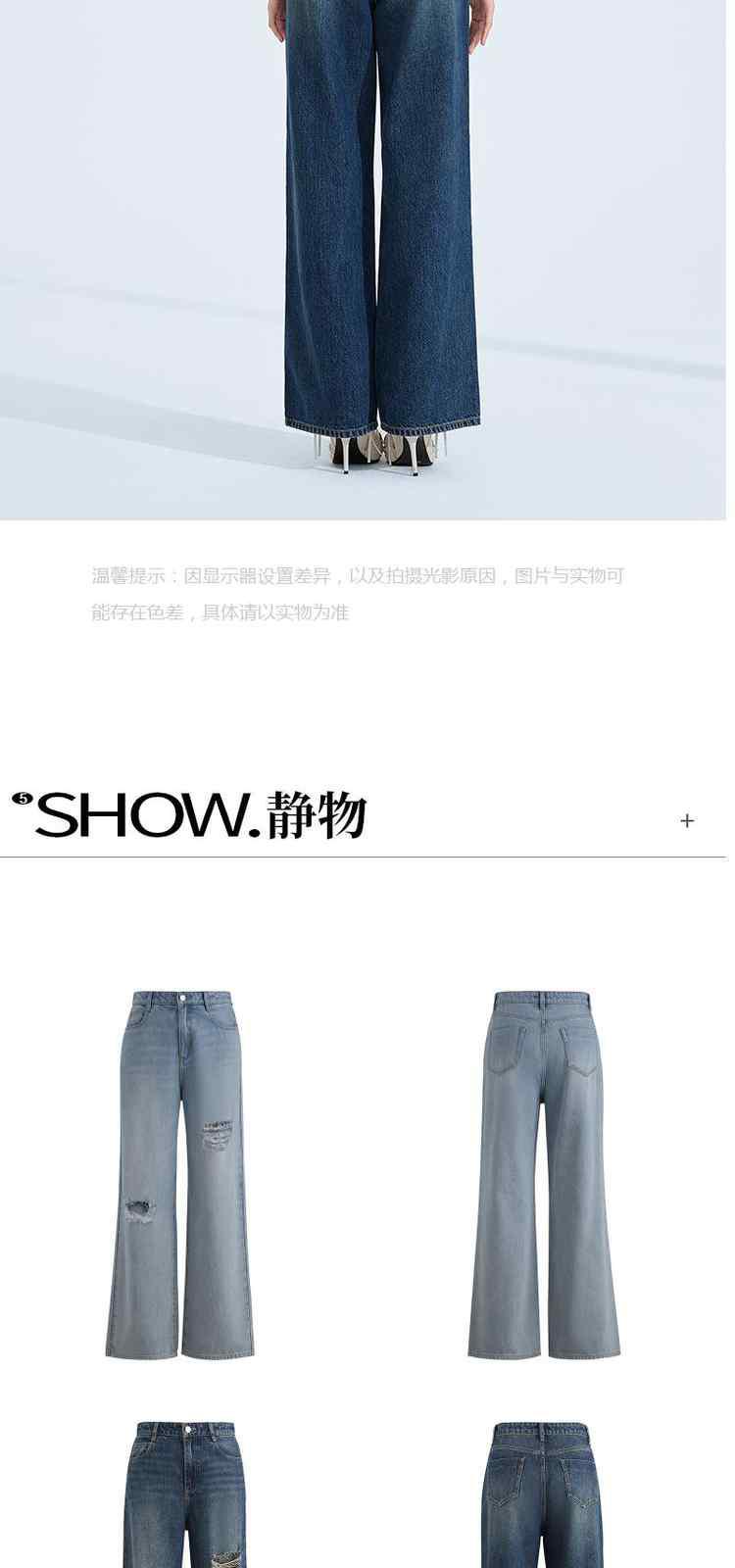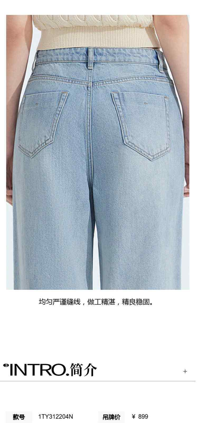 商品名称:春装美式复古宽松显瘦破洞阔腿牛仔裤女 301199