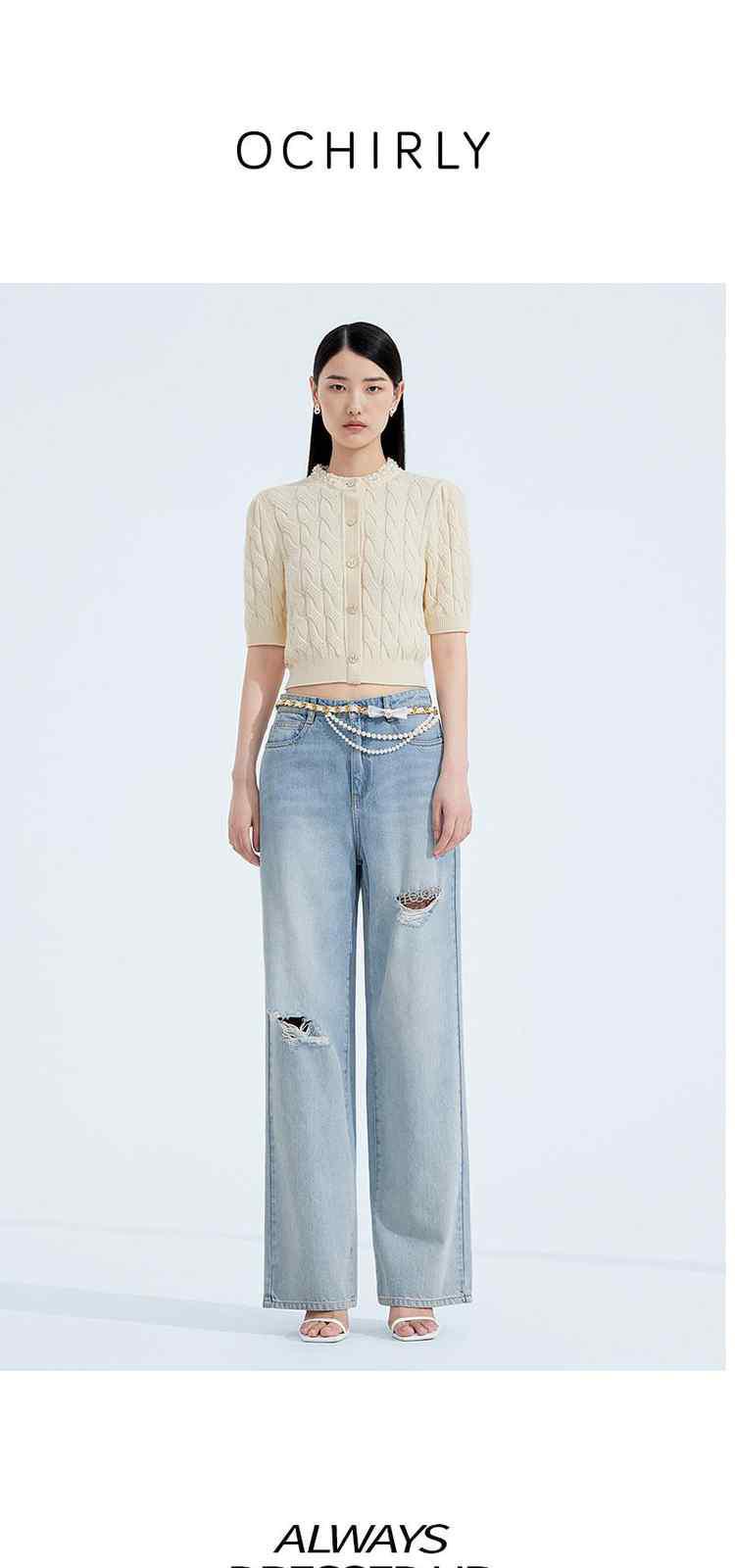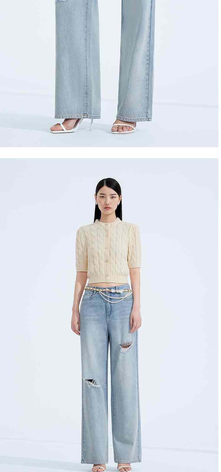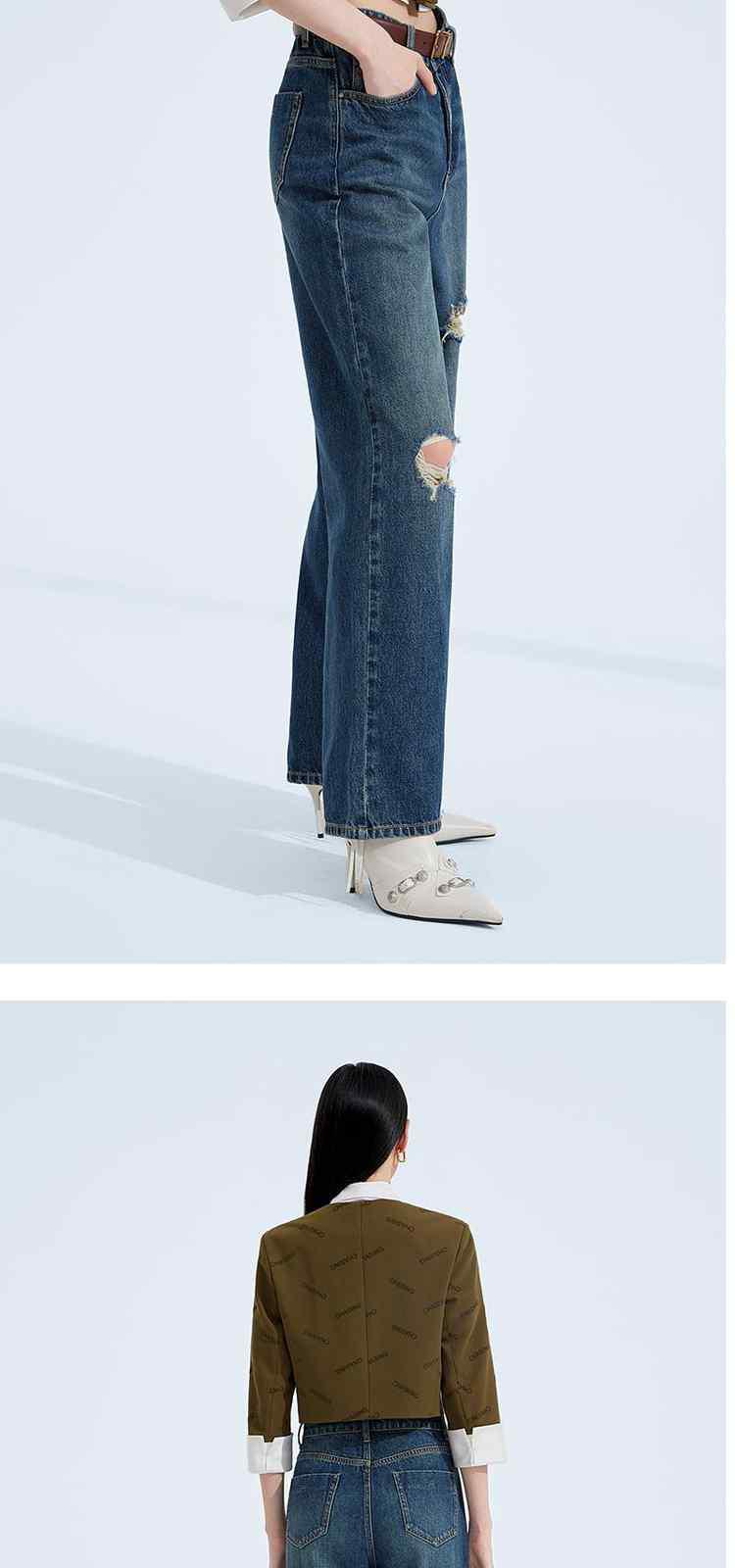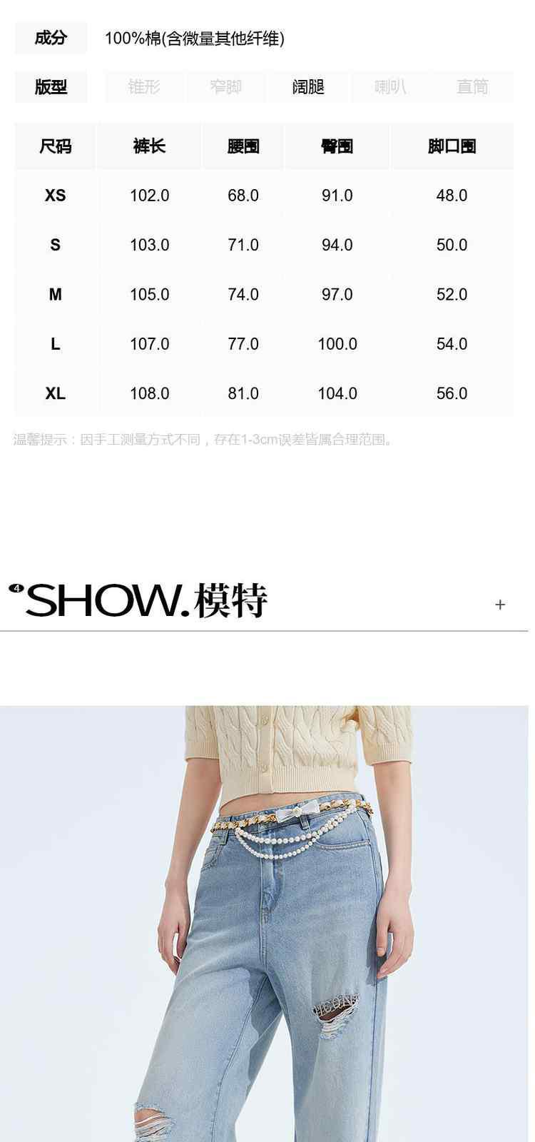 商品名称:春装美式复古宽松显瘦破洞阔腿牛仔裤女 301199
