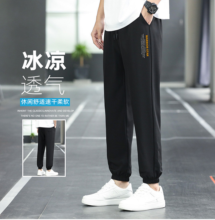商品名称:【冰丝质感】夏季运动休闲长裤凉感薄款透气百搭学生系绳束脚裤男 717395