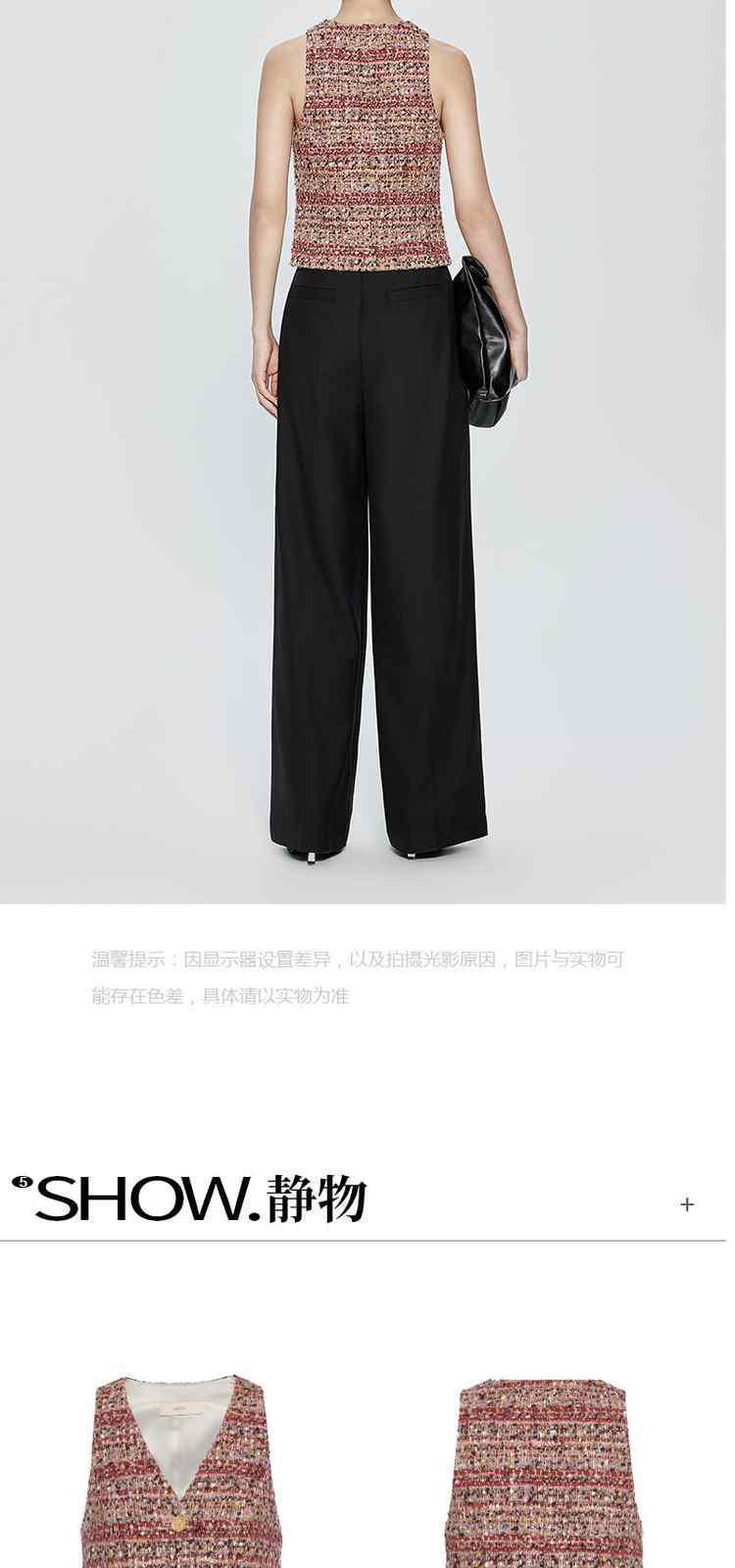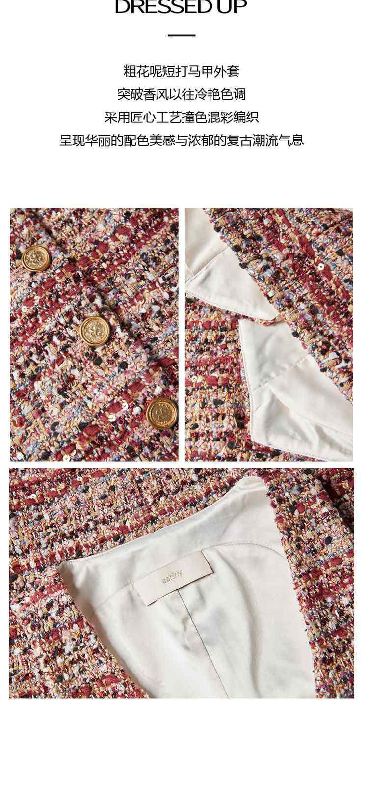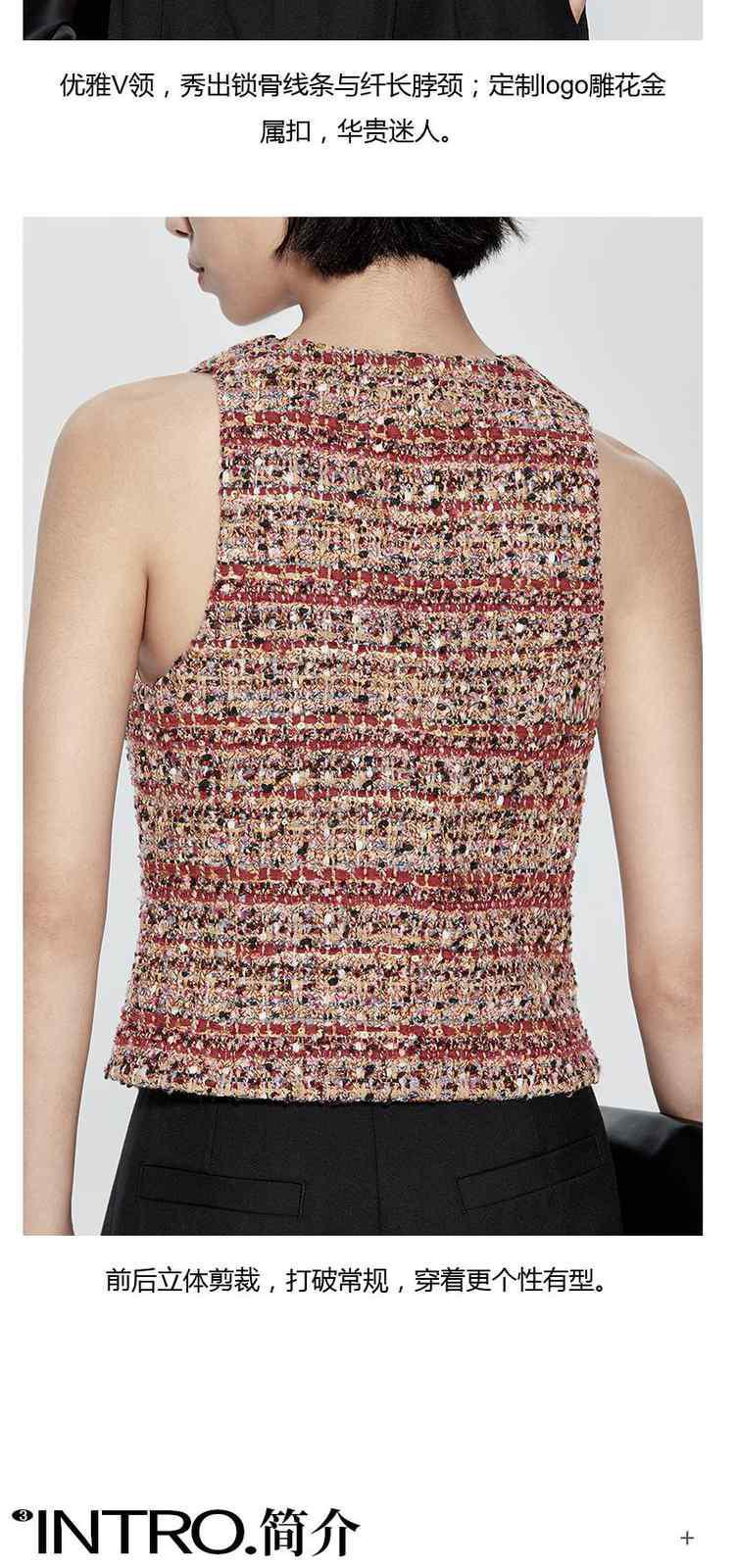商品名称:冬装 设计感短款珠片粗花呢小香风马甲外套 612495