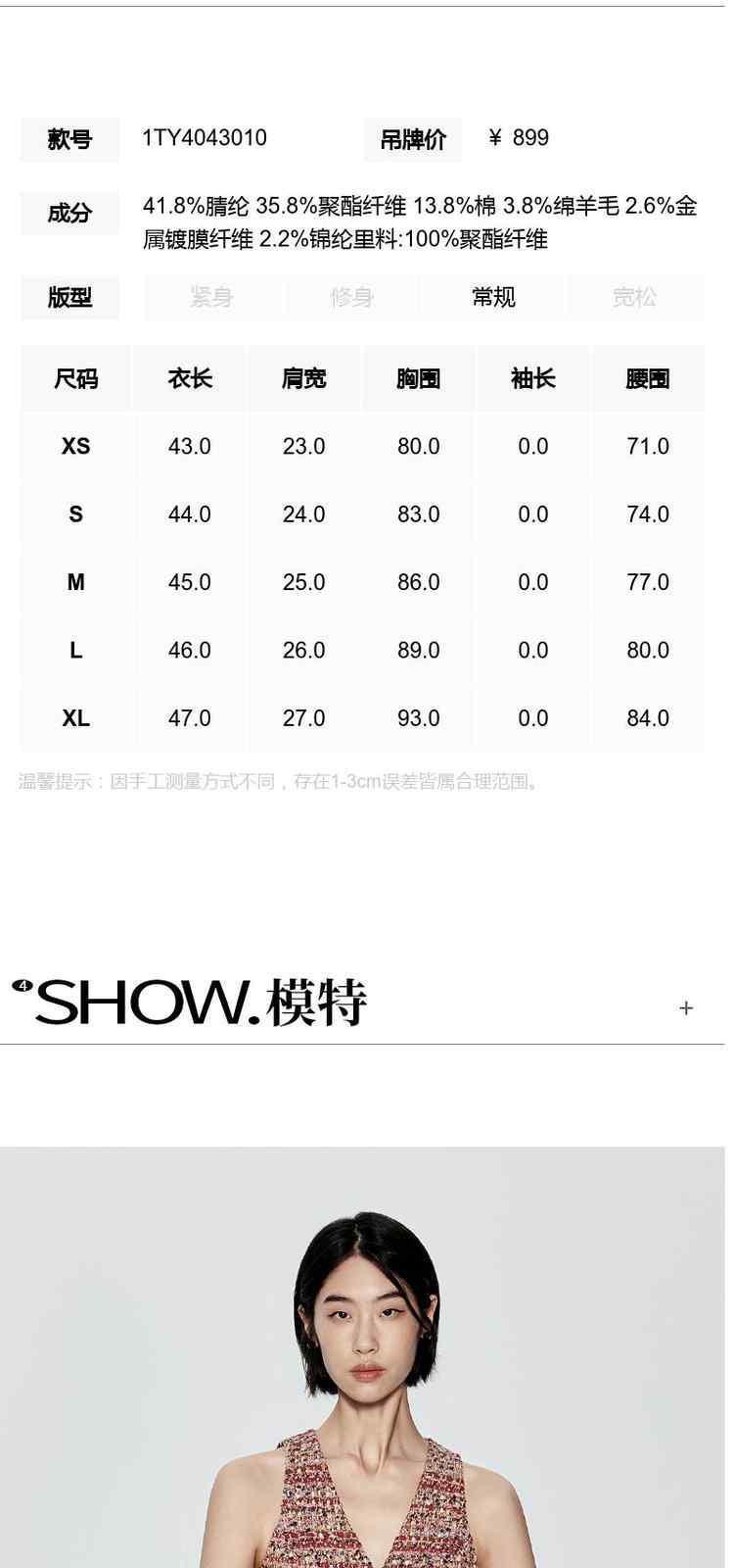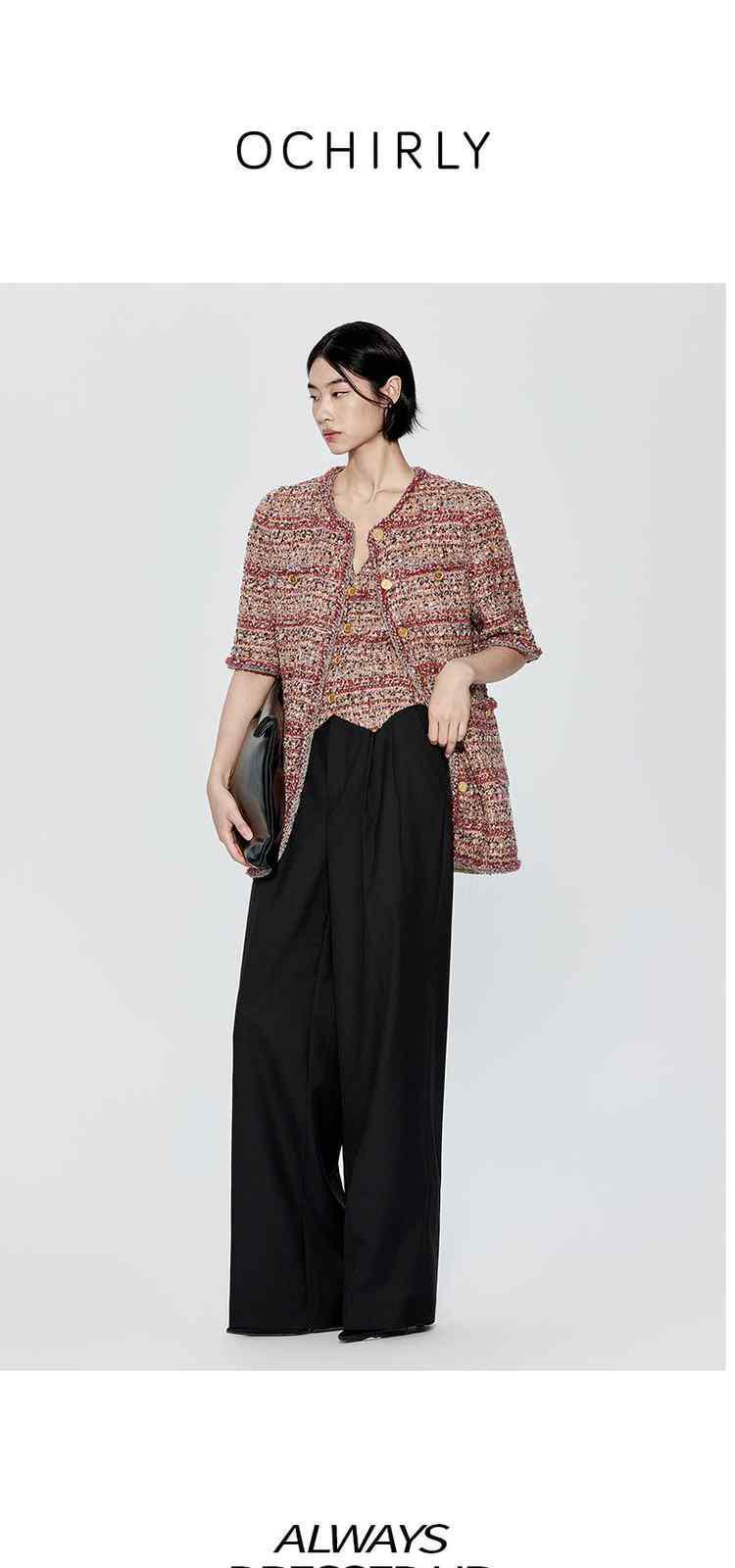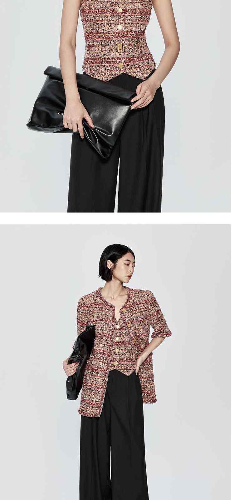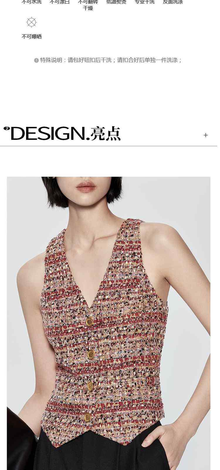 商品名称:冬装 设计感短款珠片粗花呢小香风马甲外套 612495