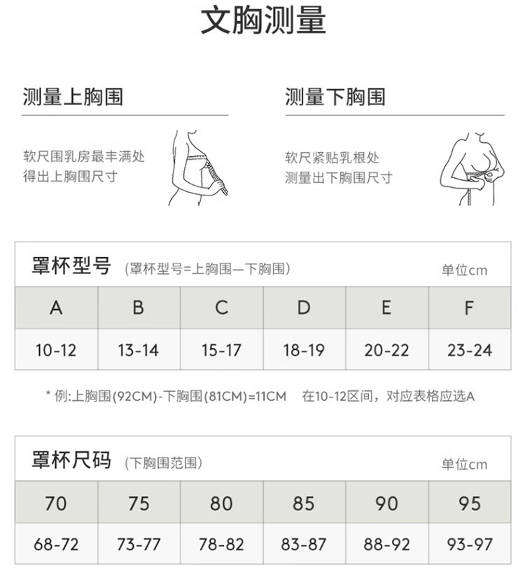 尺码 下胸围(cm) 上胸围(cm)