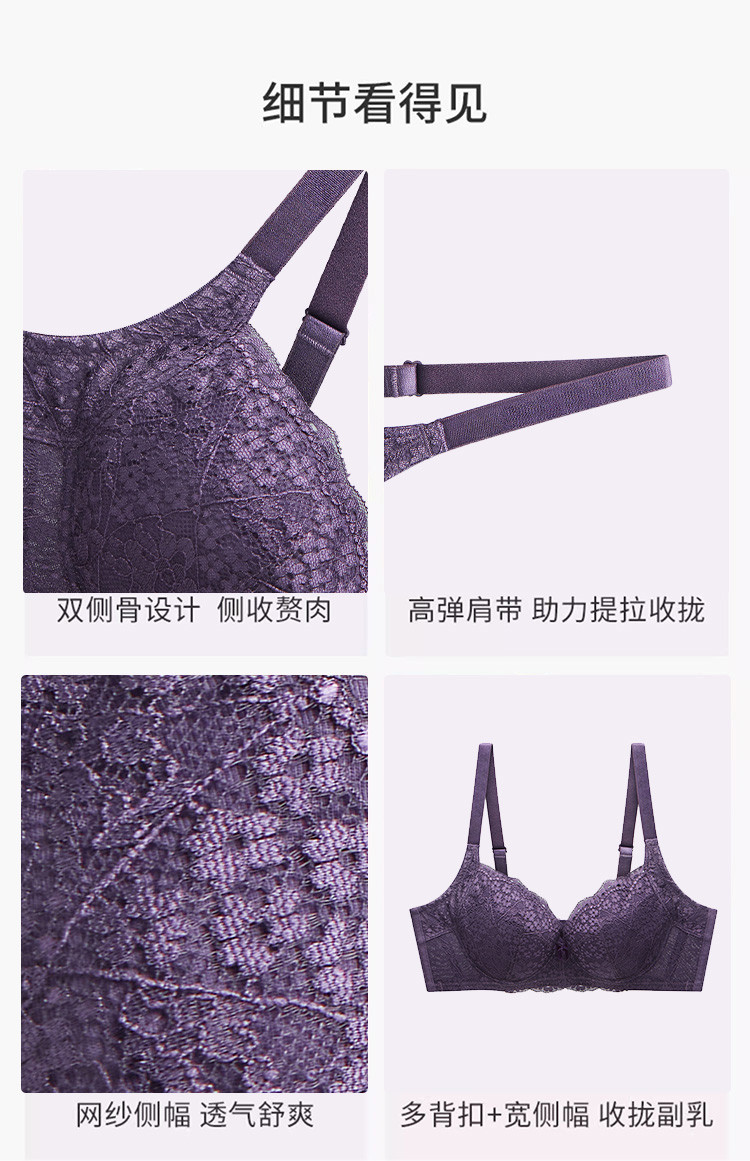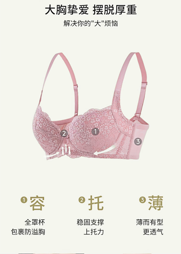 商品名称:【朵朵杯】逆龄绽放蕾丝内衣女收副乳大胸显小薄款聚拢上托文胸罩 931146