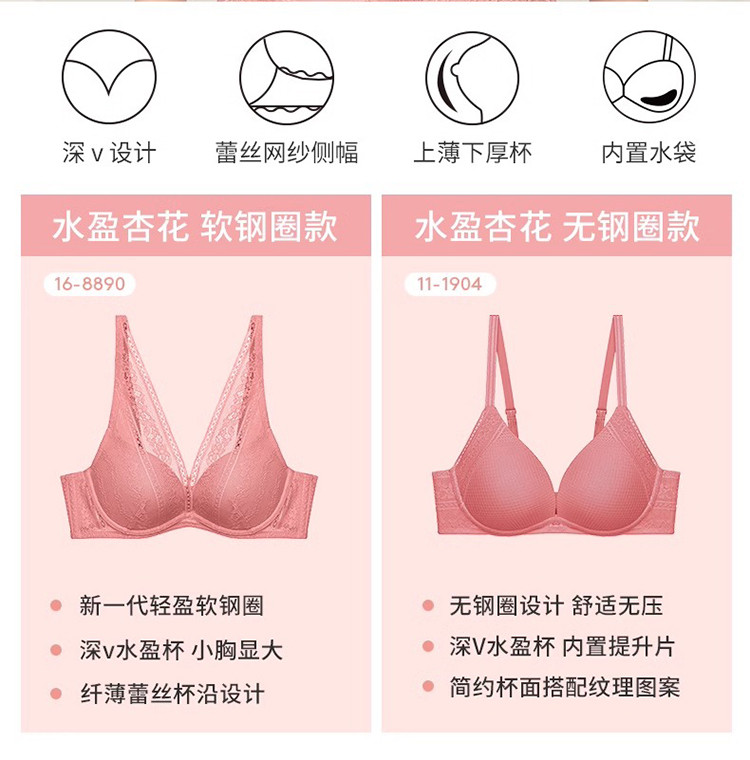 商品名称:水盈杏花结婚红色小胸聚拢内衣女性感蕾丝文胸罩16-8890 854666