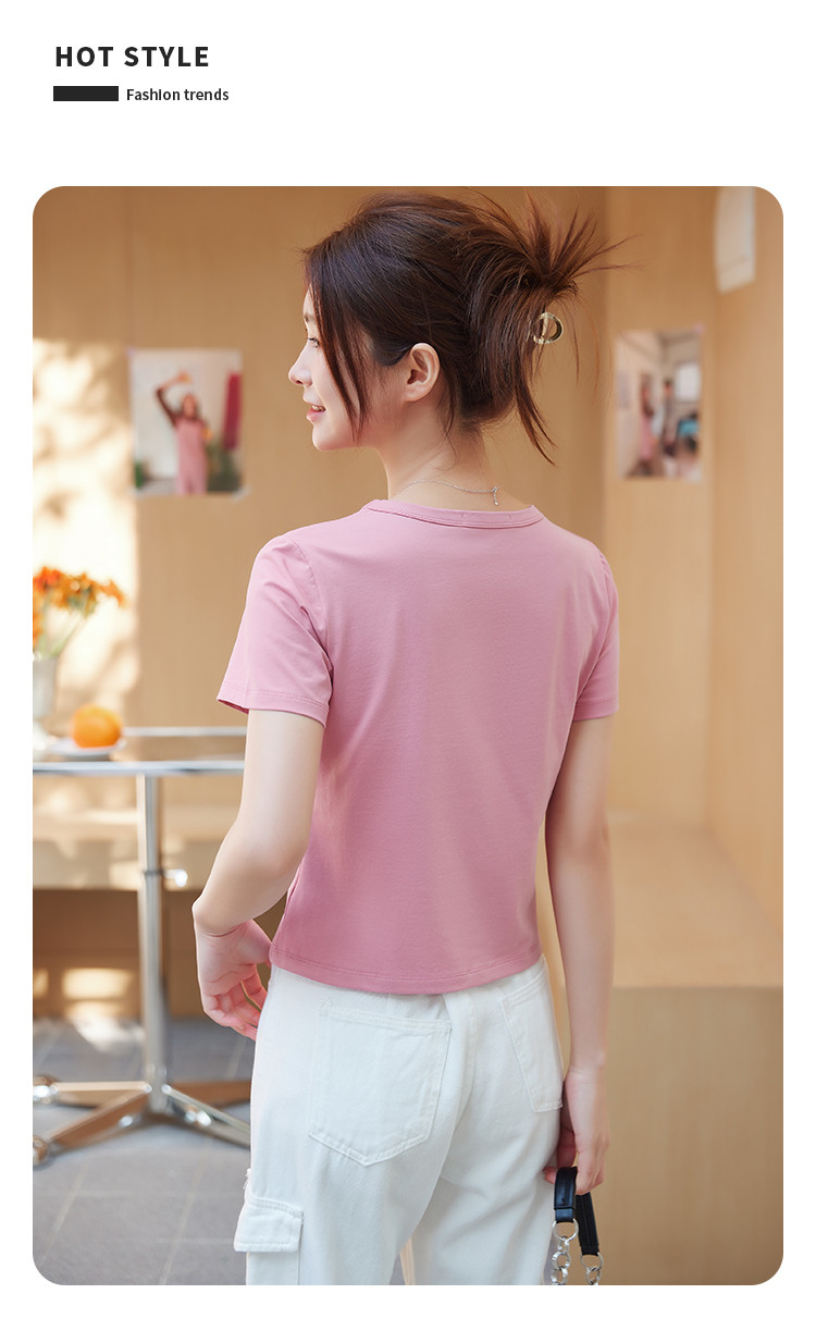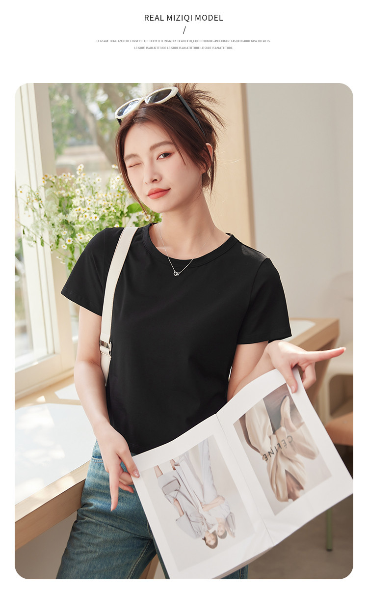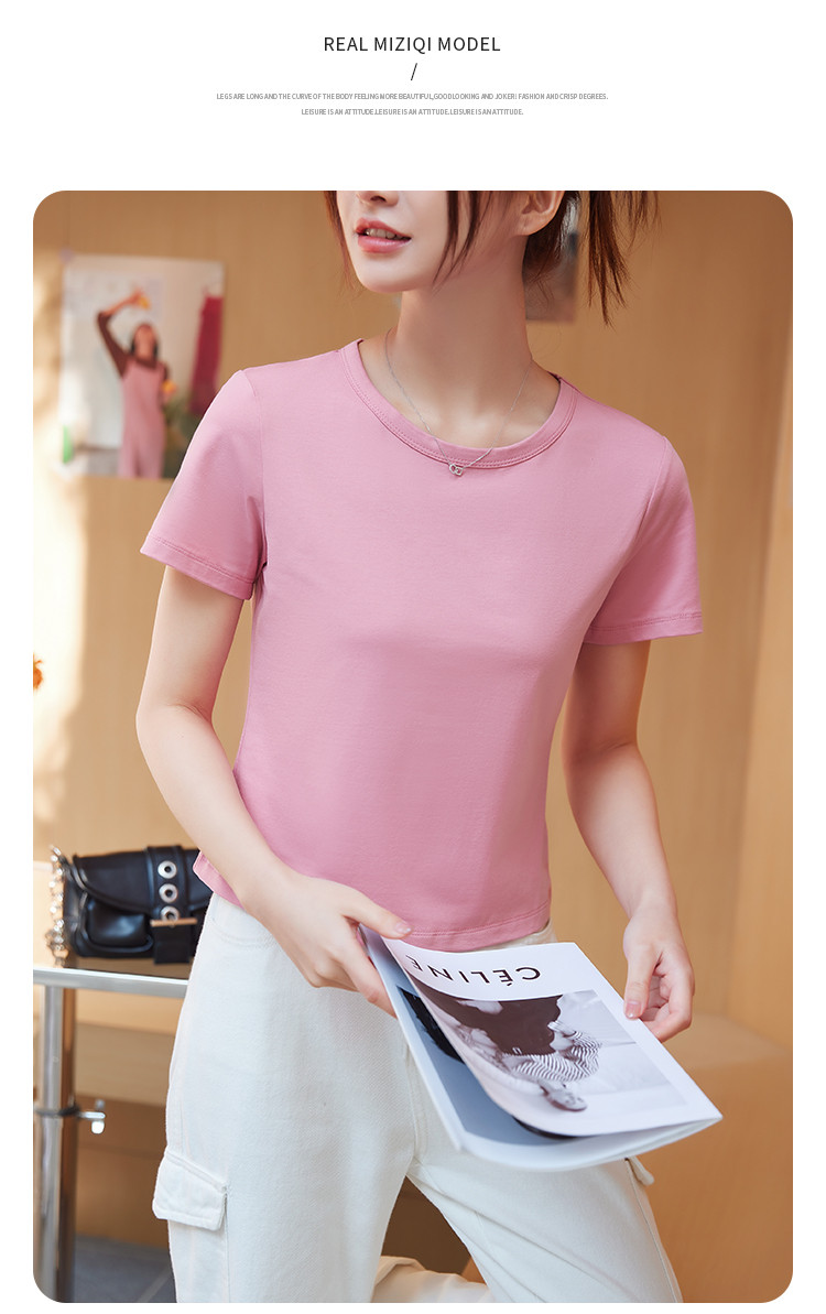 商品名称:米子旗夏季简约纯色女式T恤基础版短款修身显瘦短袖上衣 621786