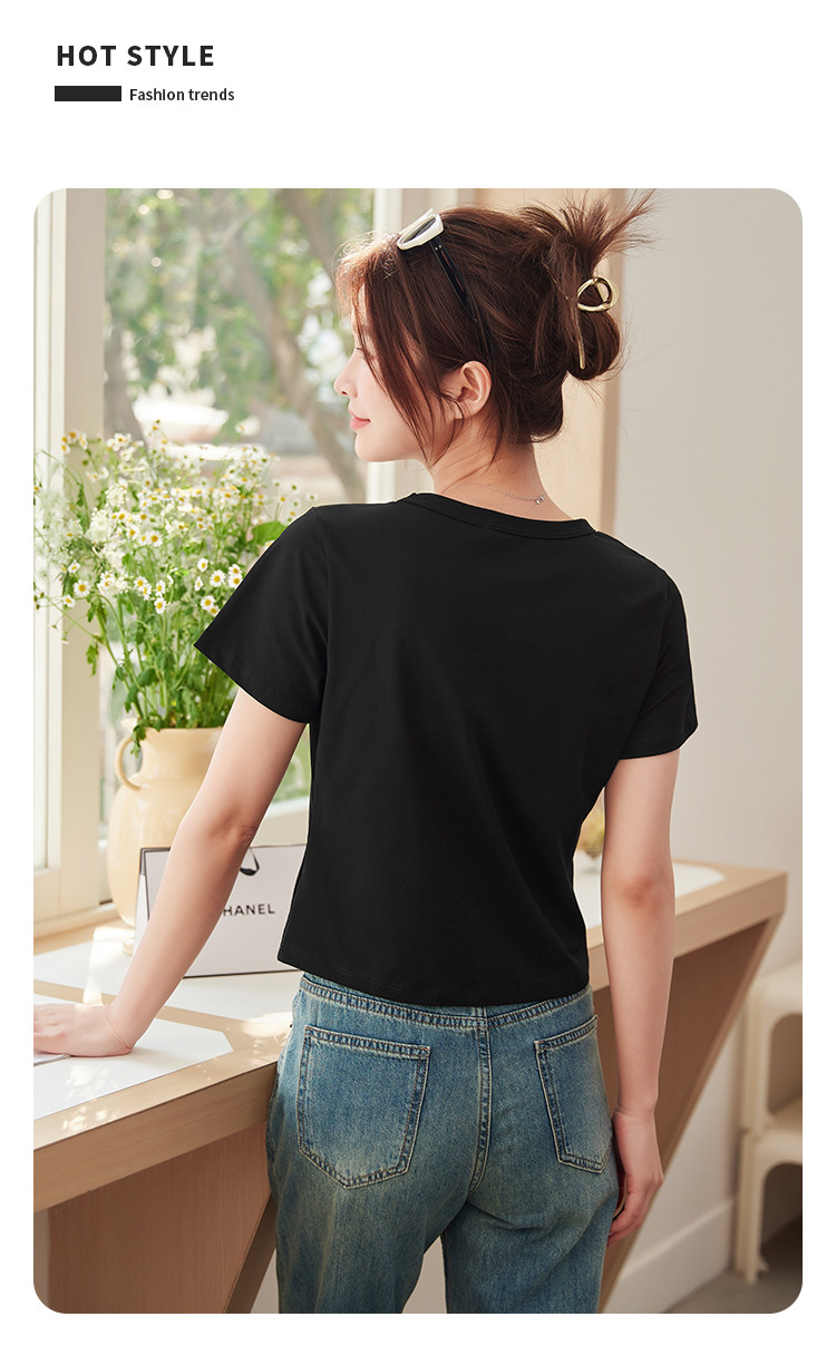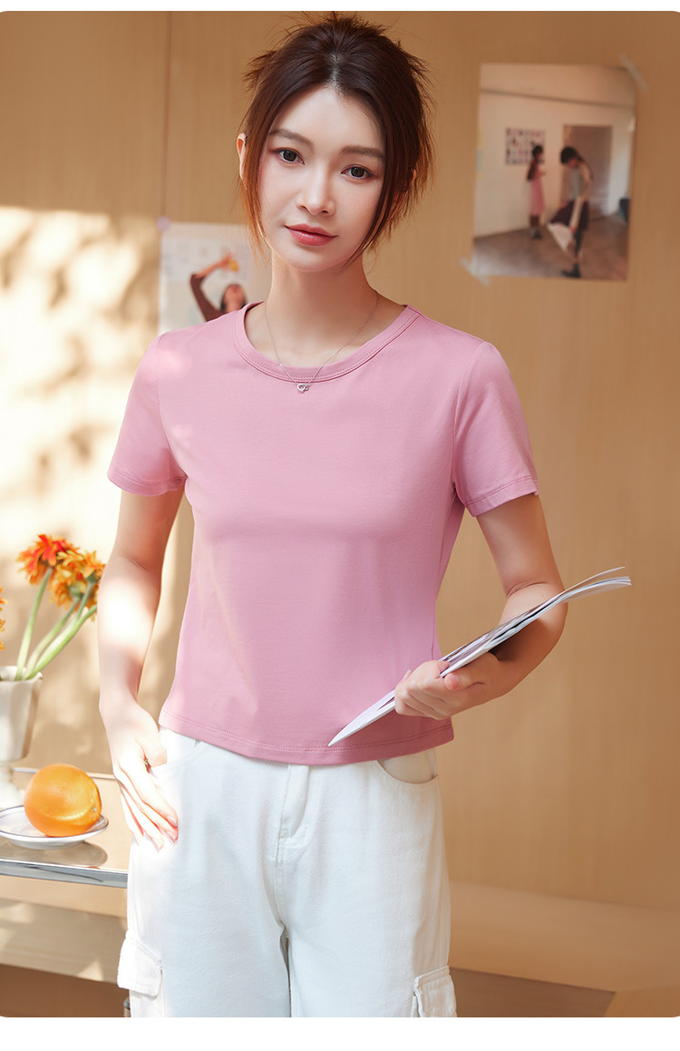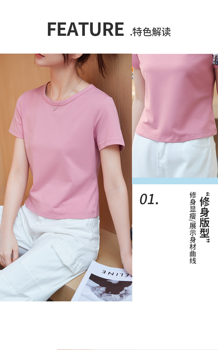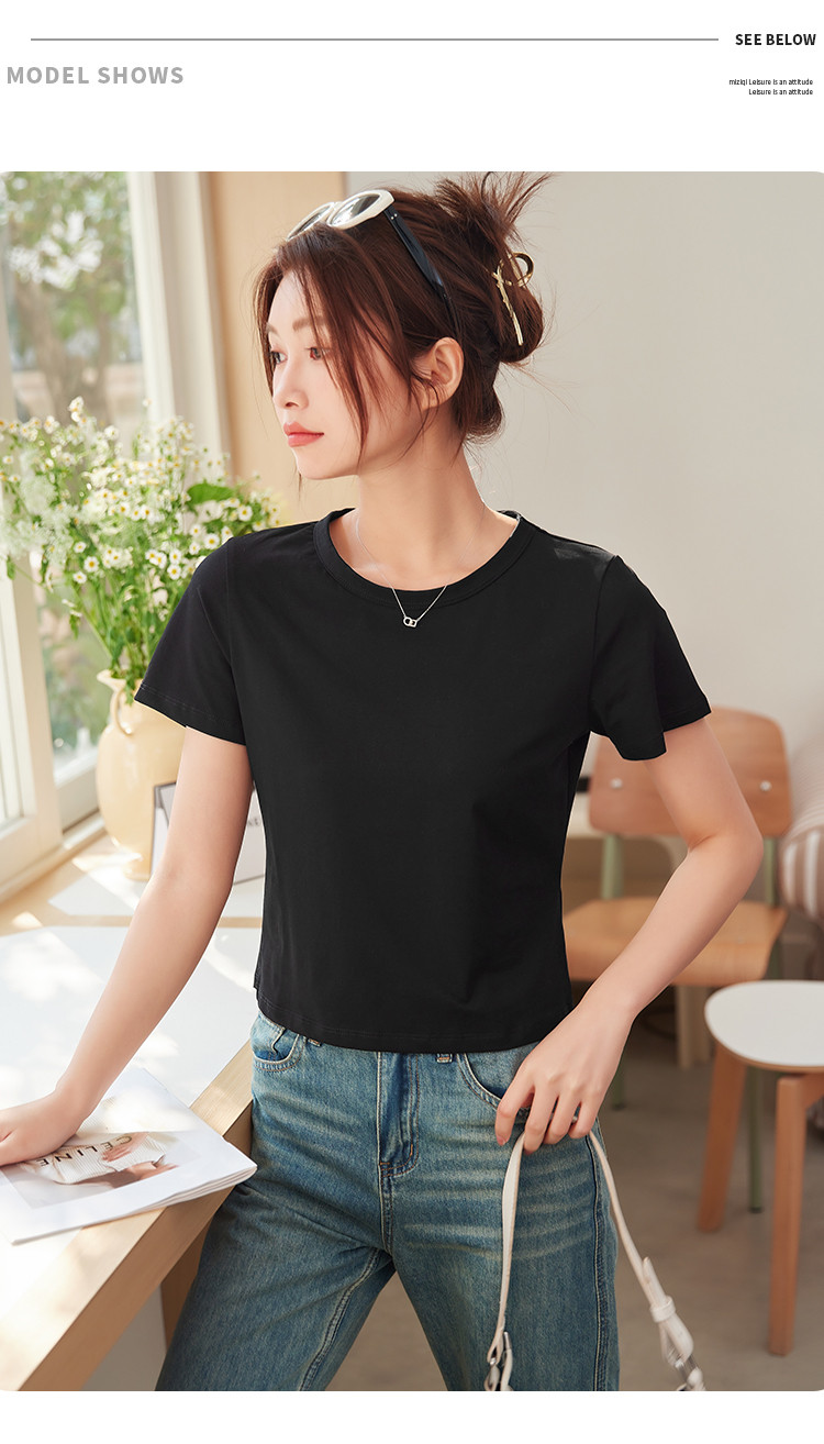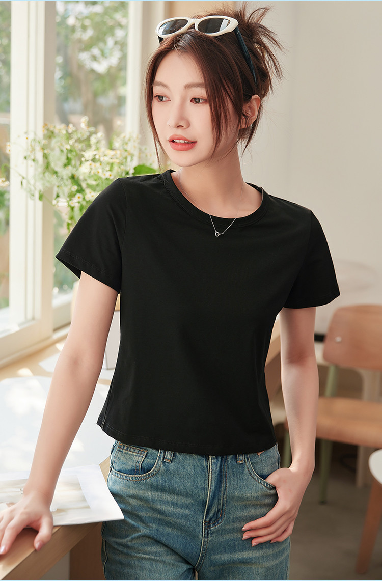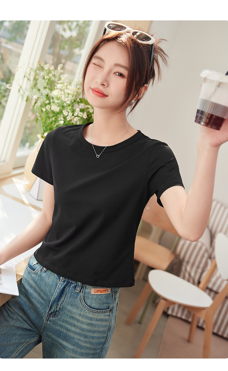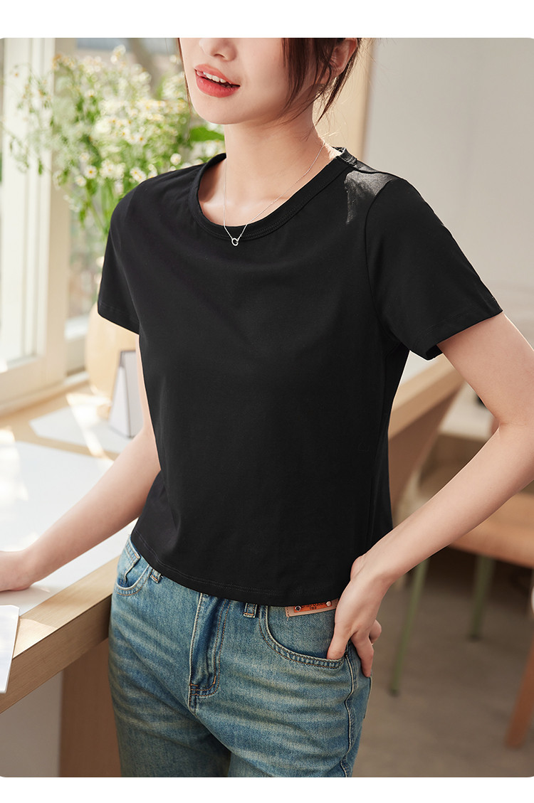 米子旗夏季简约纯色女式T恤基础版短款修身显瘦短袖上衣 621786