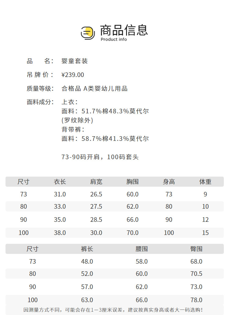 | 尺码 | 肩宽(cm) | 适合年龄 | 衣长(cm) | 身高(cm) | 腰围(cm) | 裤长(cm) | 臀围(cm) | 胸围(cm) | 号型 |