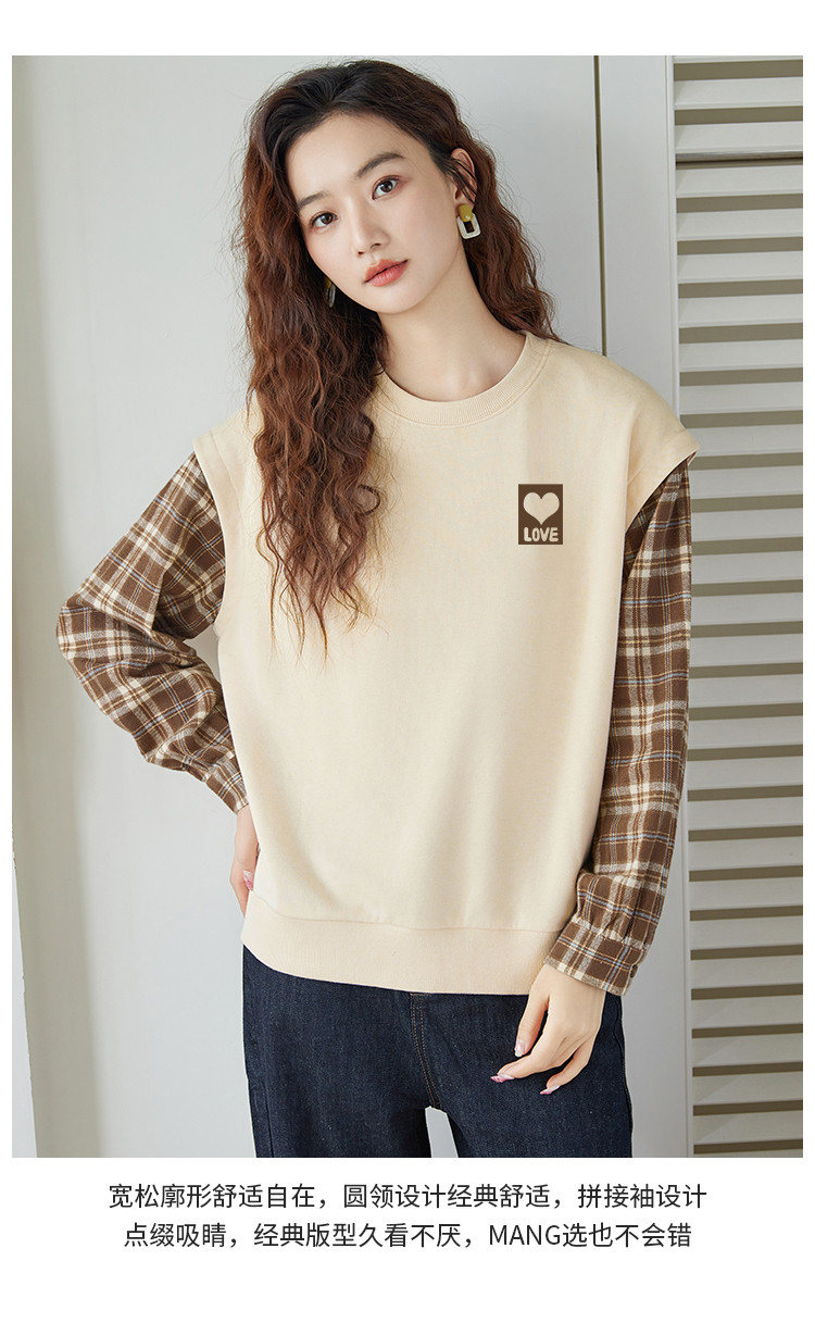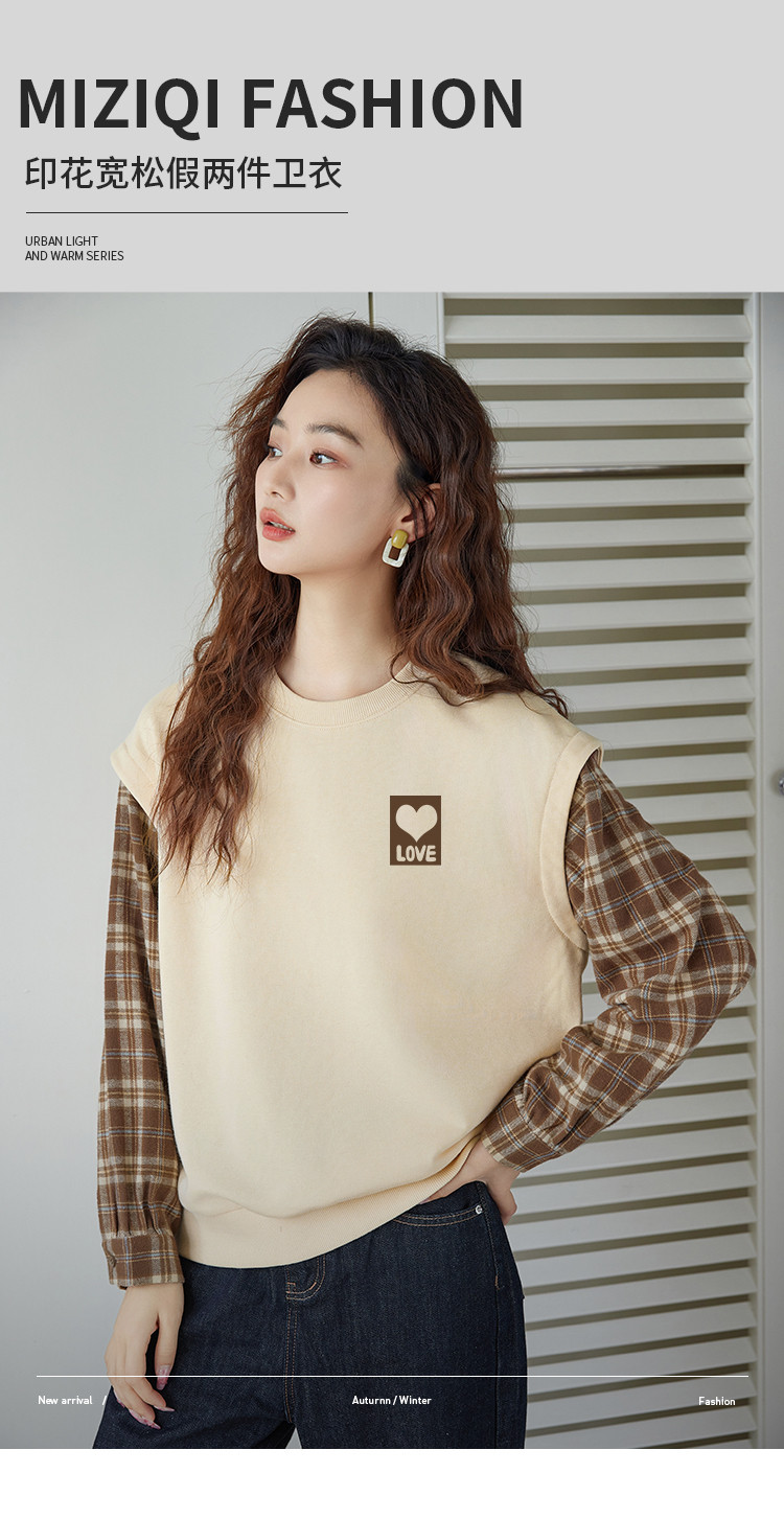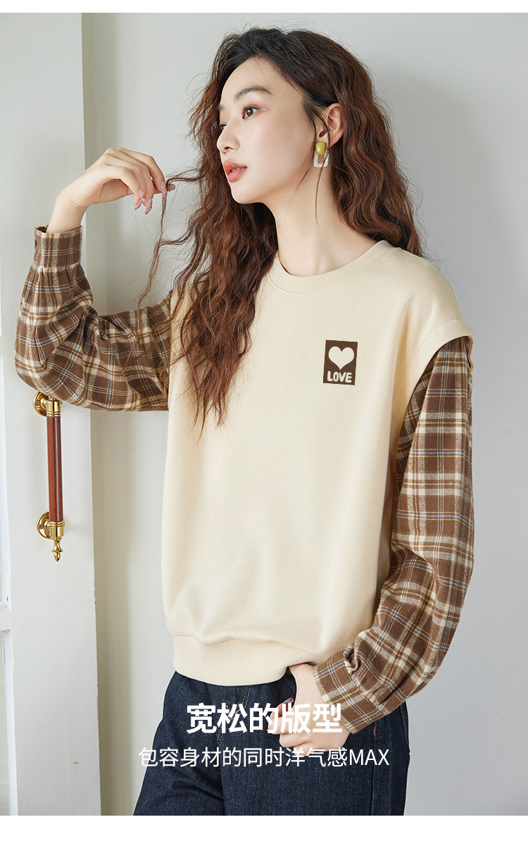 商品名称:米子旗春秋款圆领假两件卫衣女宽松休闲长袖上衣 242586
