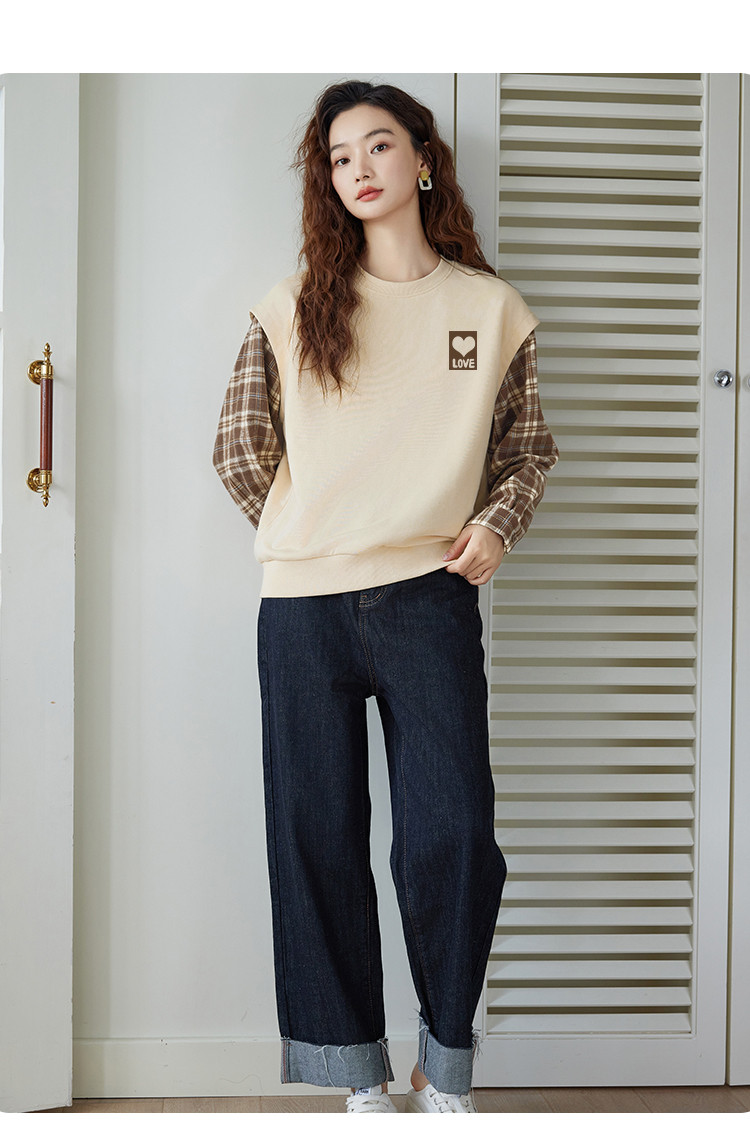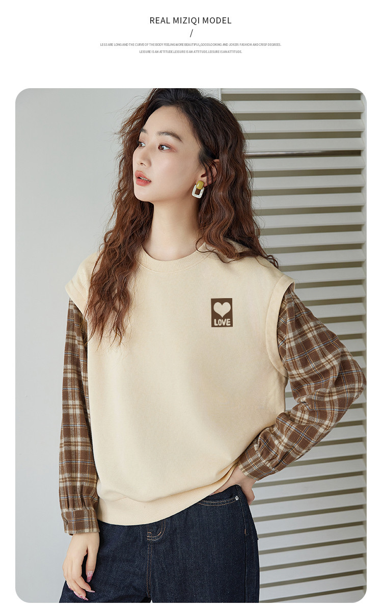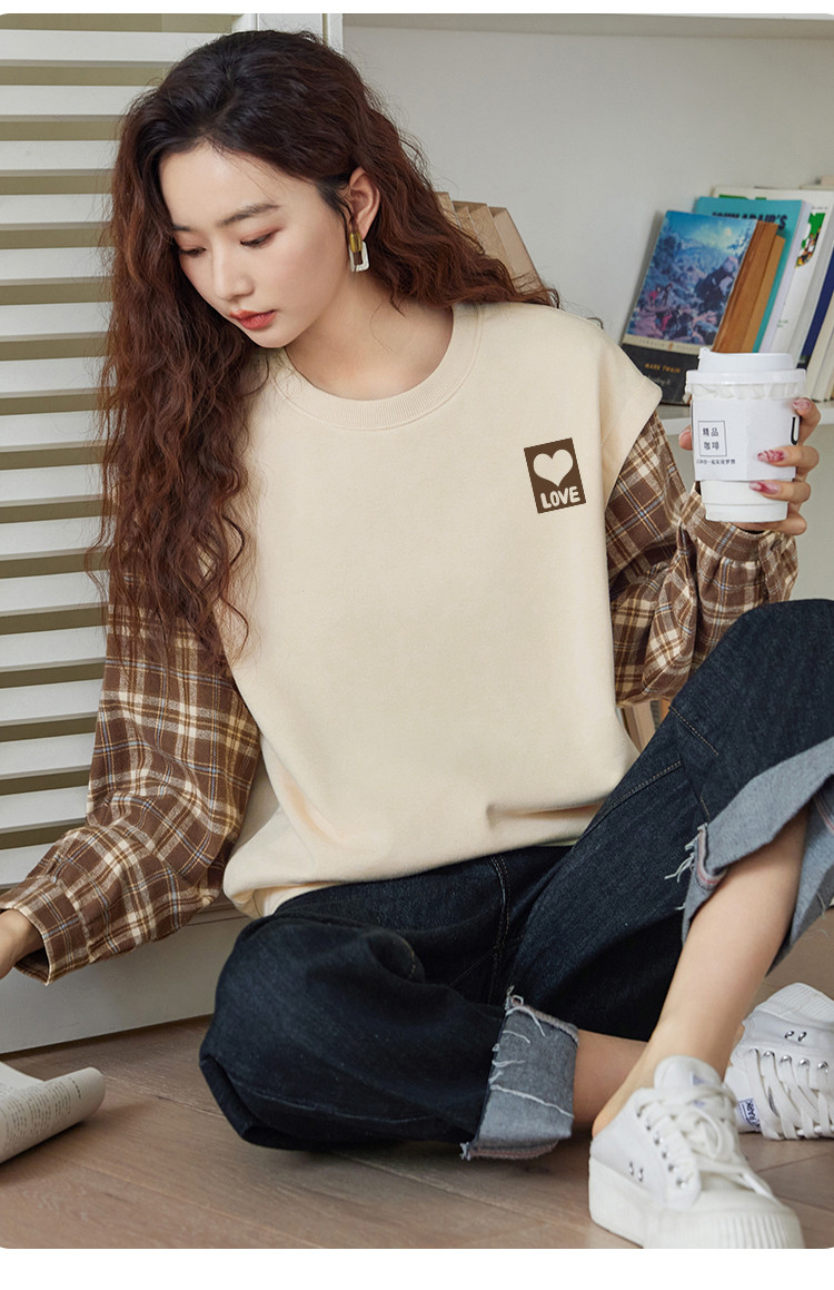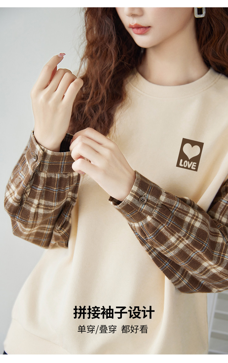 商品名称:米子旗春秋款圆领假两件卫衣女宽松休闲长袖上衣 242586