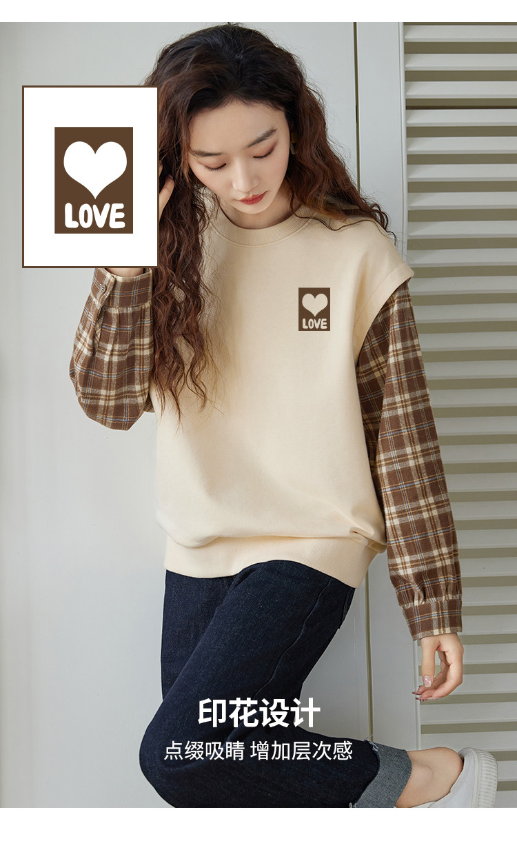 米子旗春秋款圆领假两件卫衣女宽松休闲长袖上衣 242586