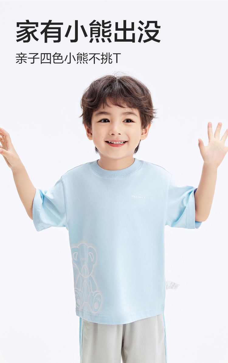 商品名称:小熊印花儿童t恤男童短袖女童母女亲子装夏季纯棉薄 519557
