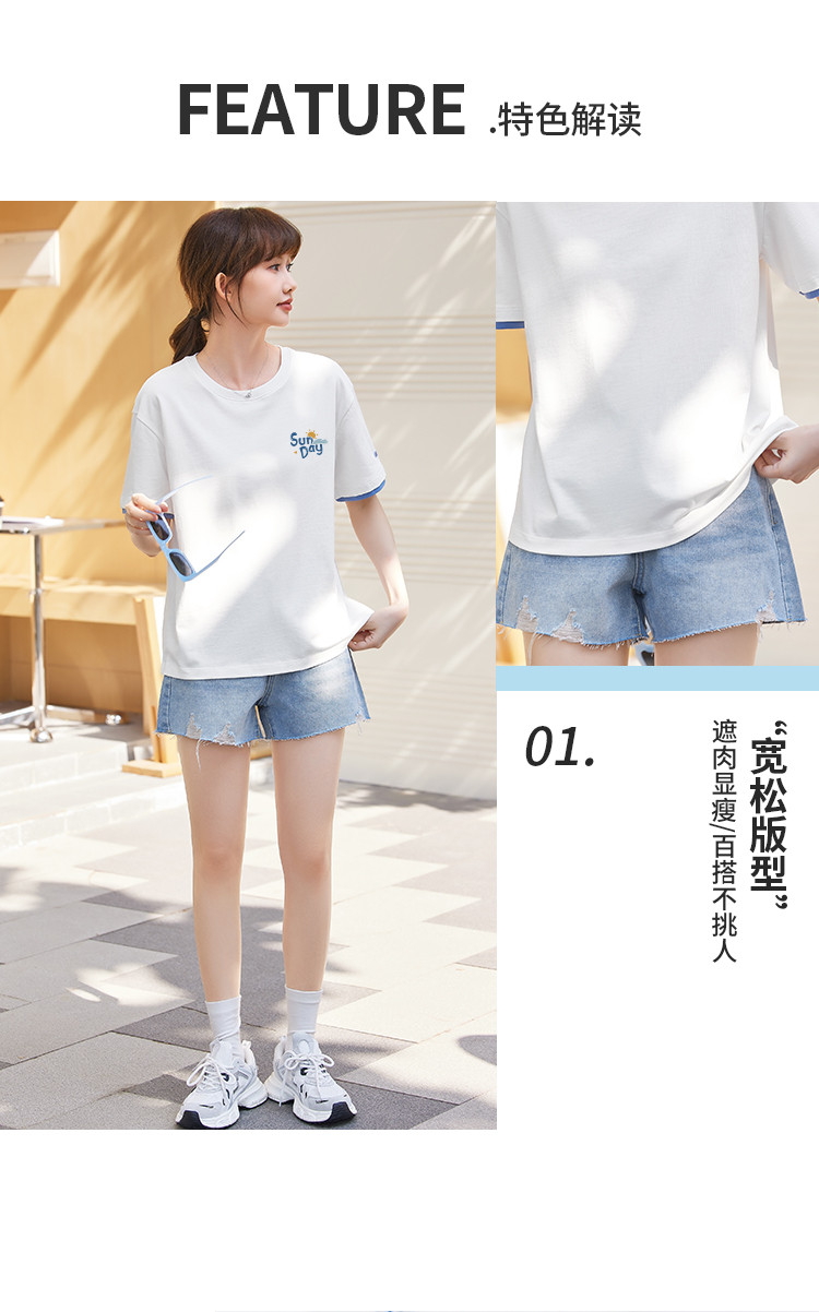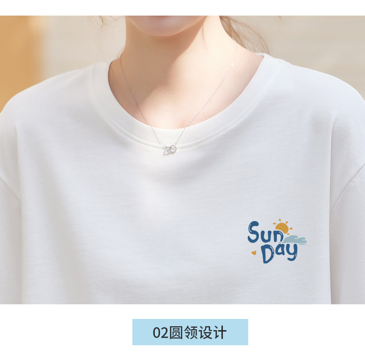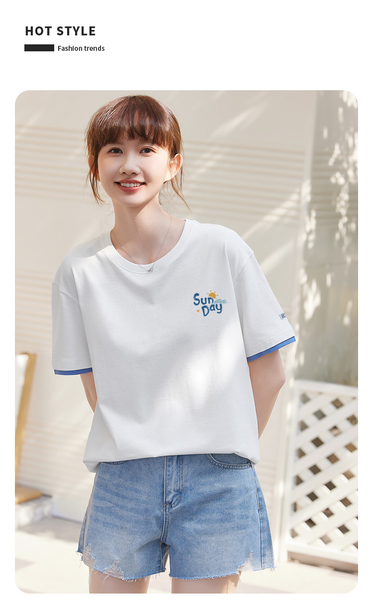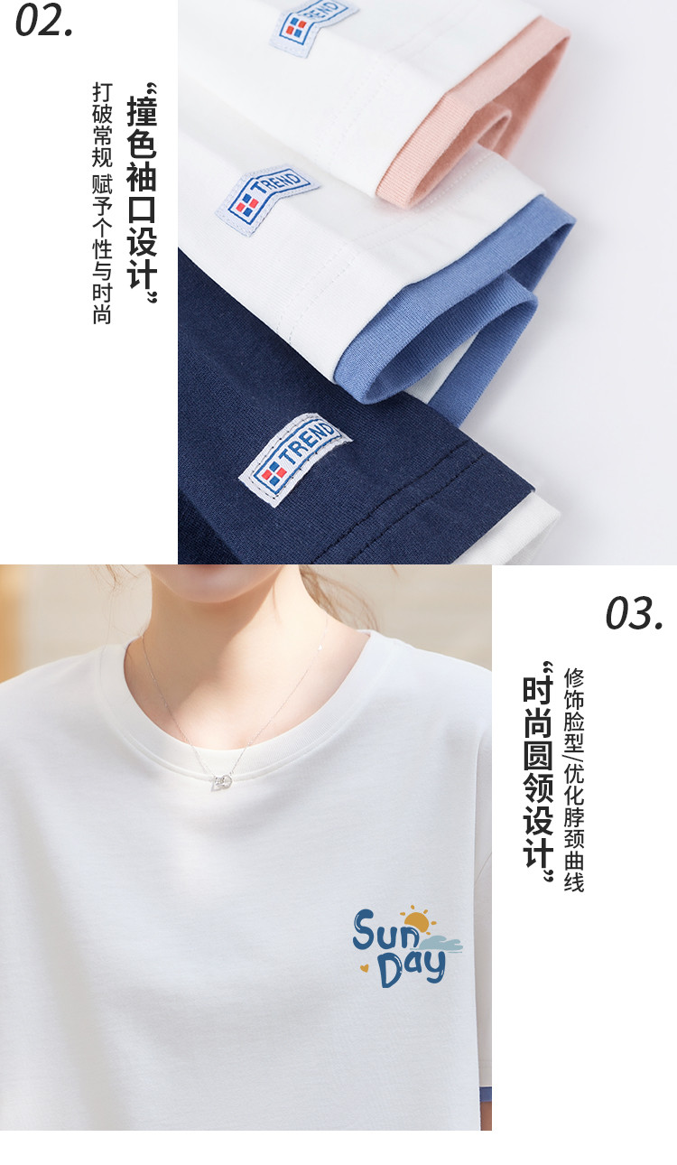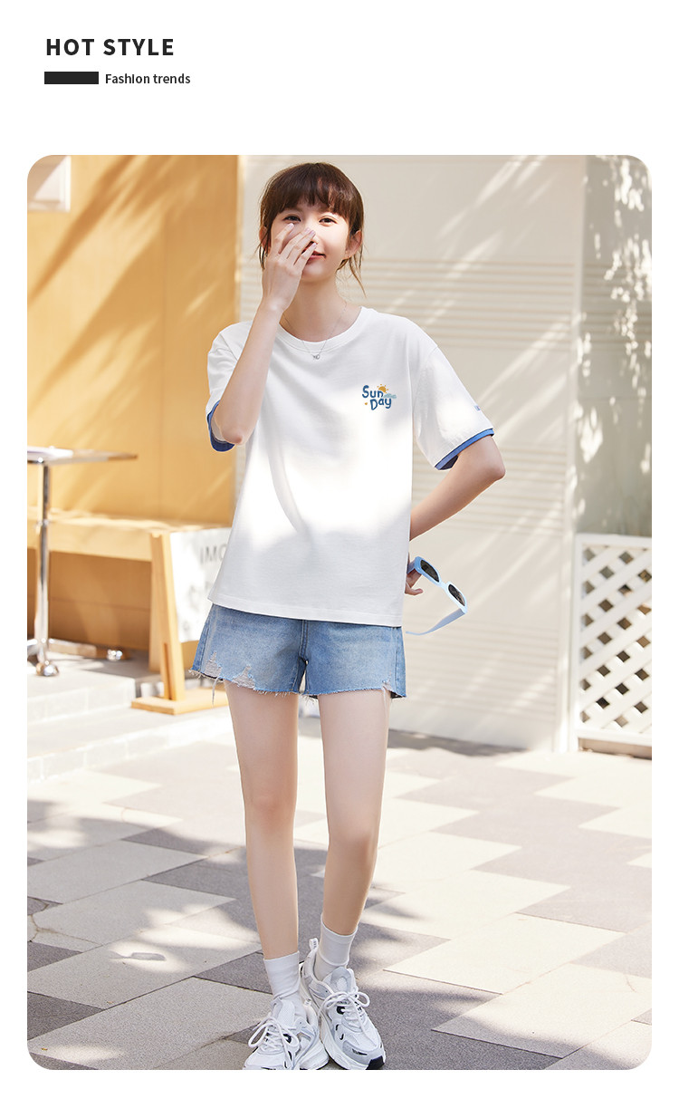 商品名称:米子旗夏季圆领袖口撞色设计T恤女创意印花宽松休闲短袖上衣 967642