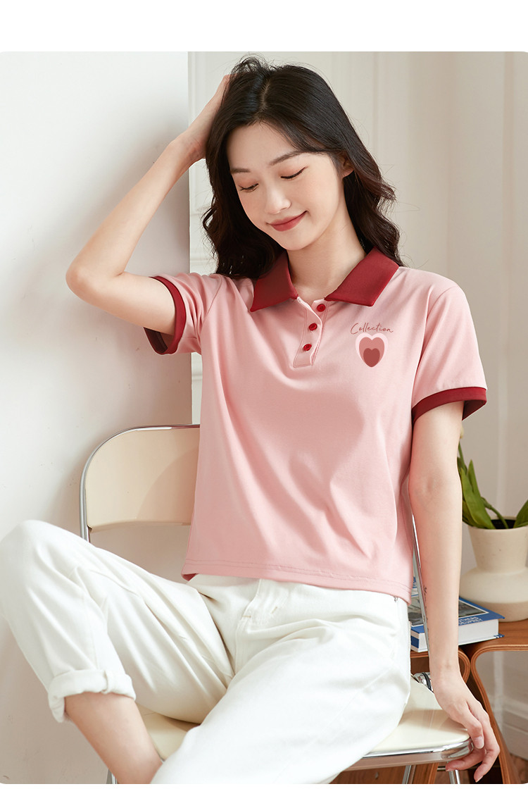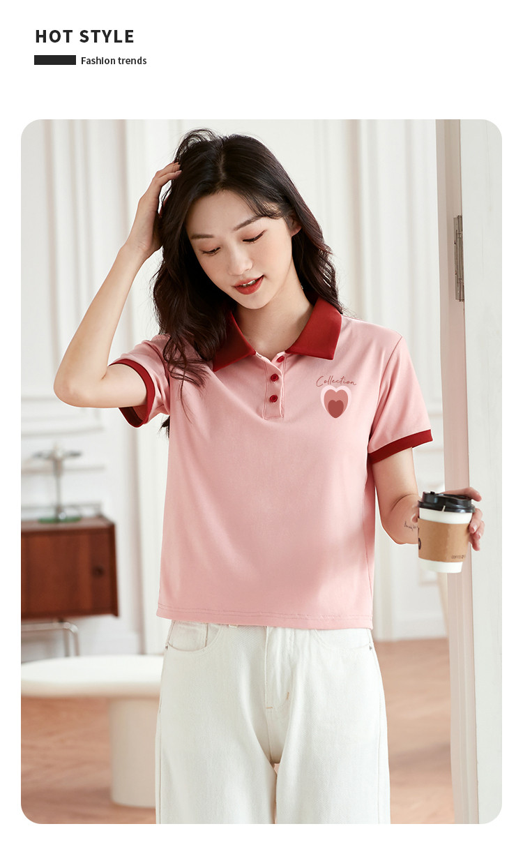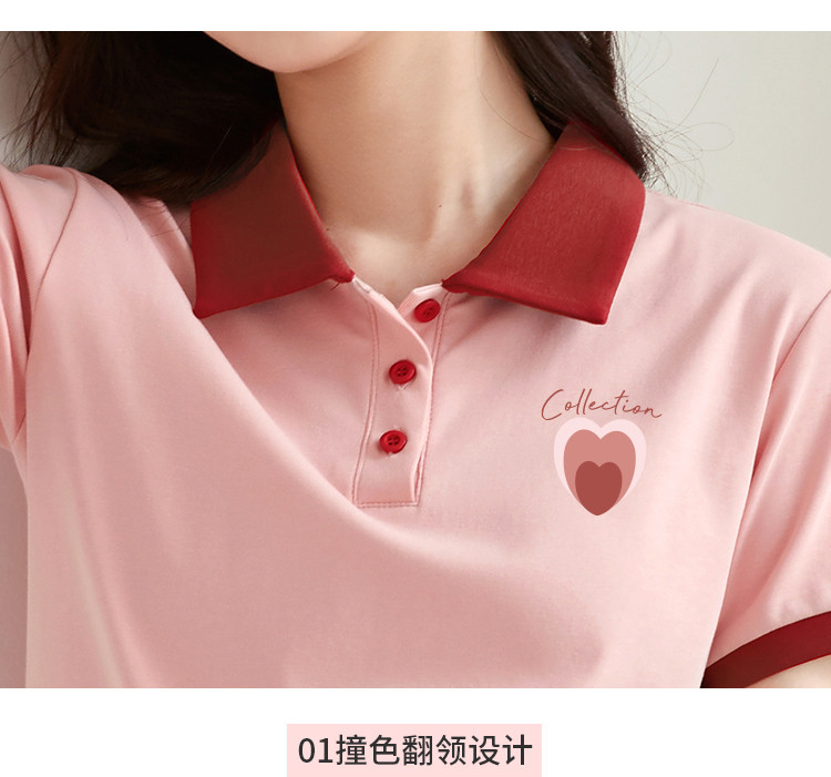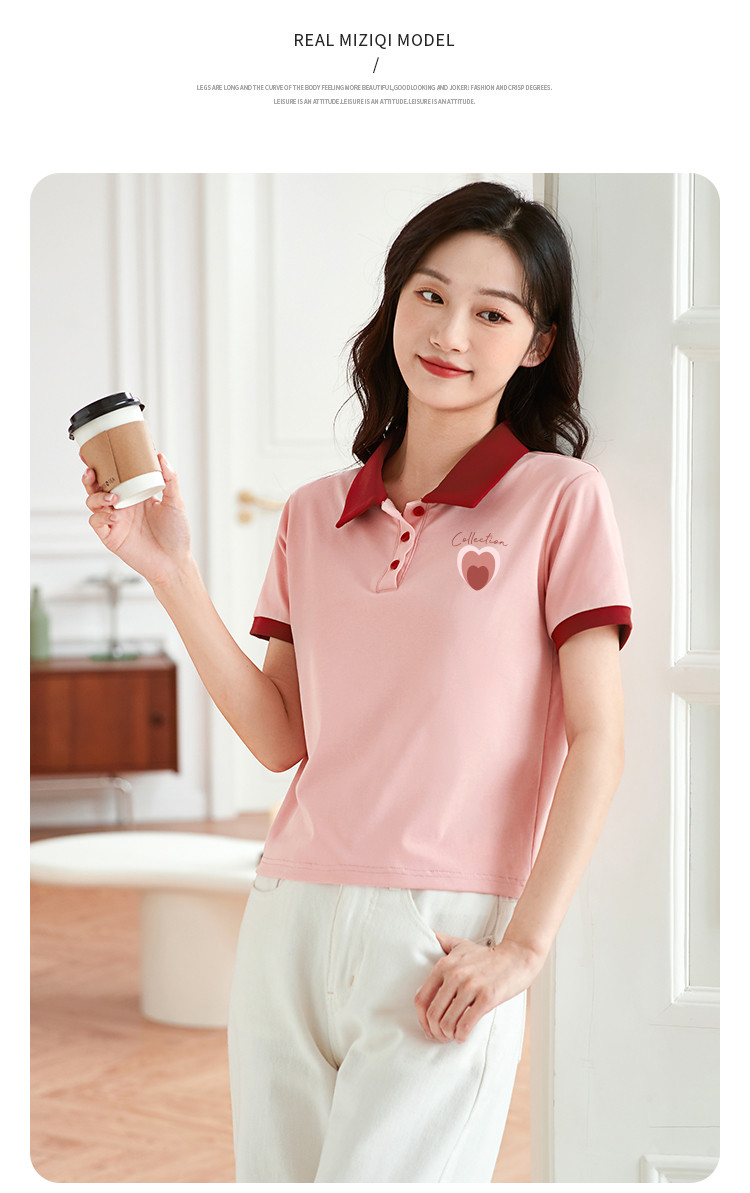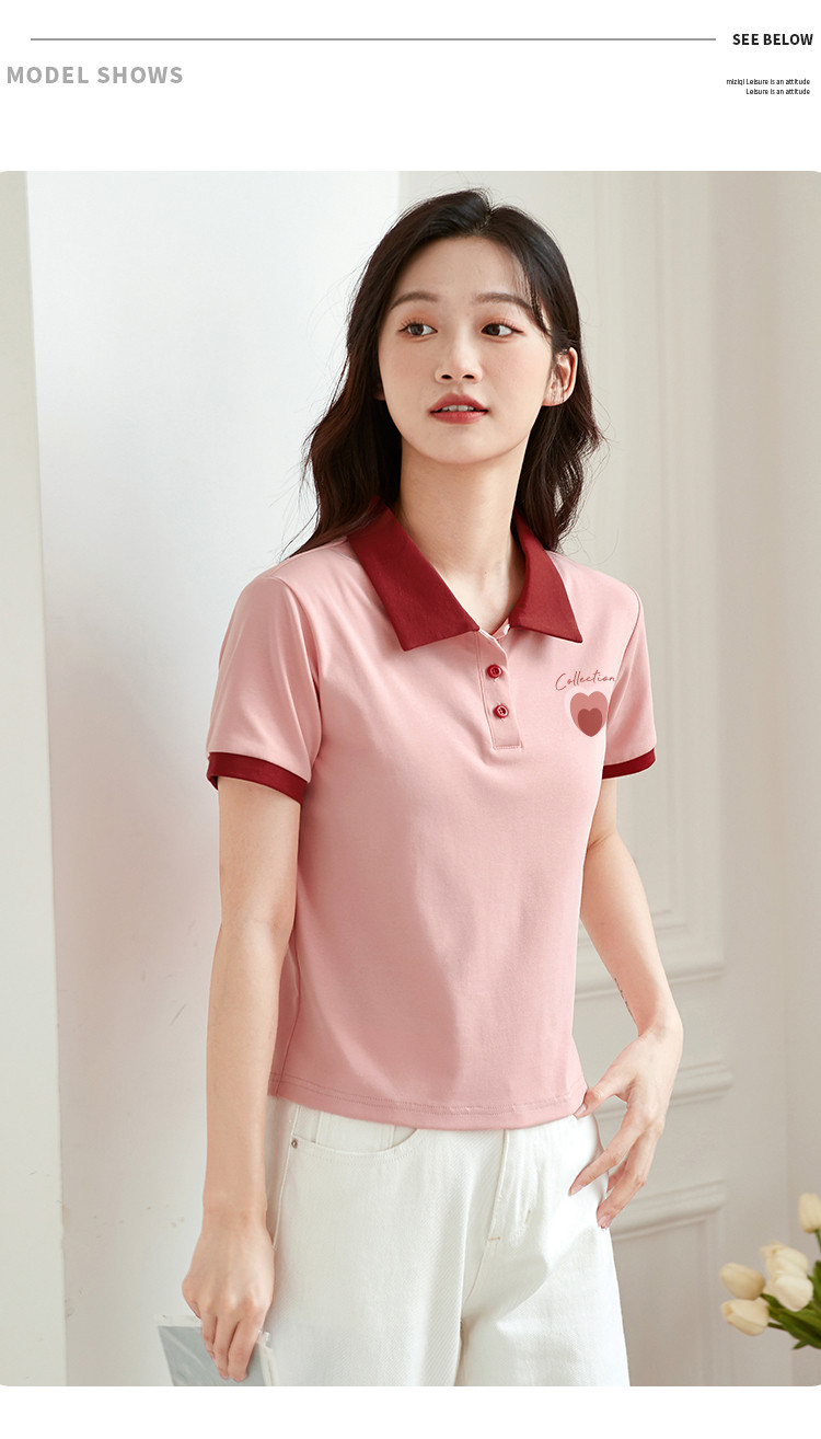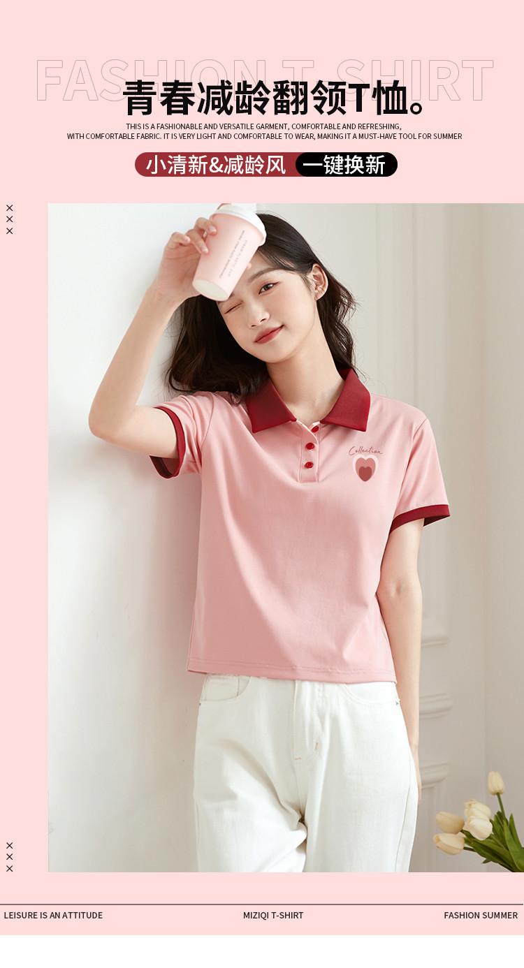 米子旗夏季款印花polo领T恤女撞色翻领短袖上衣 139610