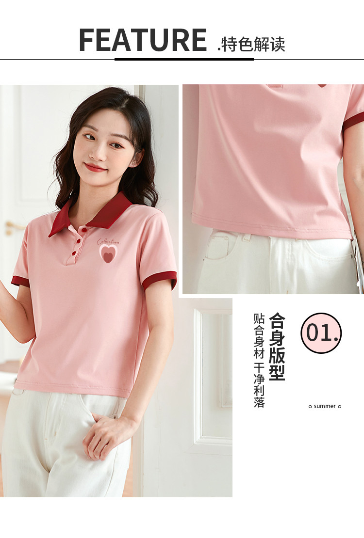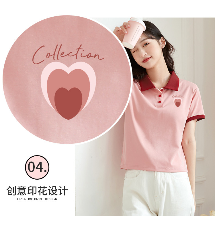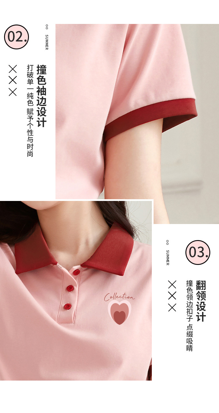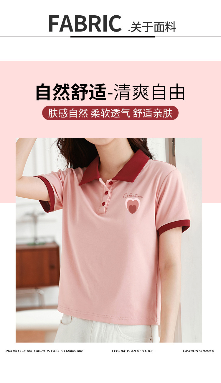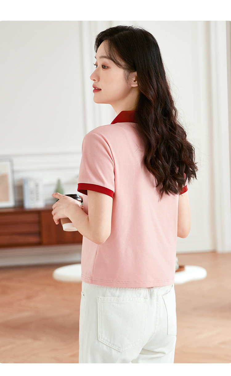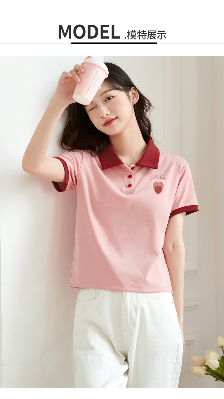 米子旗夏季款印花polo领T恤女撞色翻领短袖上衣 139610