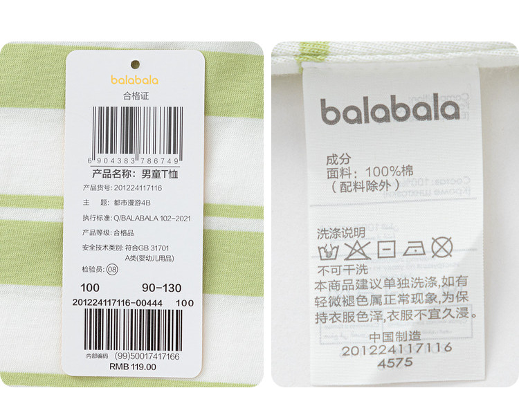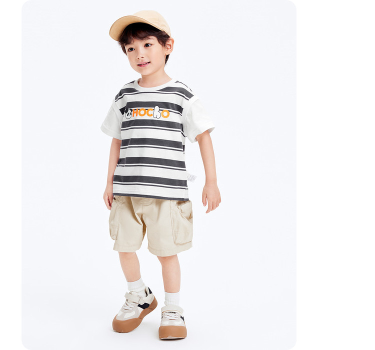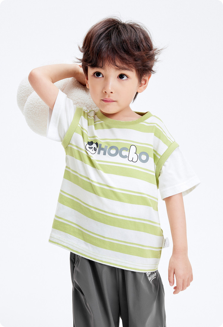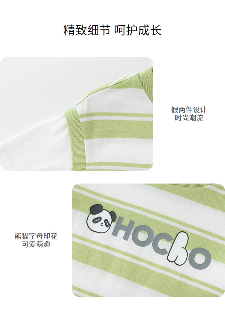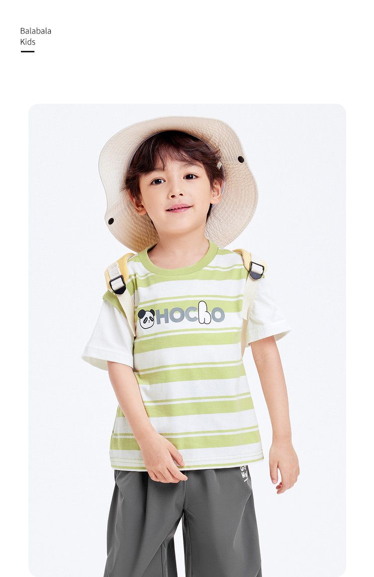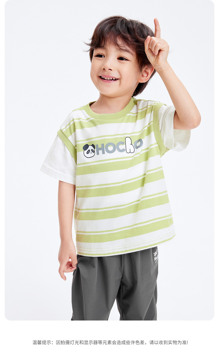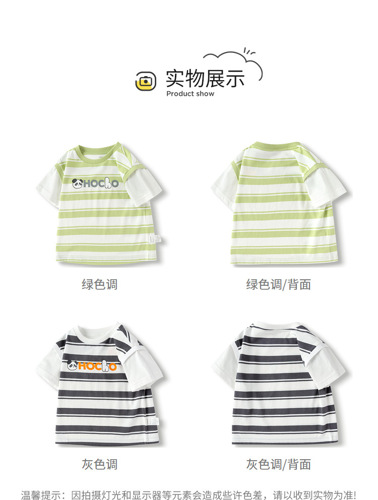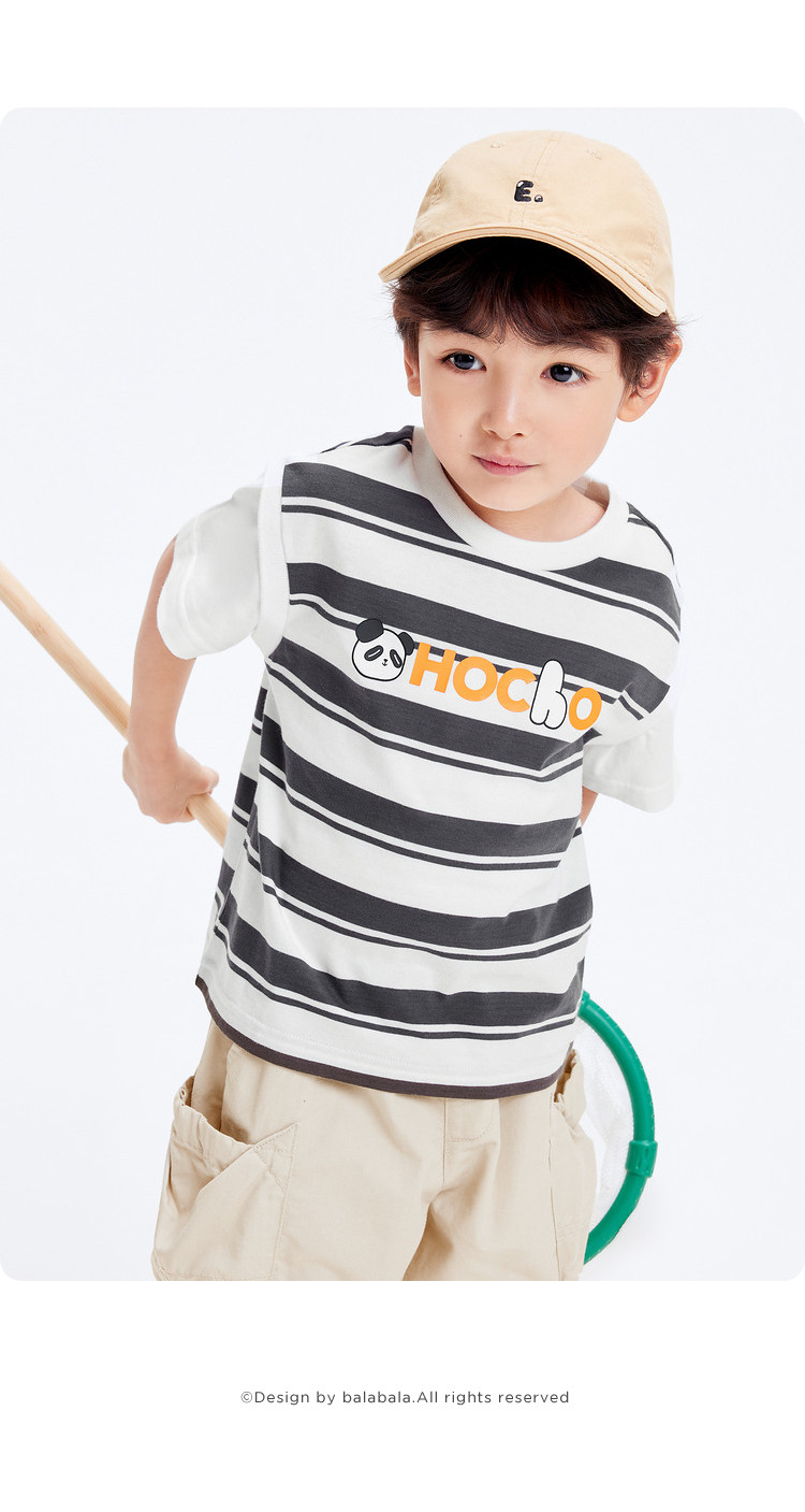 商品名称:巴拉巴拉童装男童短袖t恤假两件条纹上衣儿童熊猫字母印花夏装潮 877509