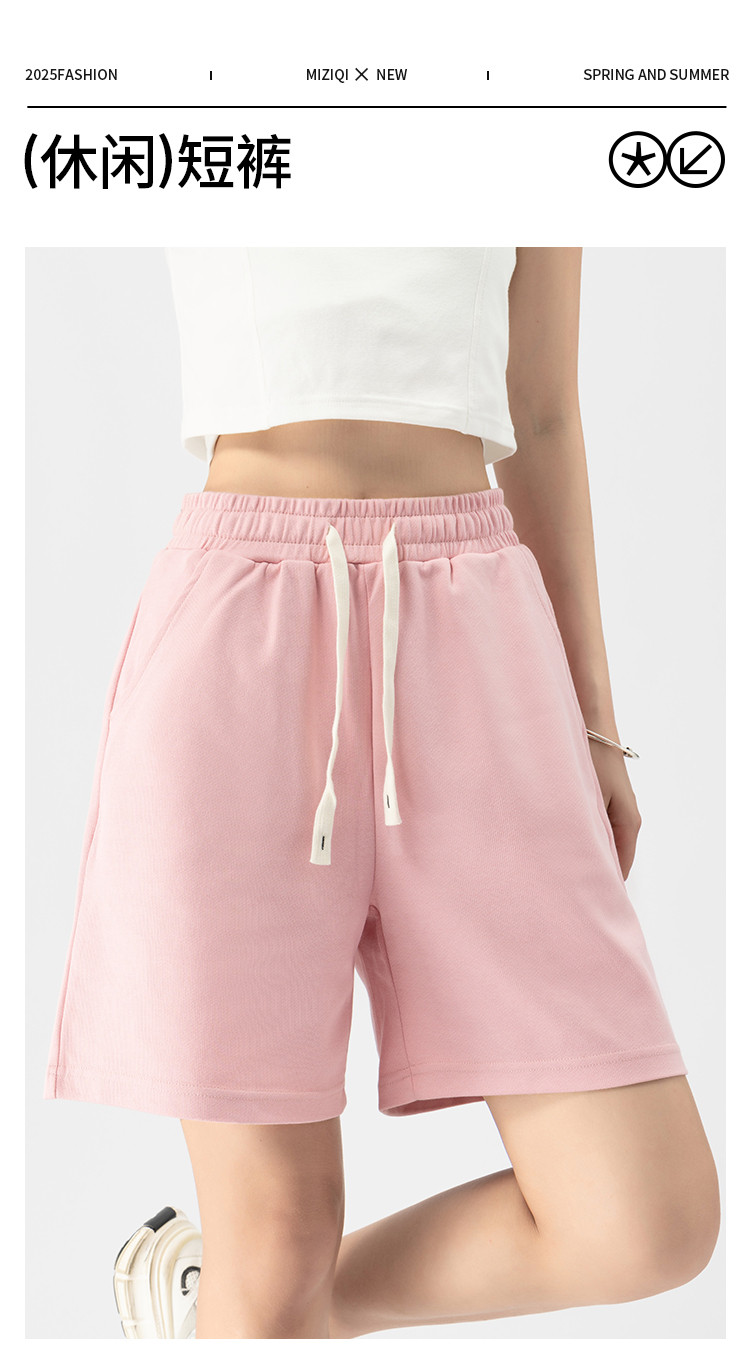 米子旗夏季高腰抽绳薄款休闲裤宽松休闲运动爆款短裤阔腿裤女 978522