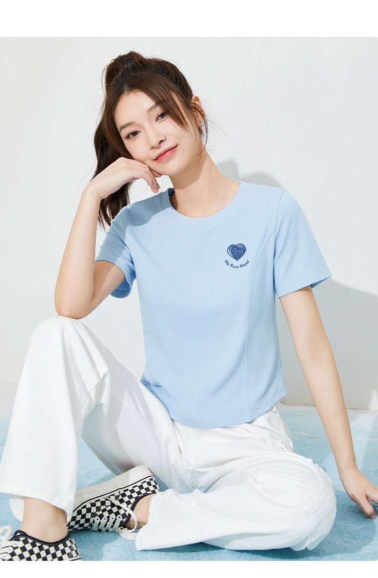 米子旗夏季圆领印花女式T恤短款修身减龄短袖上衣 599066