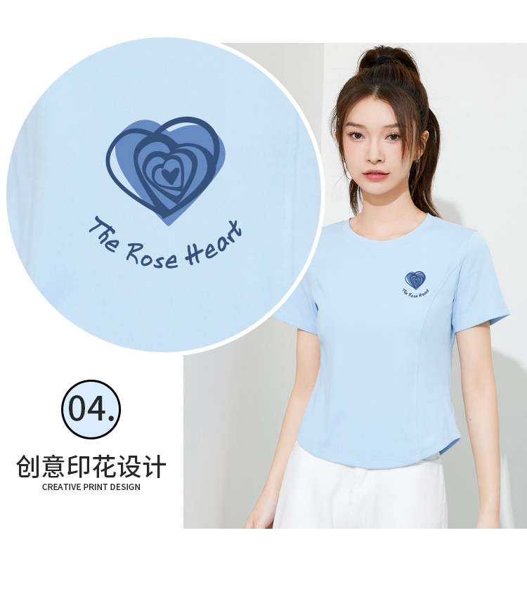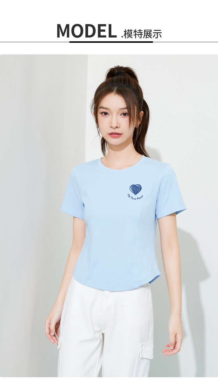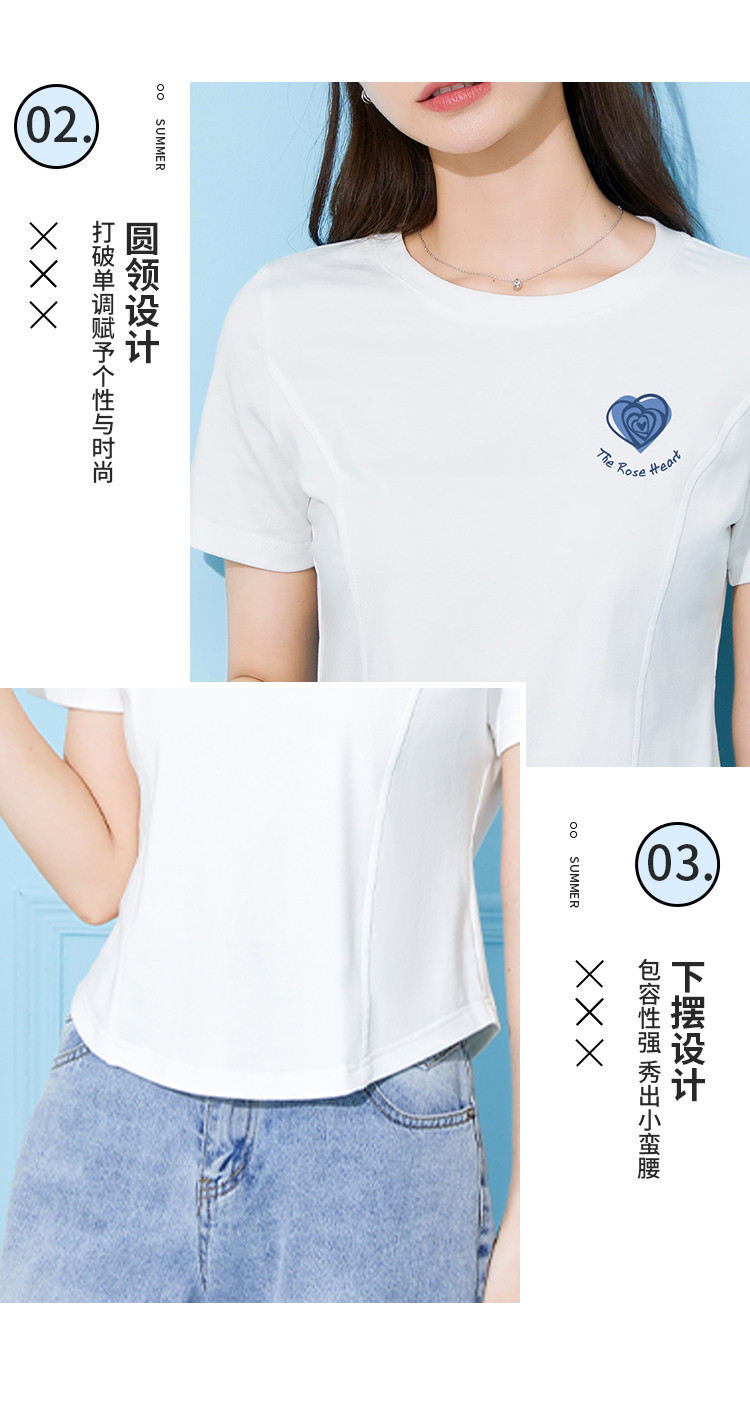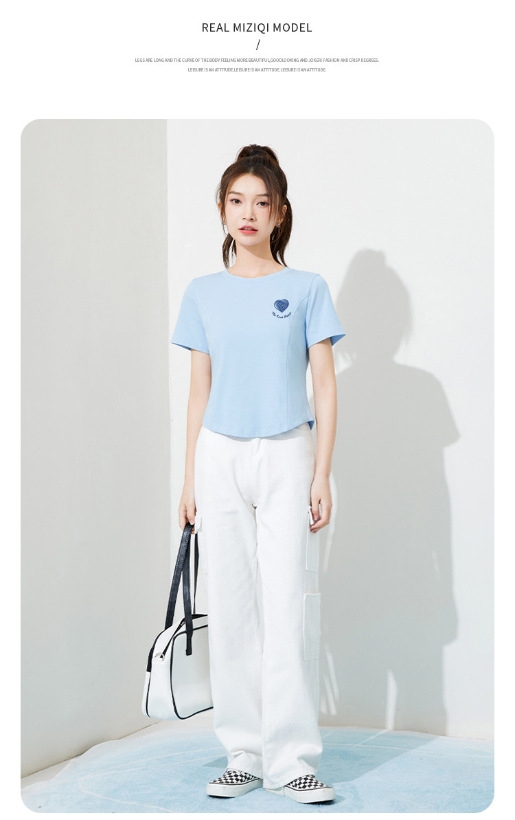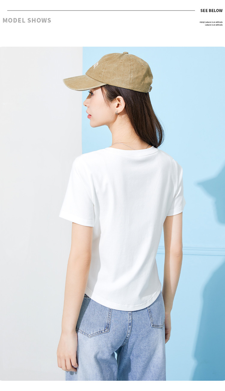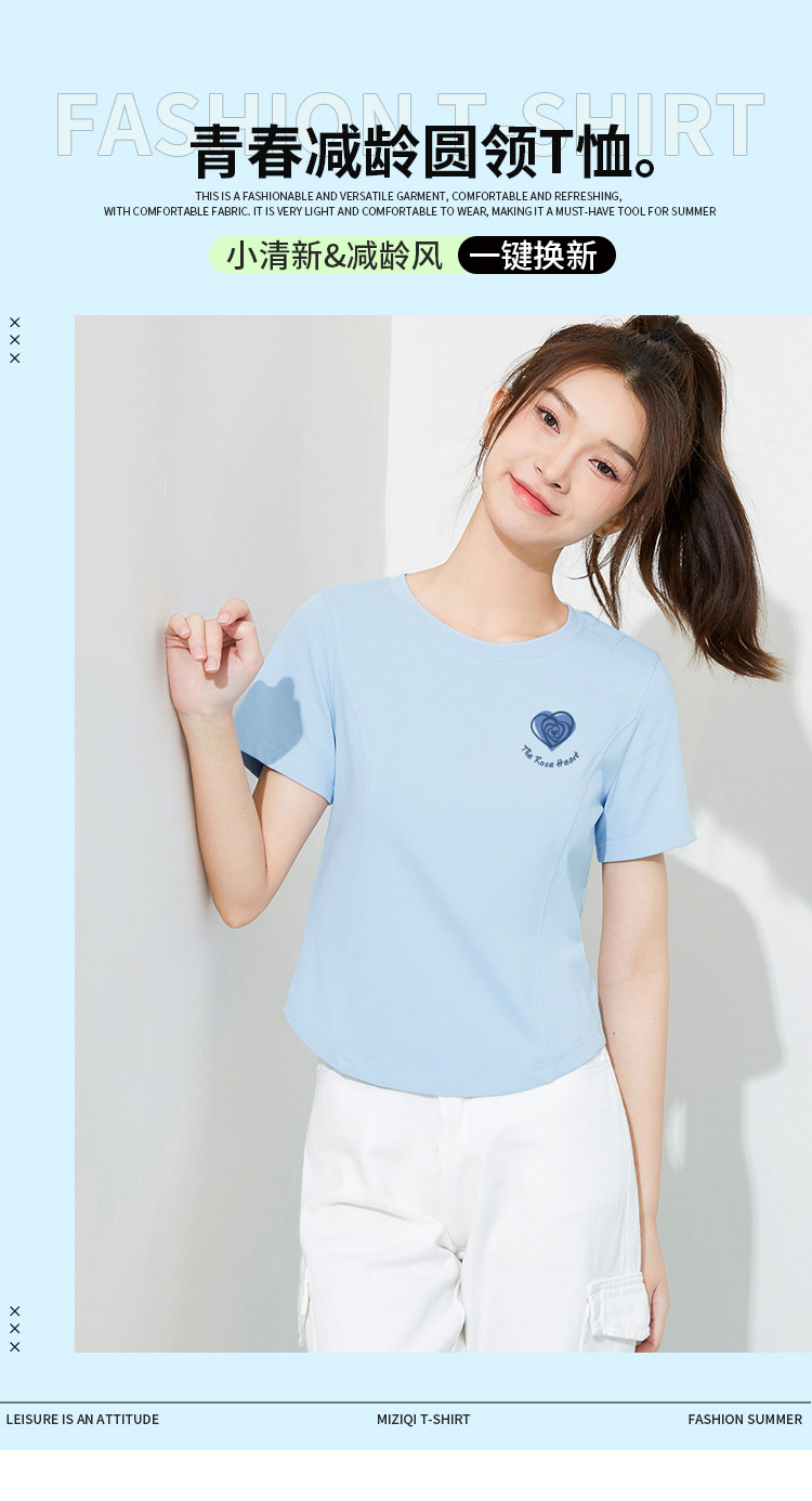 商品名称:米子旗夏季圆领印花女式T恤短款修身减龄短袖上衣 599066