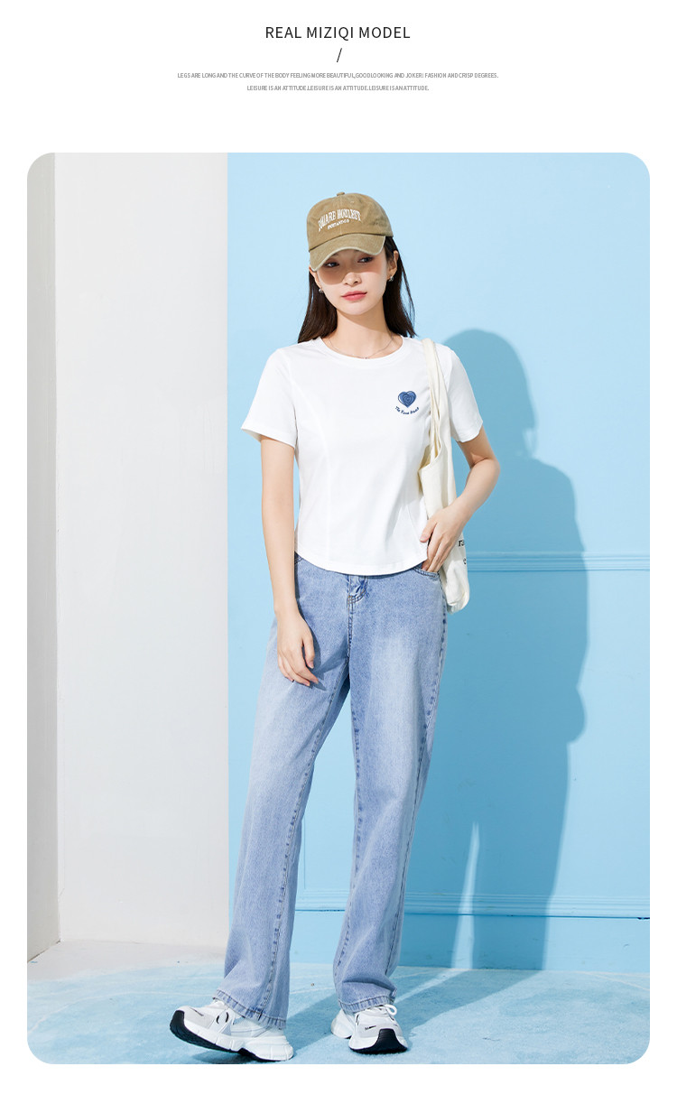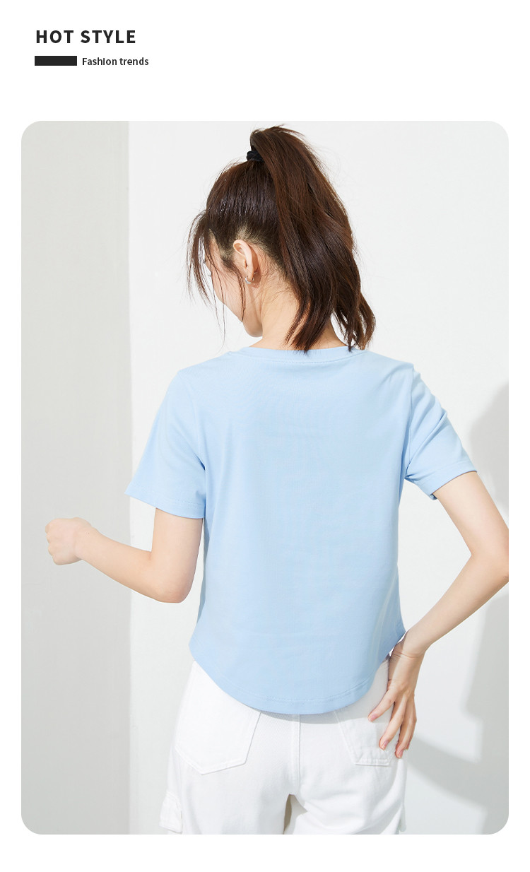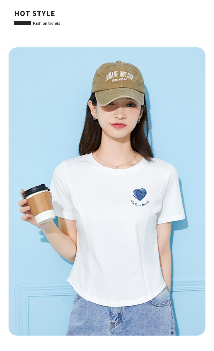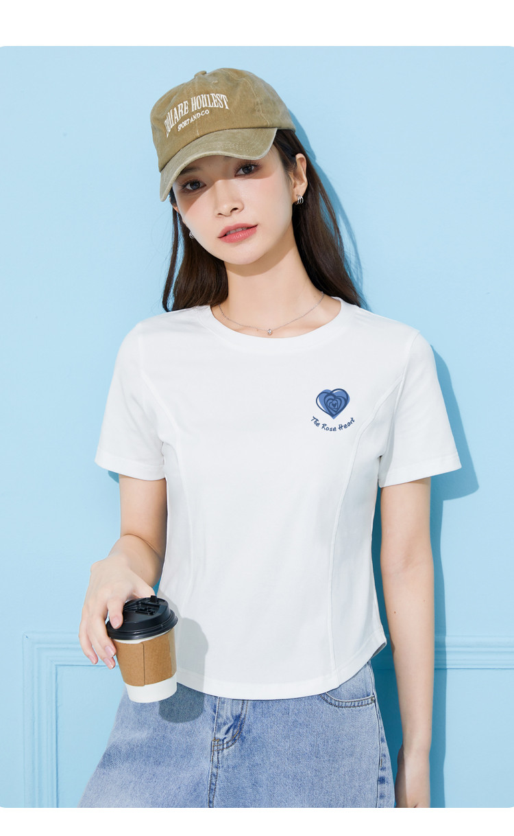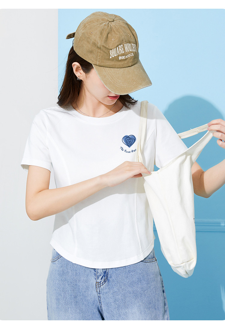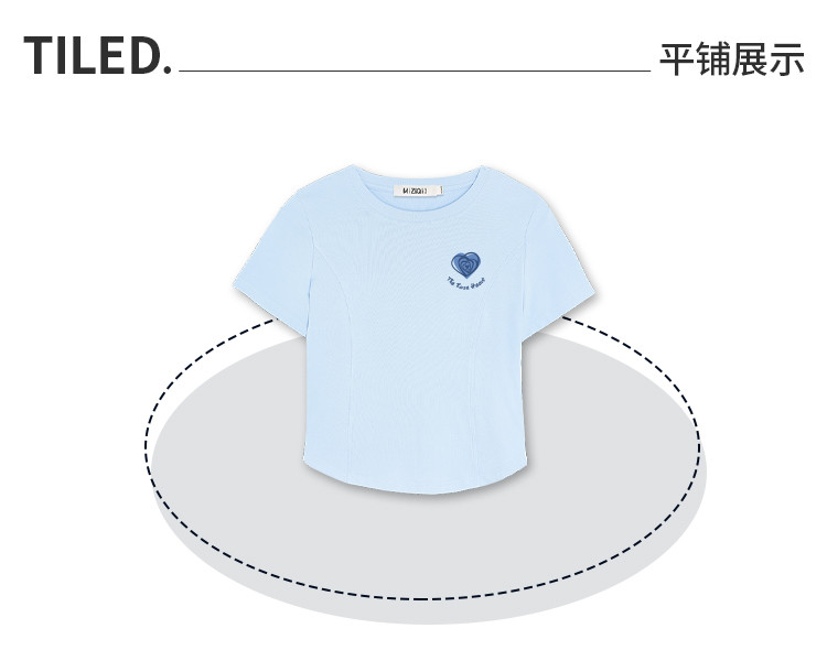 商品名称:米子旗夏季圆领印花女式T恤短款修身减龄短袖上衣 599066
