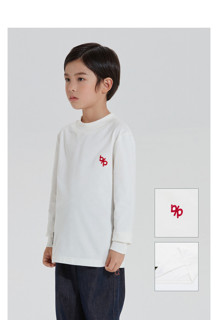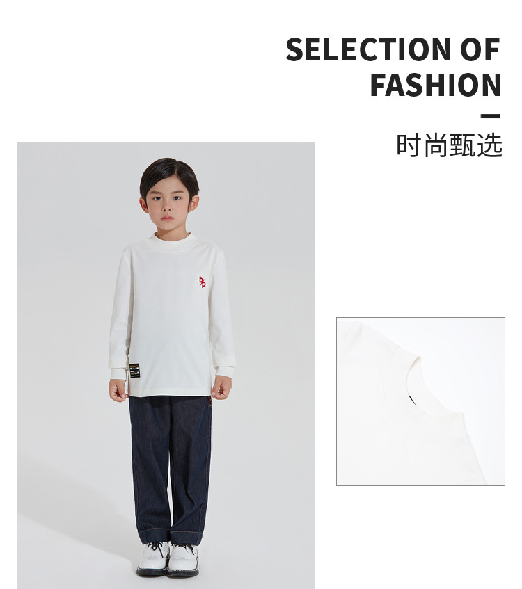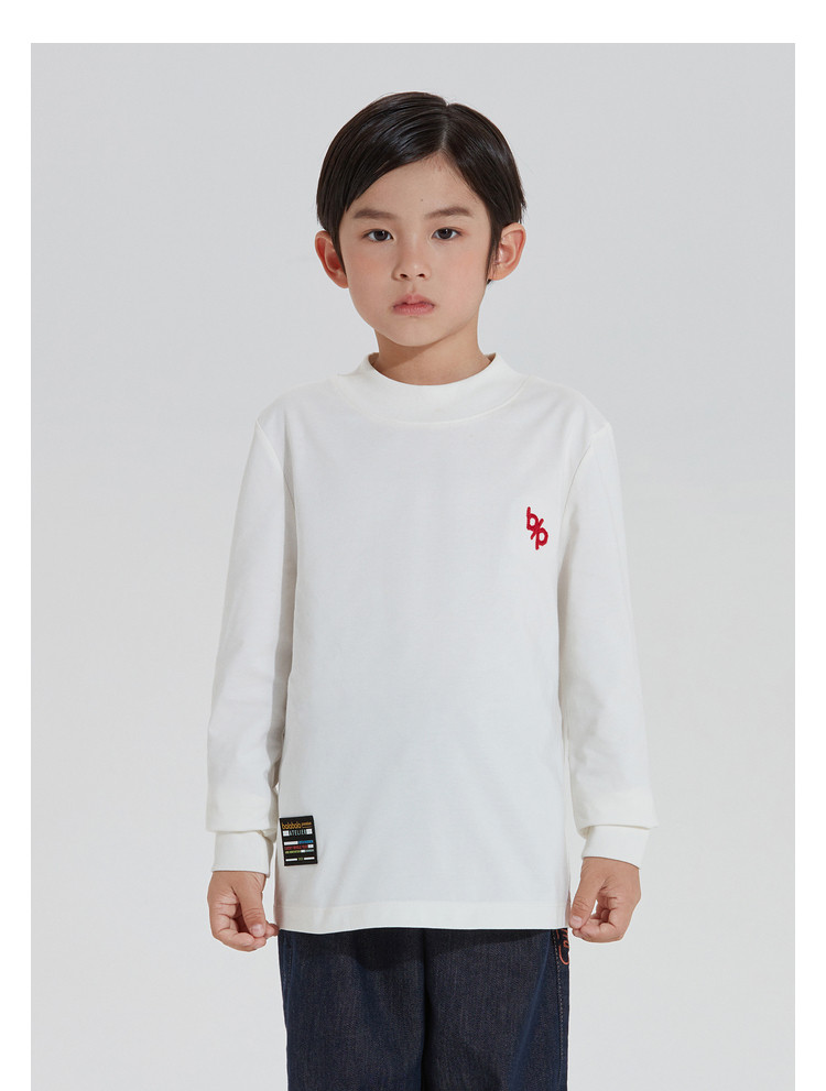 高端儿童长袖T恤男童小童宝宝春秋小半高领螺纹绣花打底上衣套头 367813
