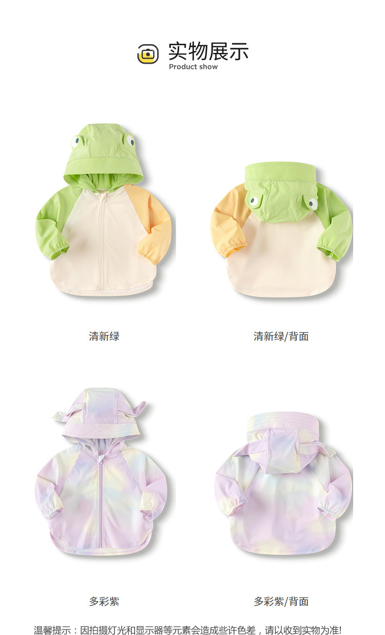 商品名称:吸湿&速干男女宝外套婴儿衣服男童女童2024春夏季防晒衣连帽 948741