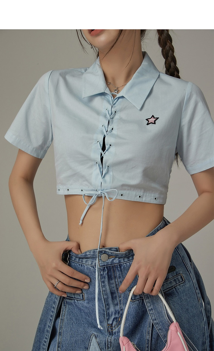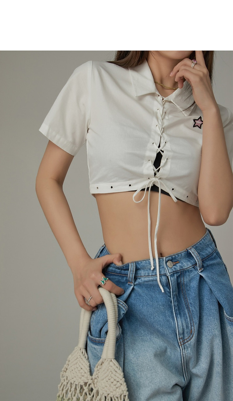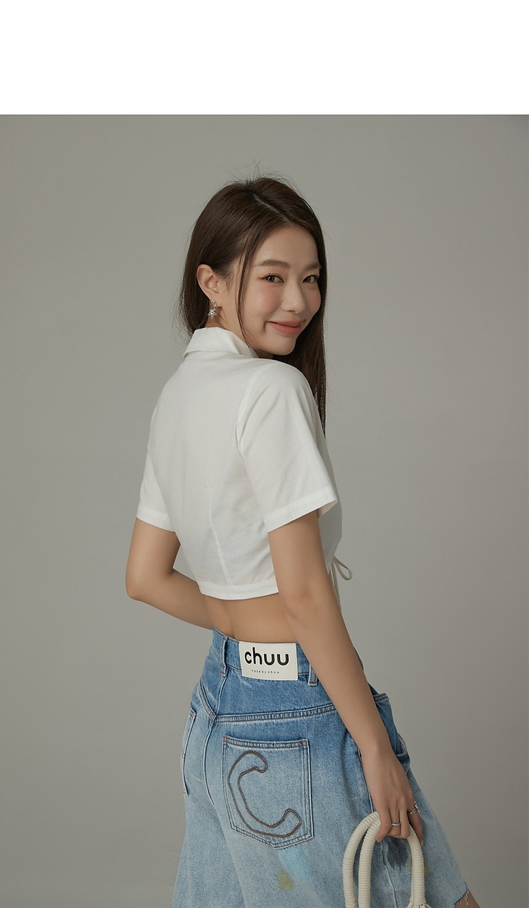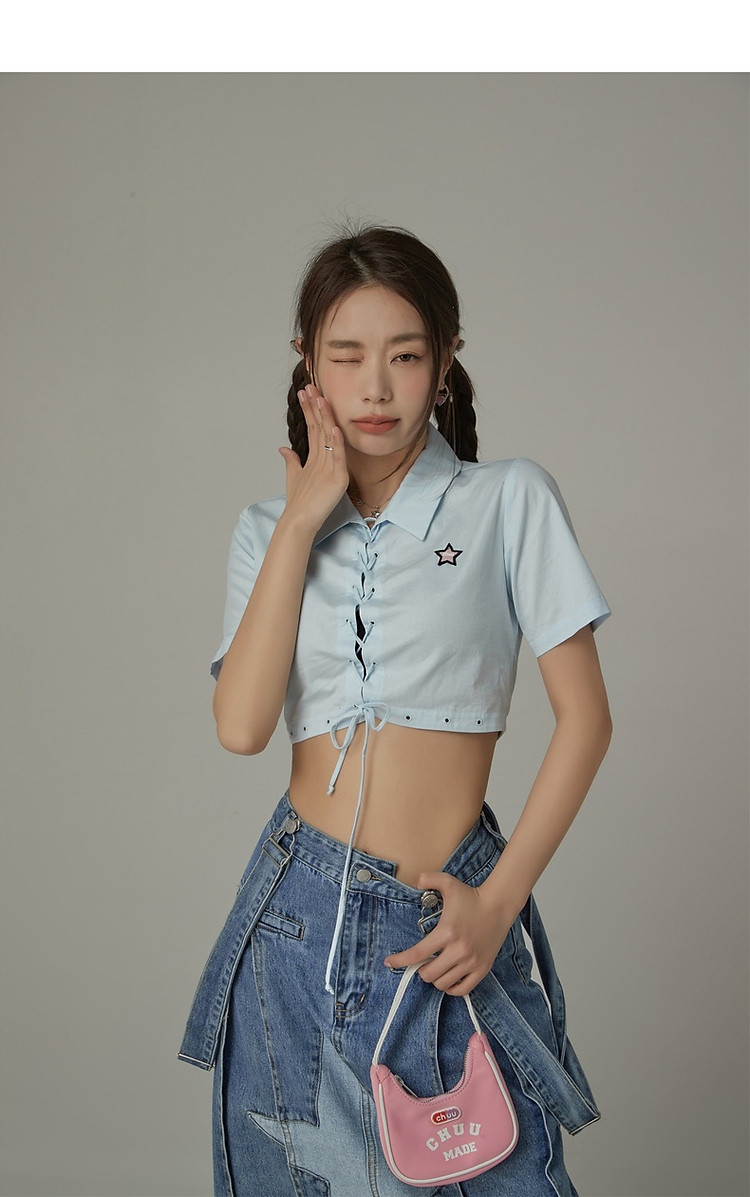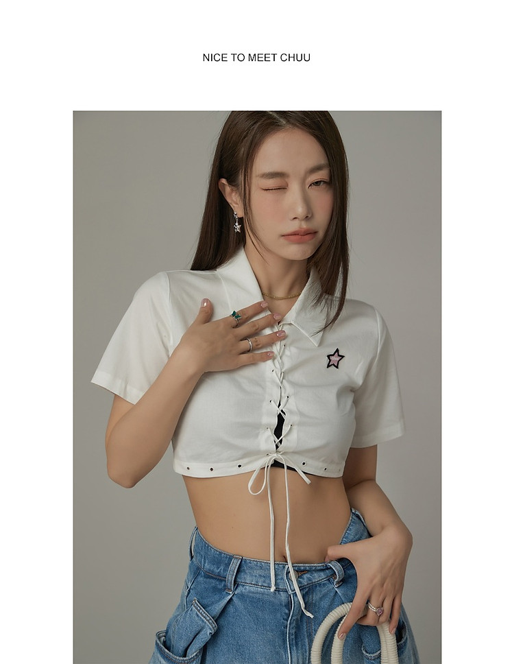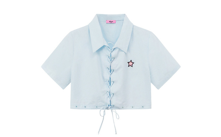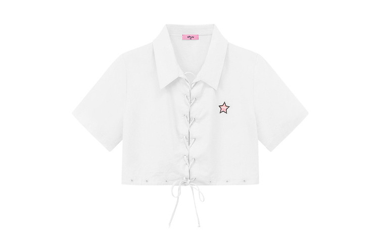CHUU系带镂空衬衫女夏个性辣妹显瘦短款别致上衣 379987