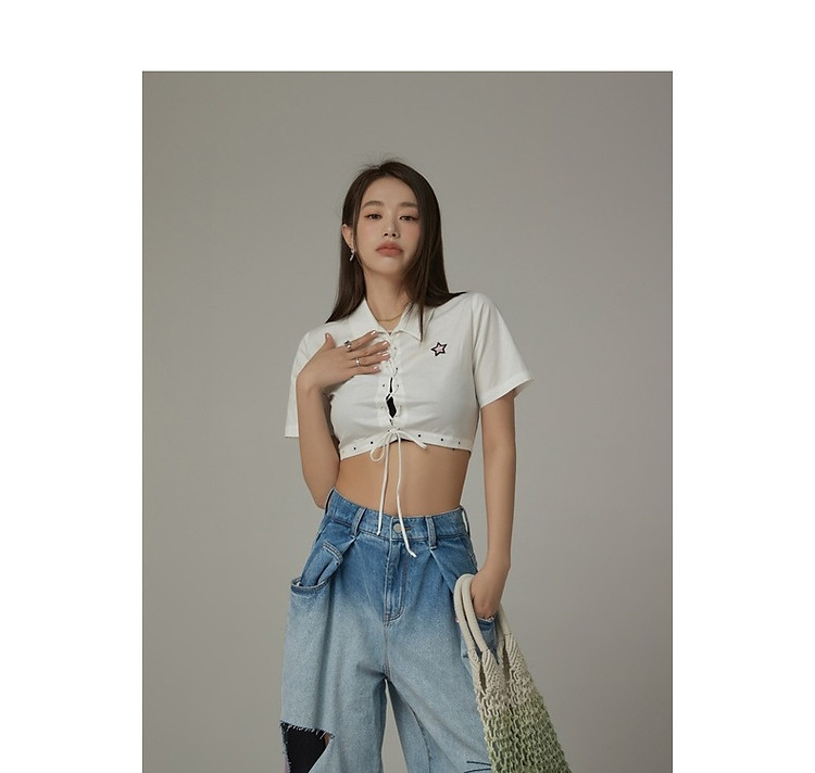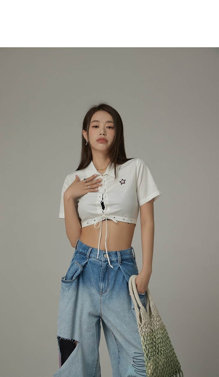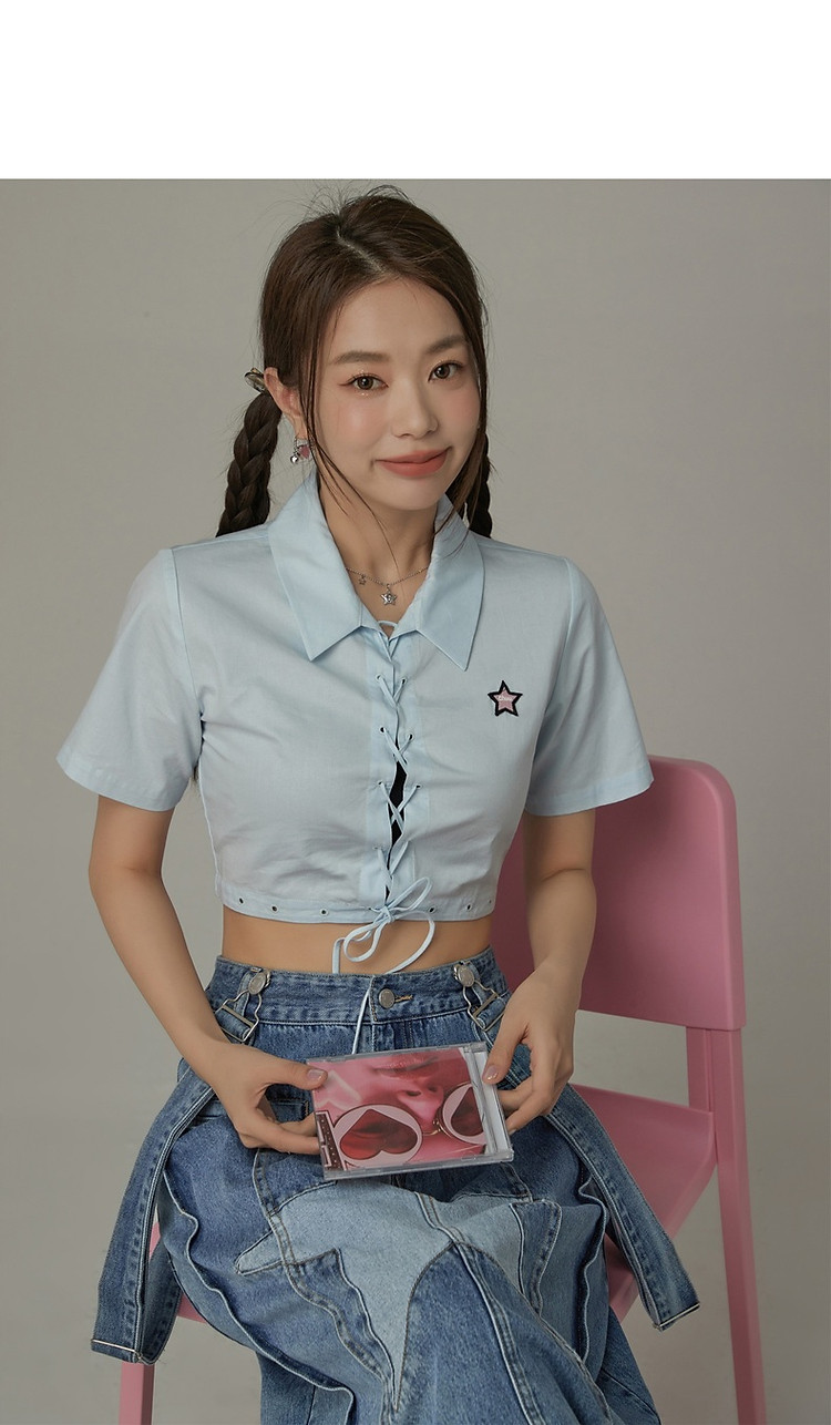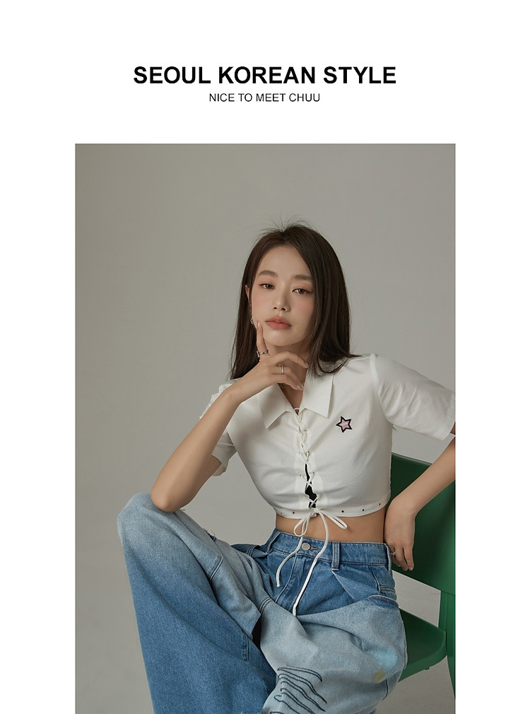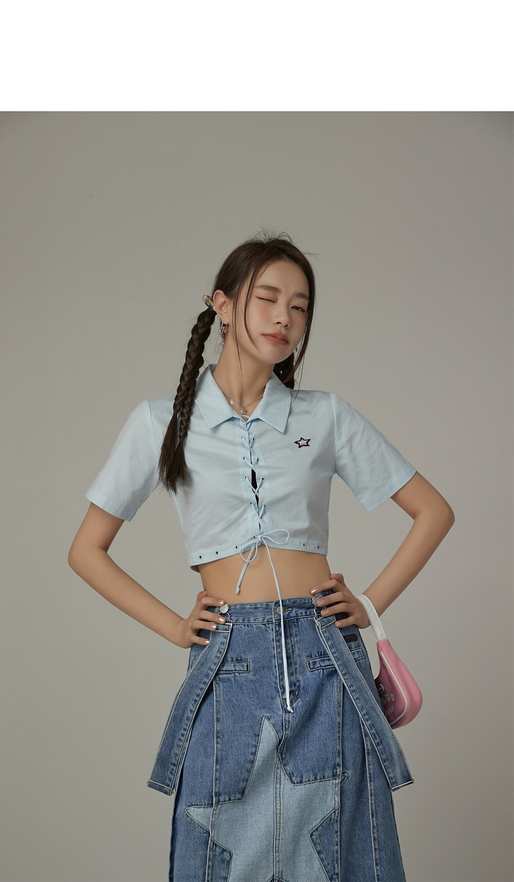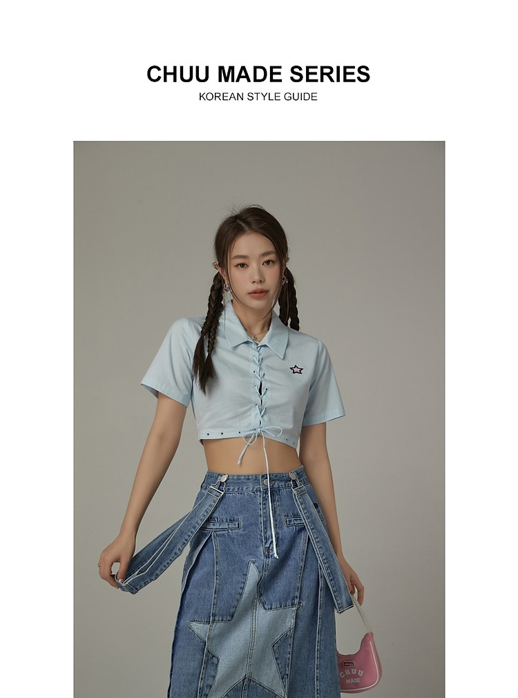 CHUU系带镂空衬衫女夏个性辣妹显瘦短款别致上衣 379987
