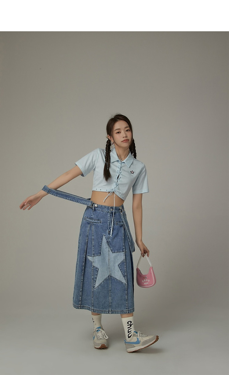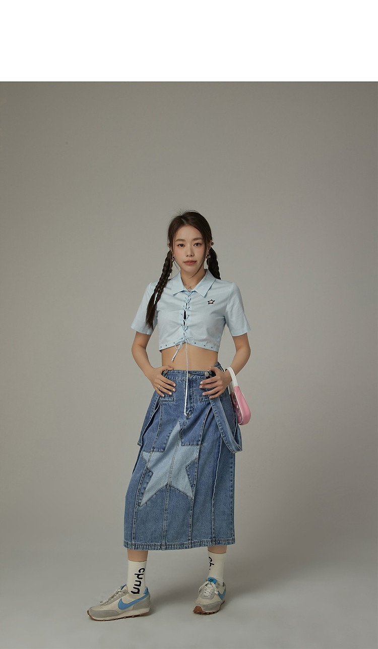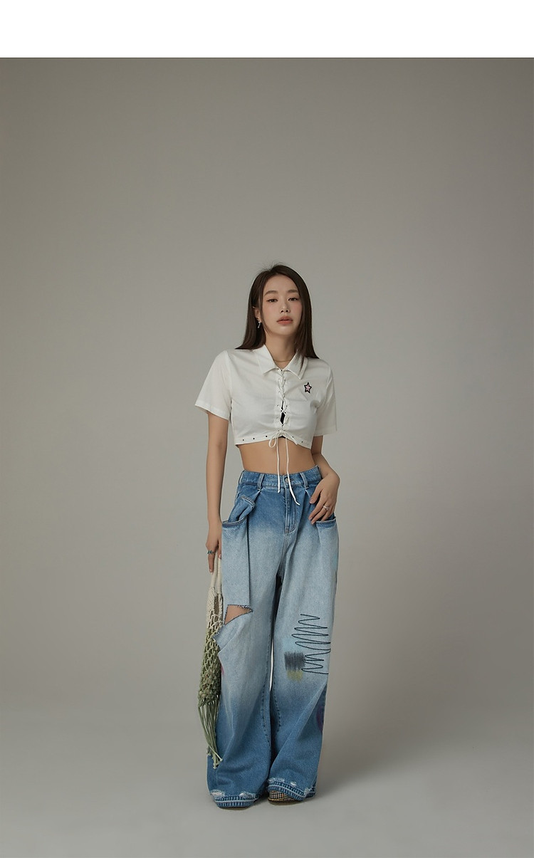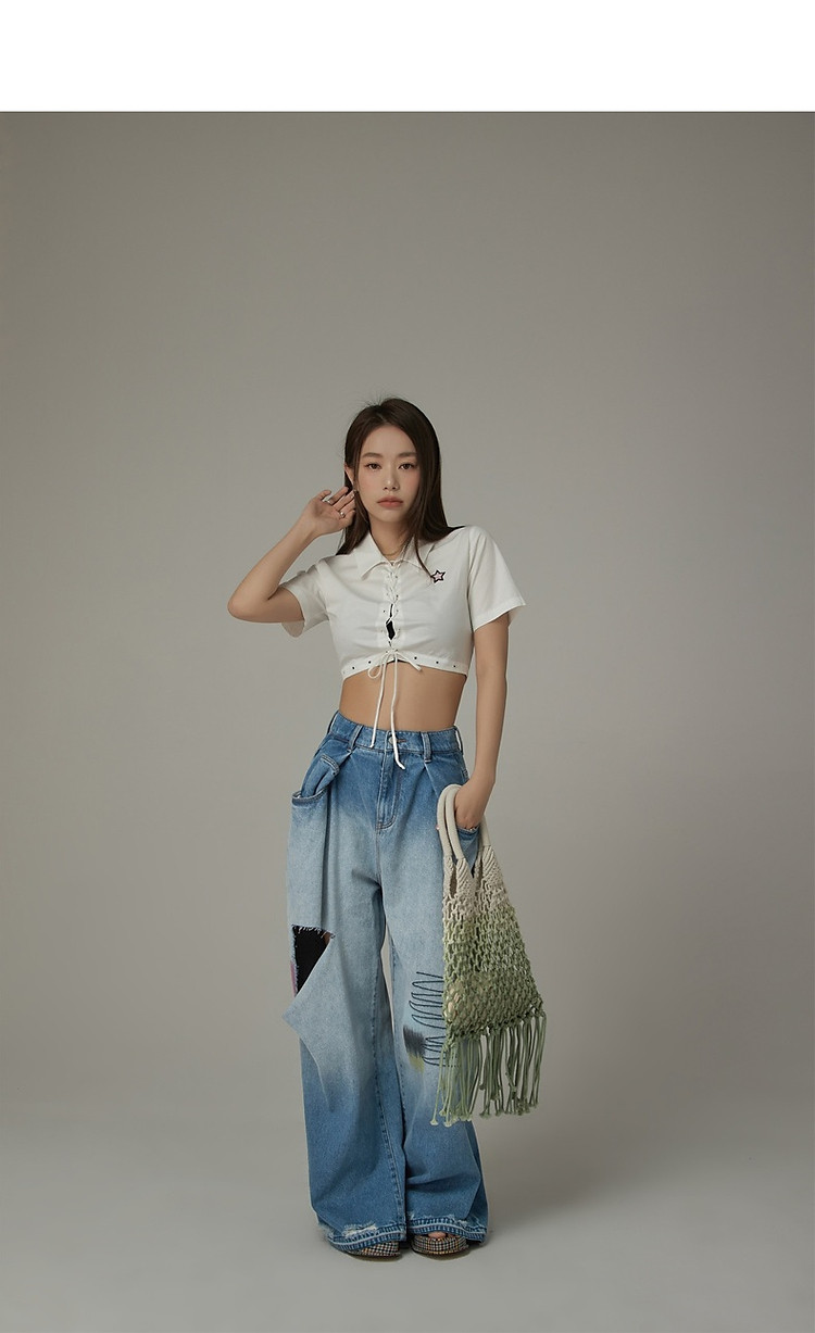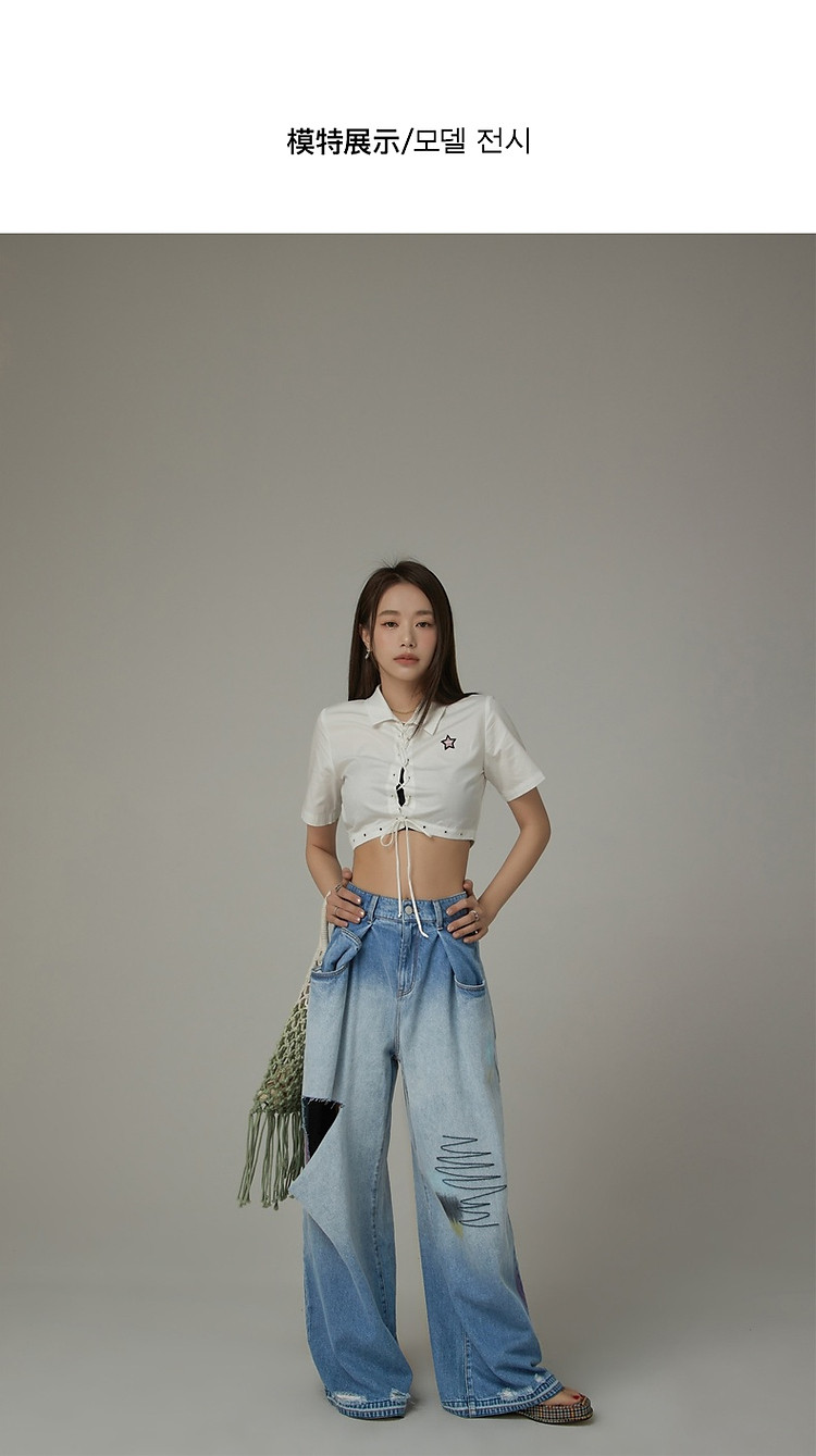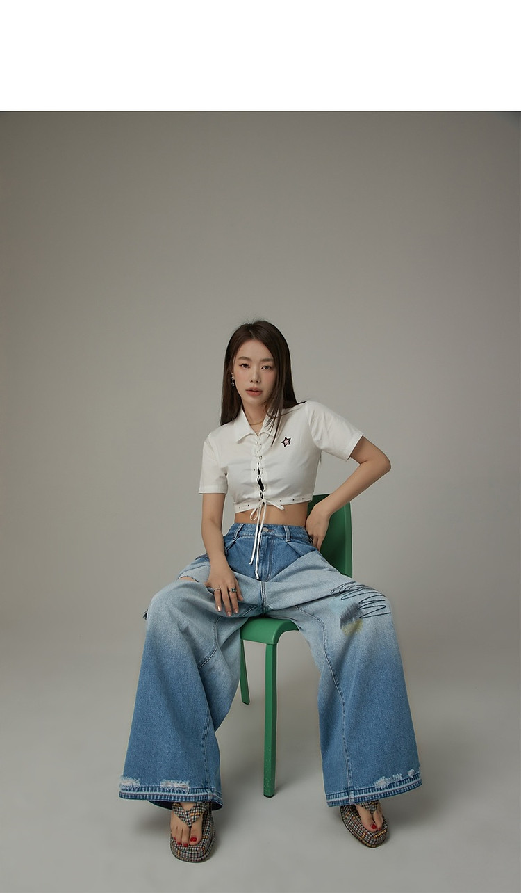 CHUU系带镂空衬衫女夏个性辣妹显瘦短款别致上衣 379987