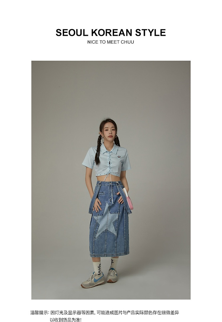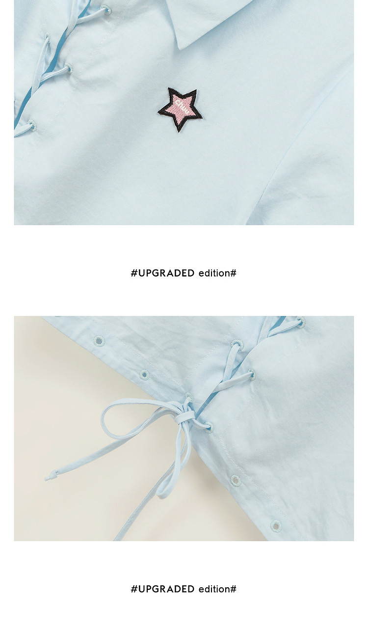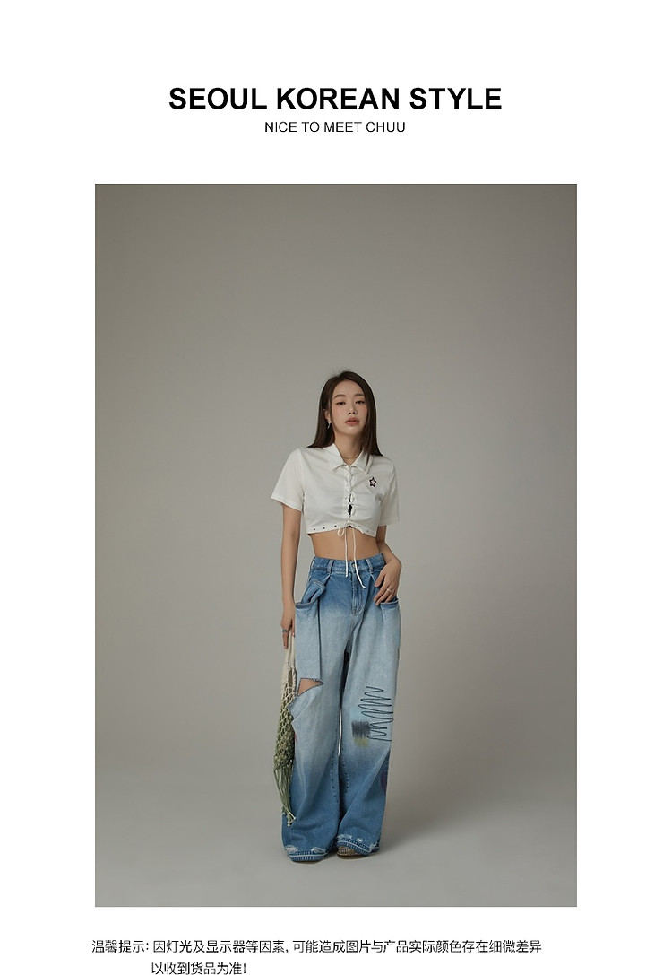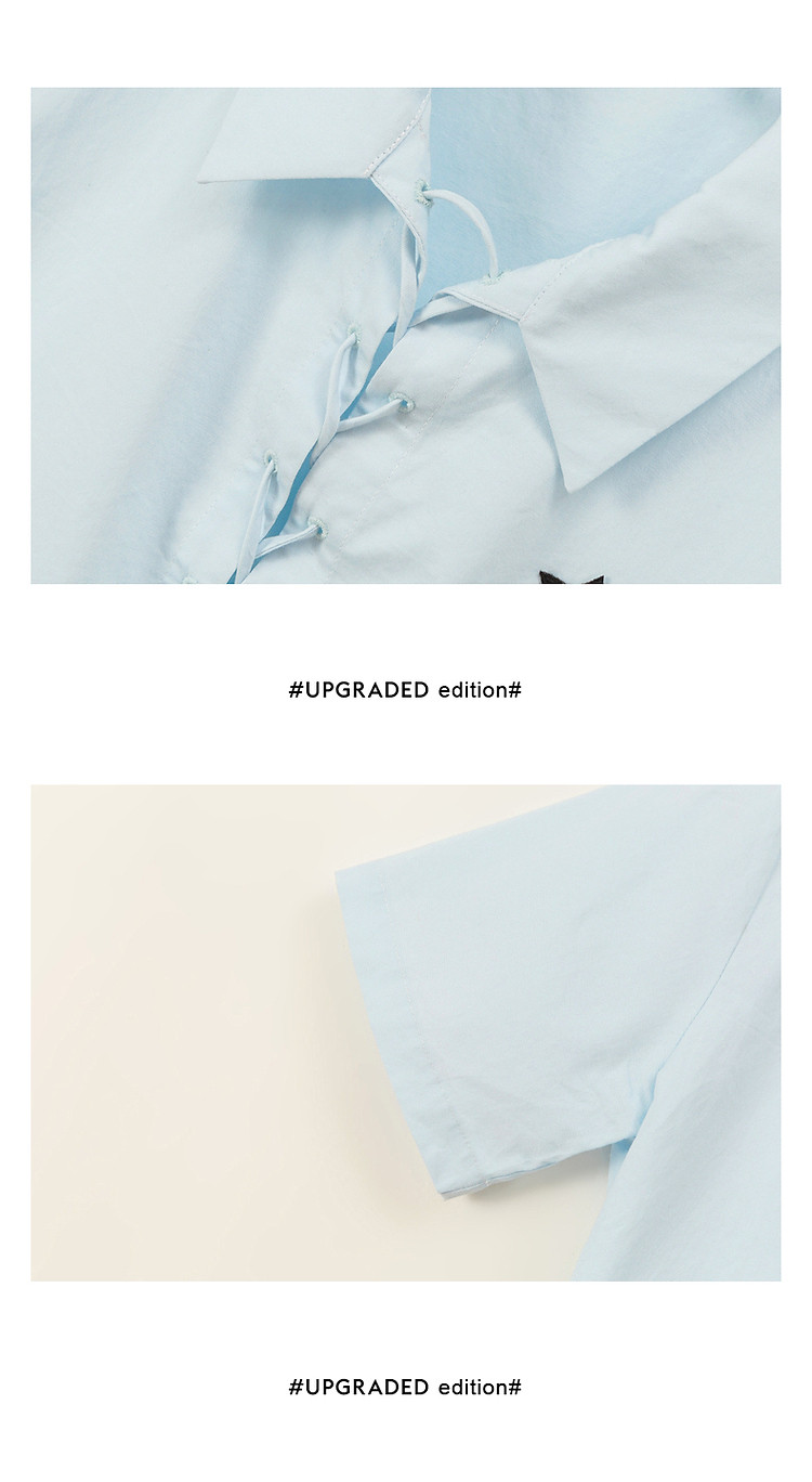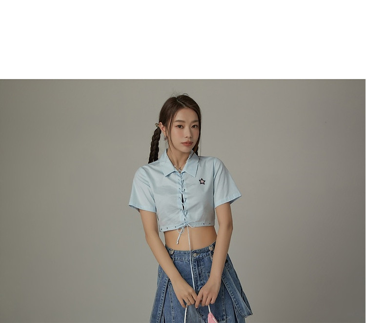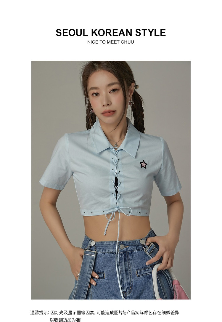 商品名称:CHUU系带镂空衬衫女夏个性辣妹显瘦短款别致上衣 379987