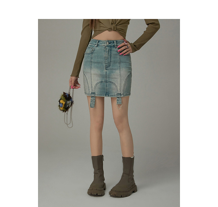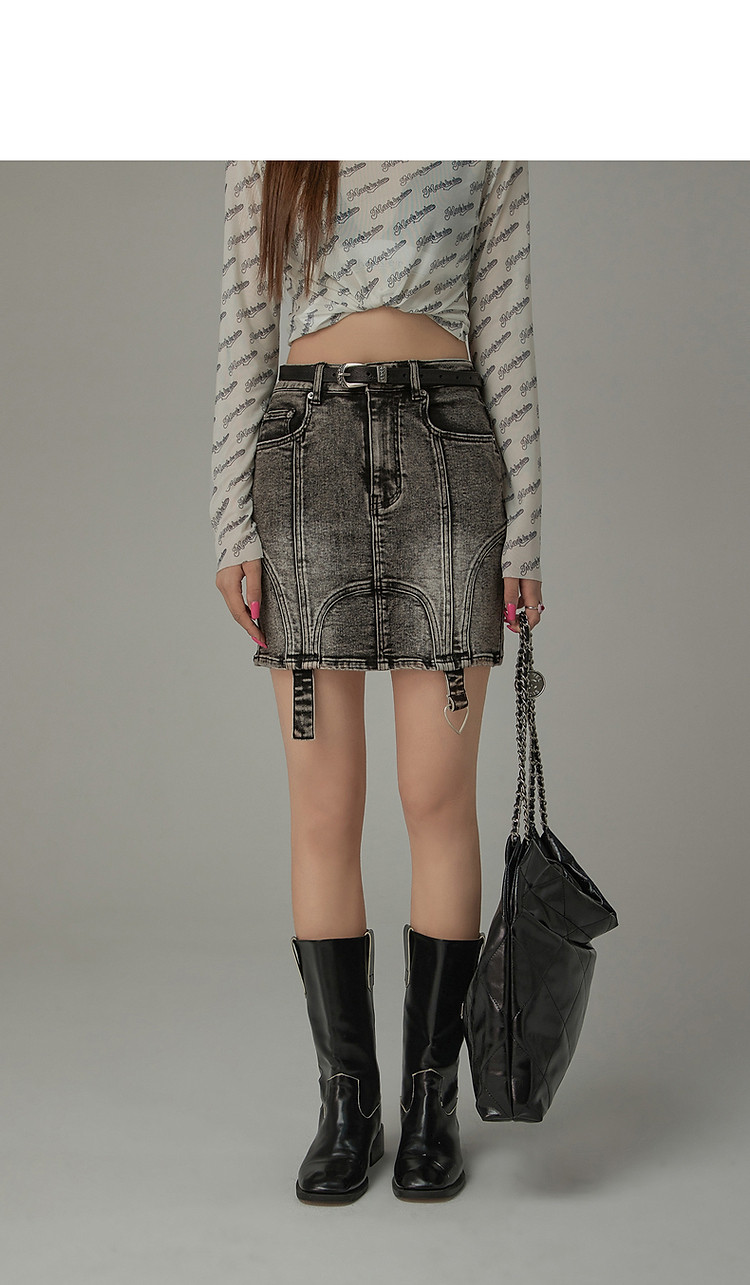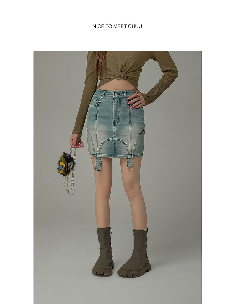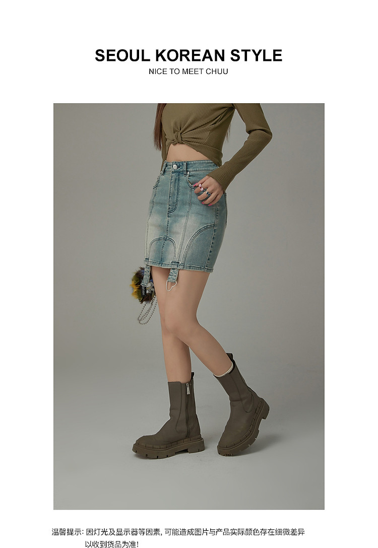 CHUU潮酷高腰半身裙女春秋小众个性显瘦辣妹短裙 371667