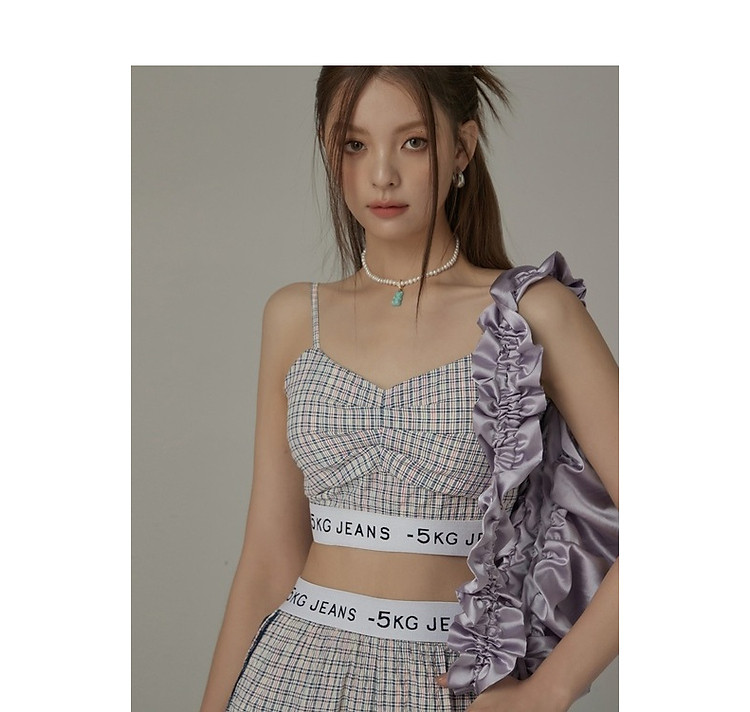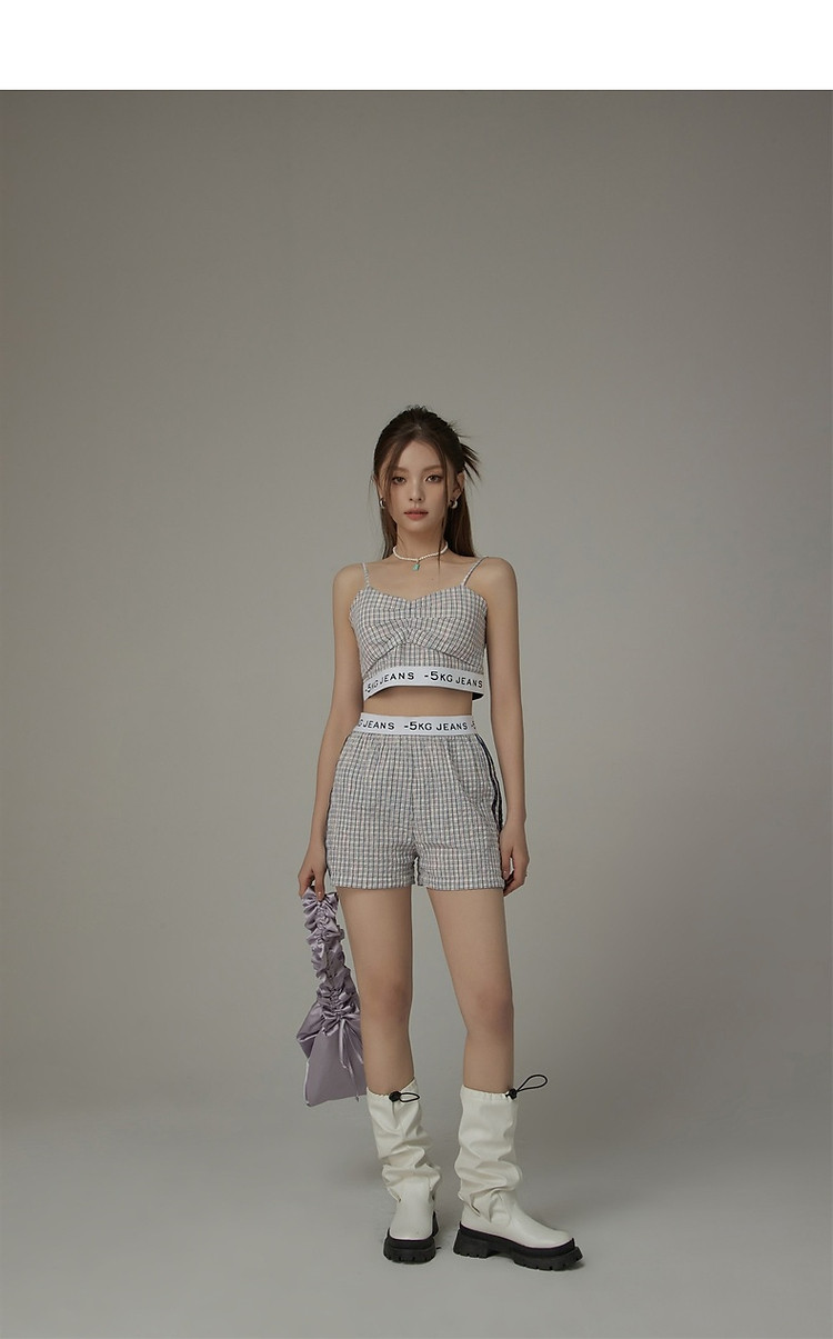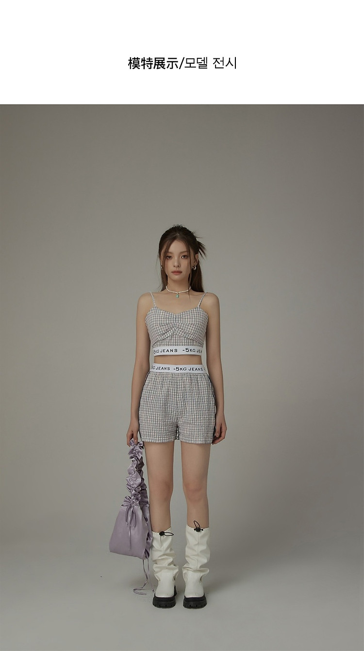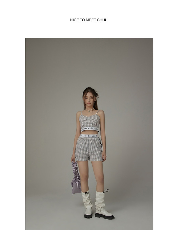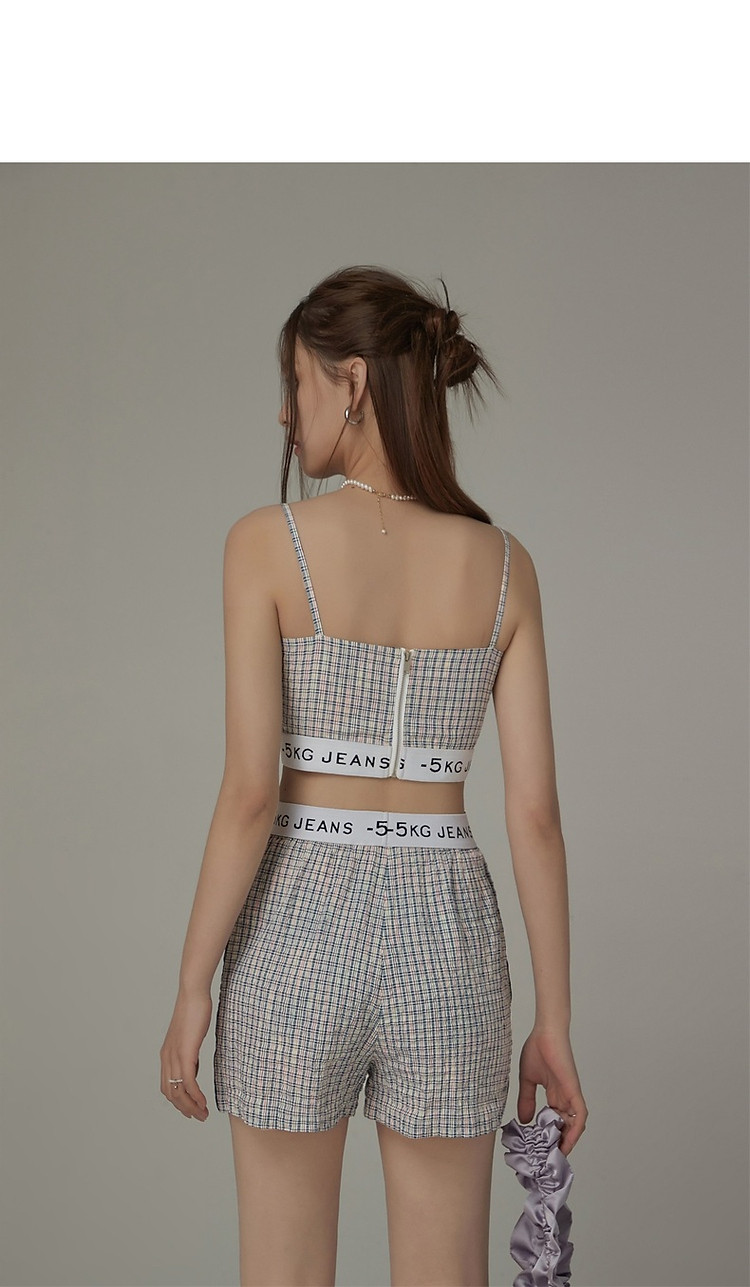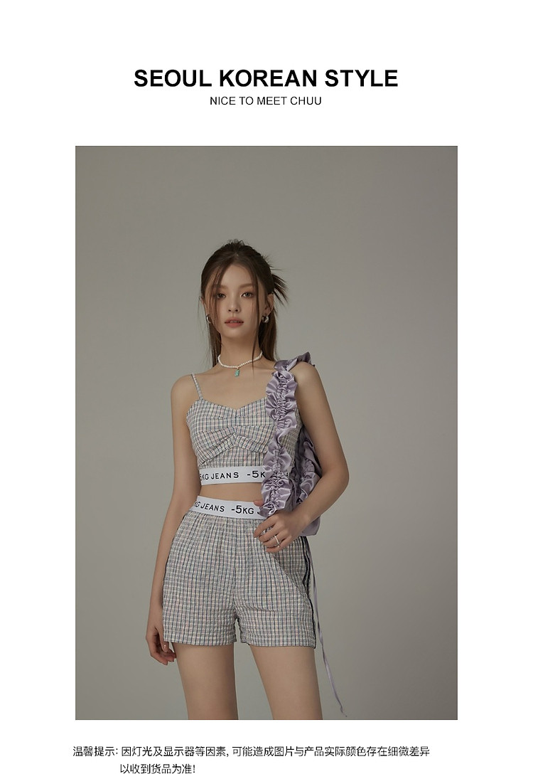 商品名称:CHUU字母格子吊带女夏时尚拉链拼接短款无袖背心上衣 896595
