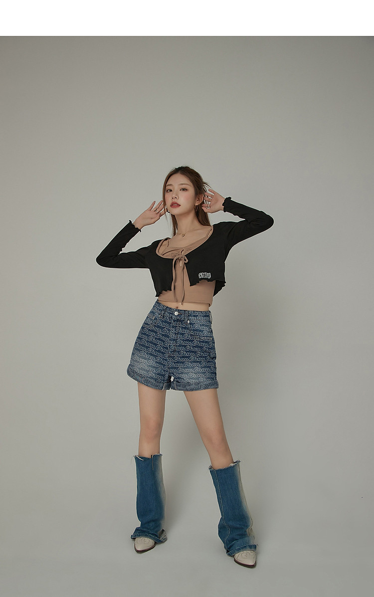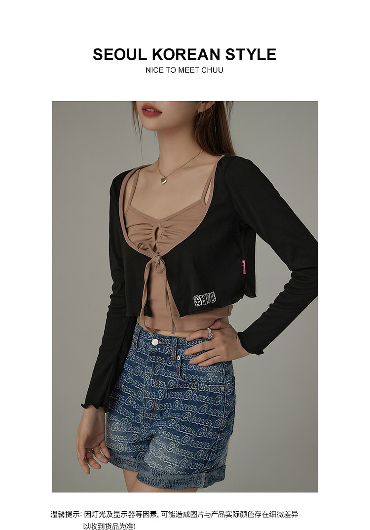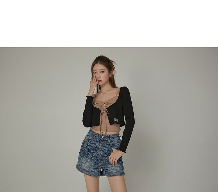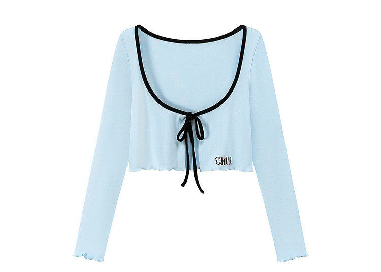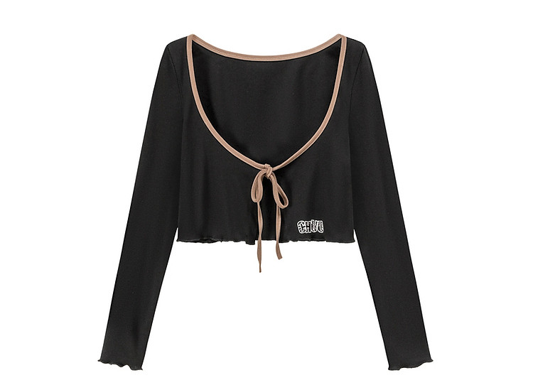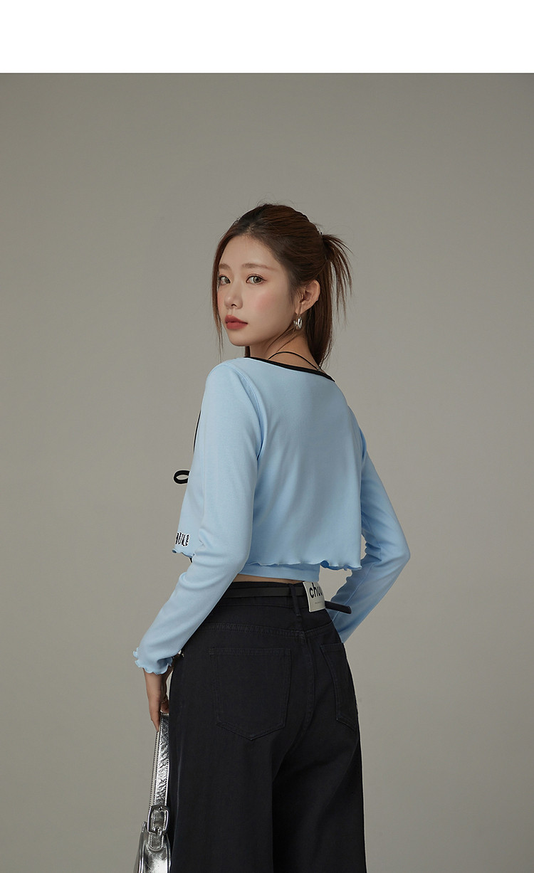 商品名称:印花长袖外套女士春夏木耳边撞色短款上衣 572691