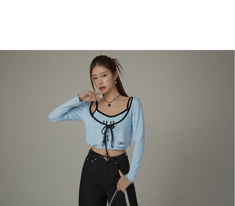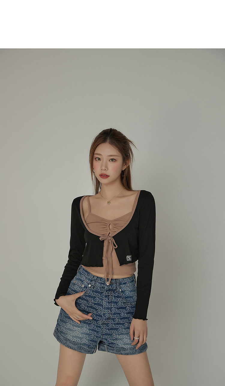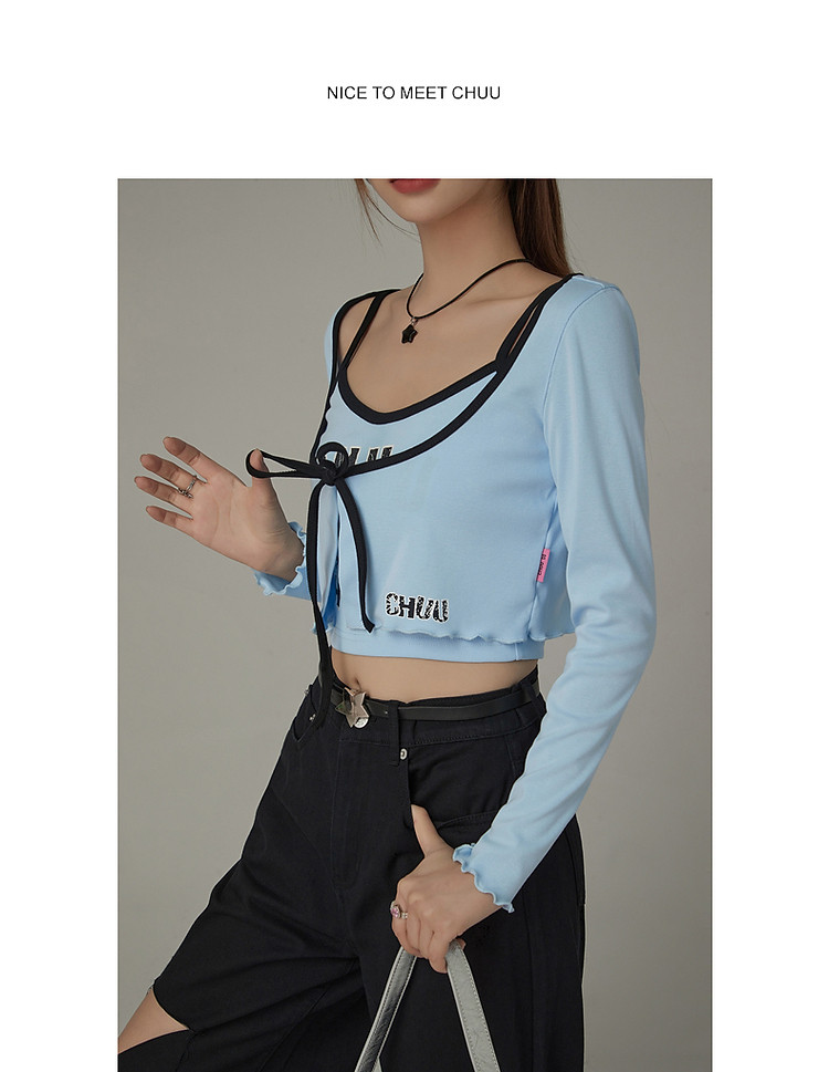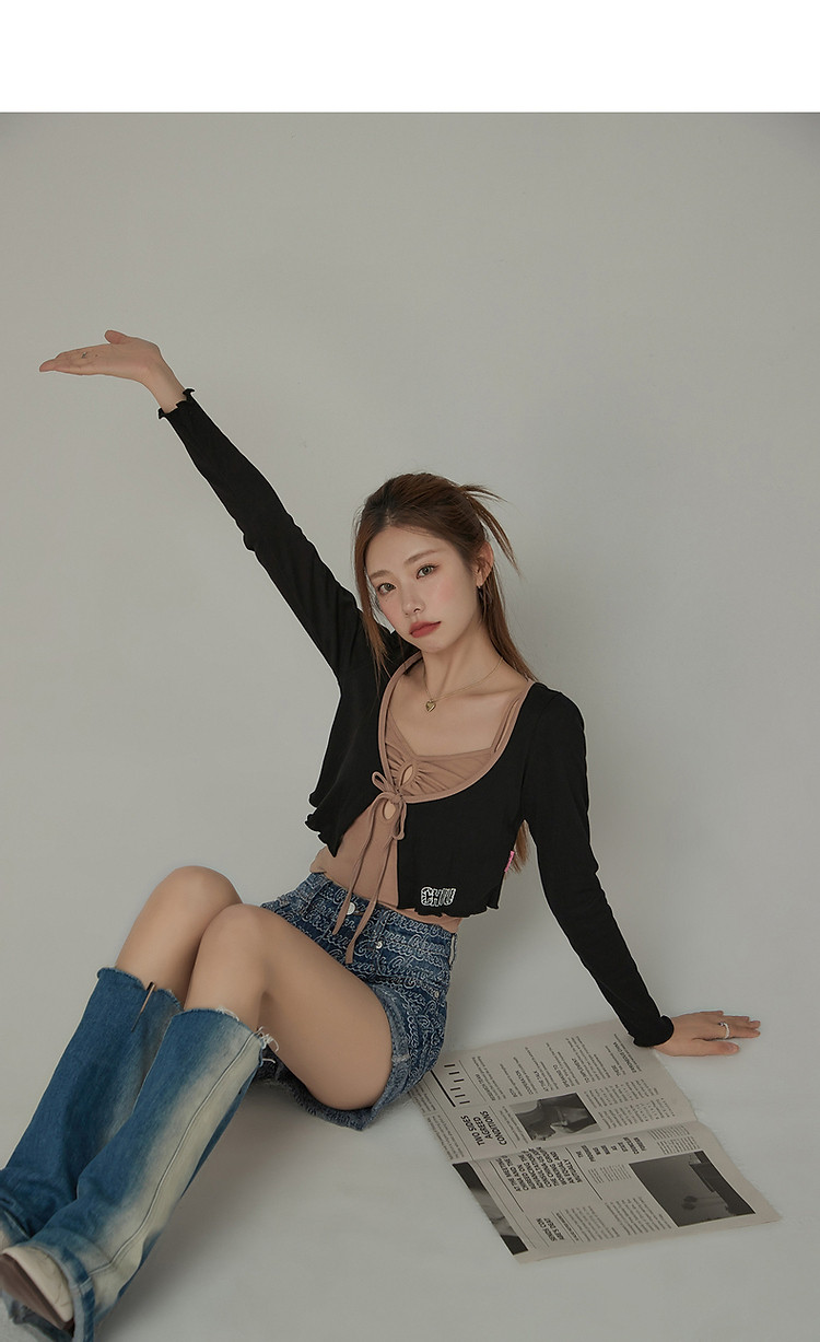 商品名称:印花长袖外套女士春夏木耳边撞色短款上衣 572691