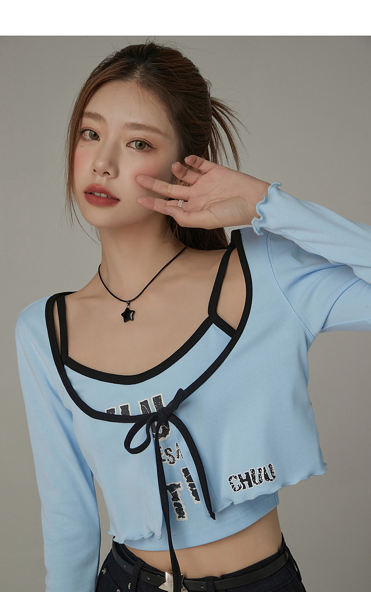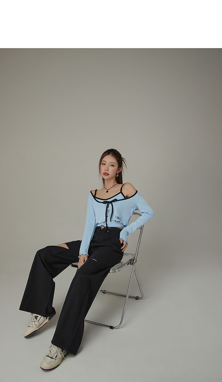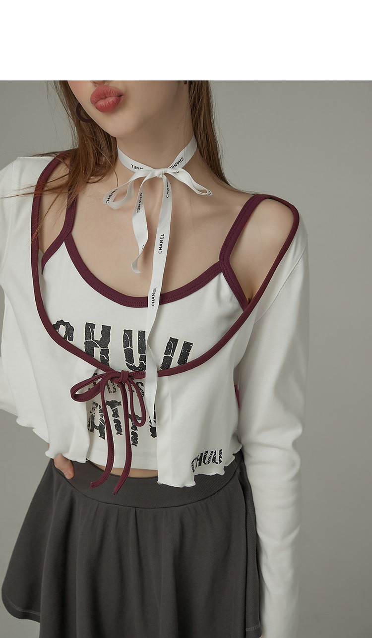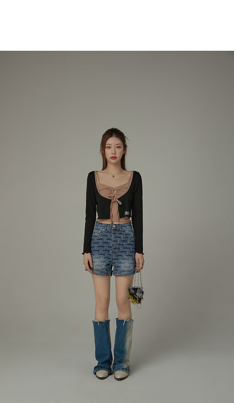 印花长袖外套女士春夏木耳边撞色短款上衣 572691