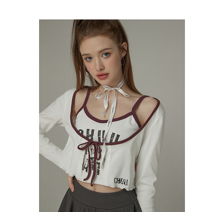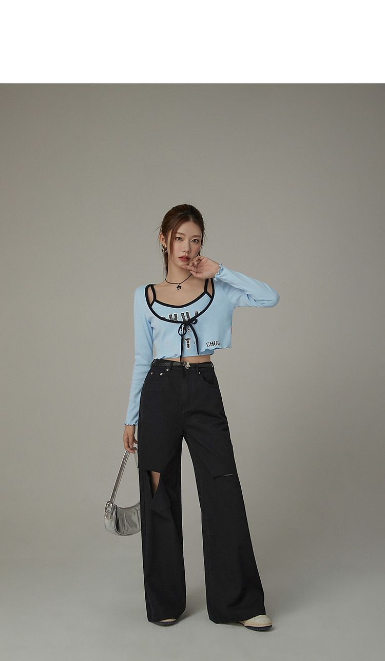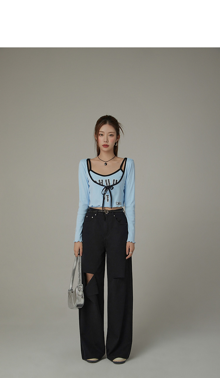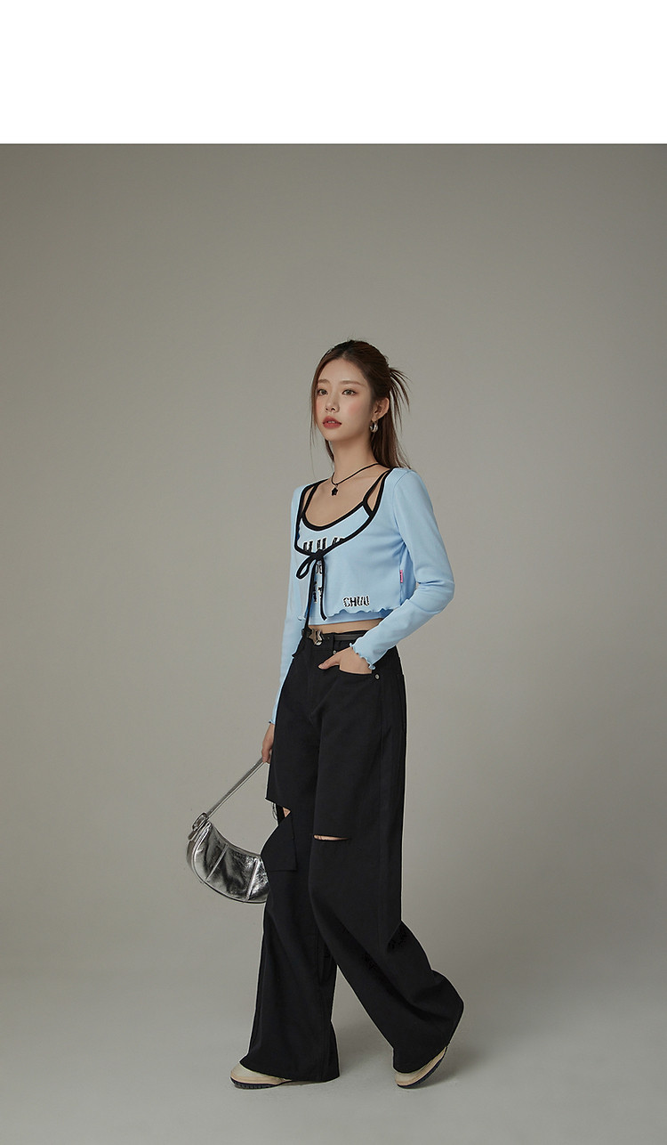 印花长袖外套女士春夏木耳边撞色短款上衣 572691