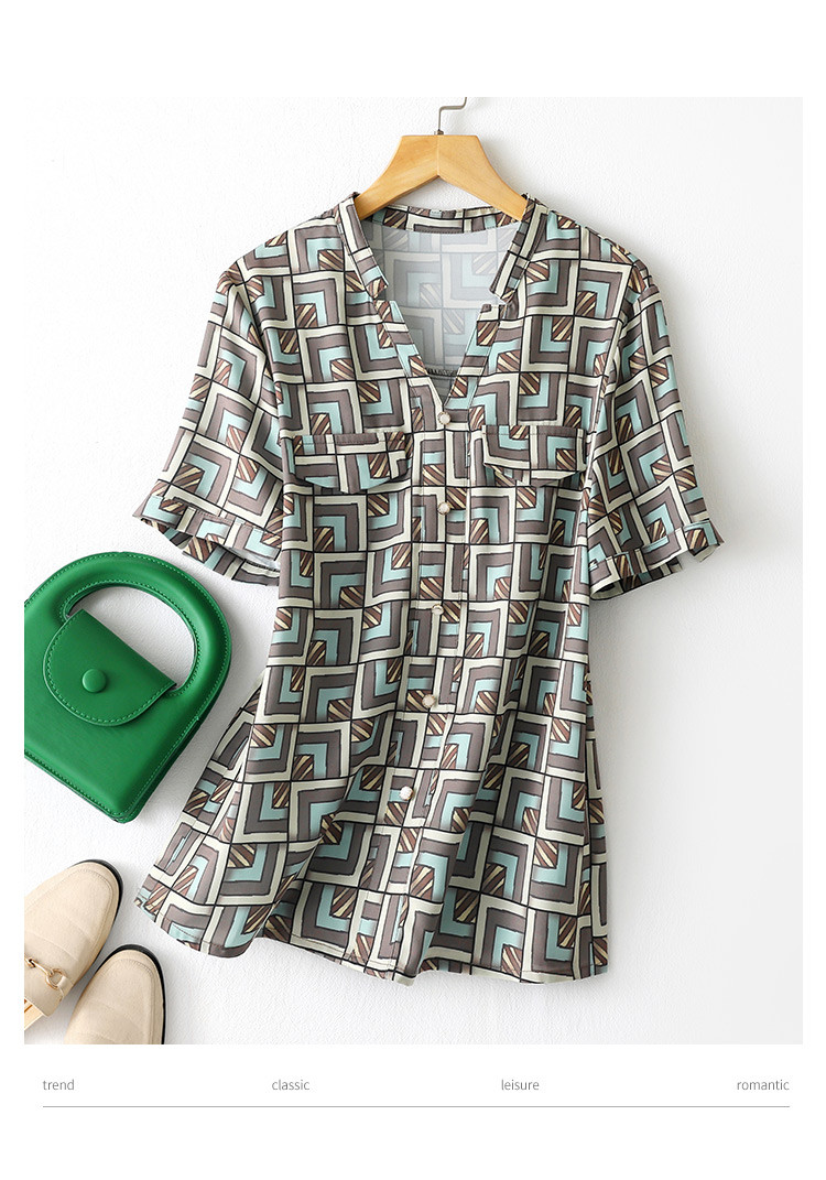 商品名称:2025夏季新款法式高端复古设计感宽松印花显瘦衬衣气质格子衬衫潮 649801