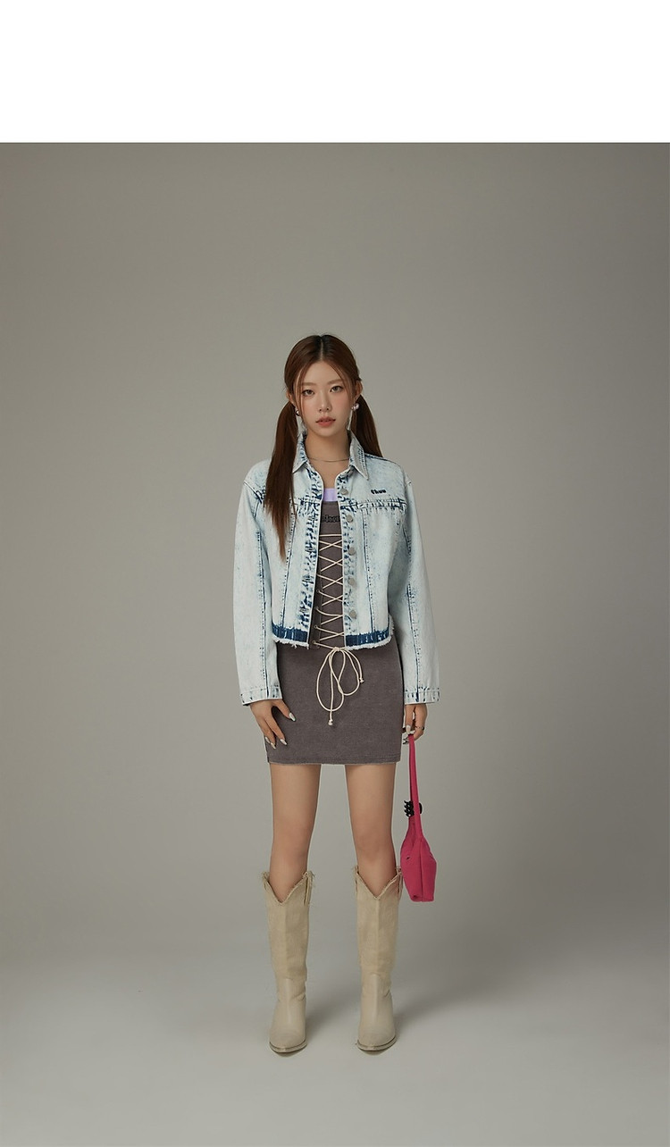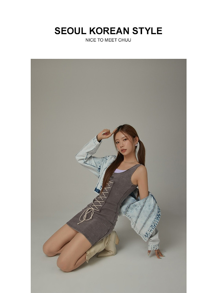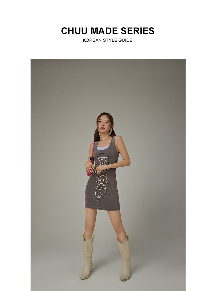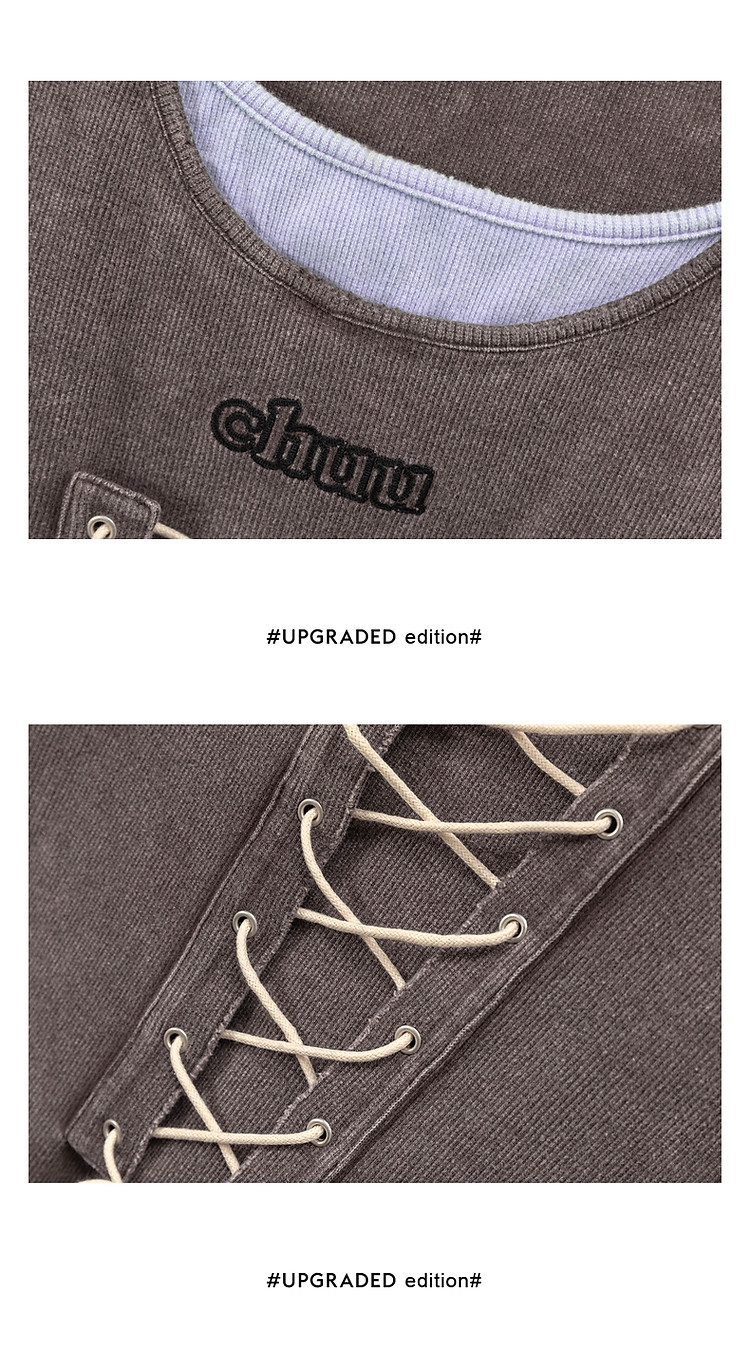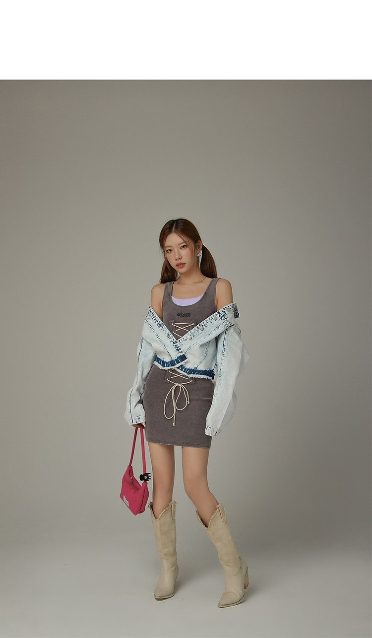 拼接字母连衣裙女春秋磨破系带无袖背心裙时尚短裙 648083