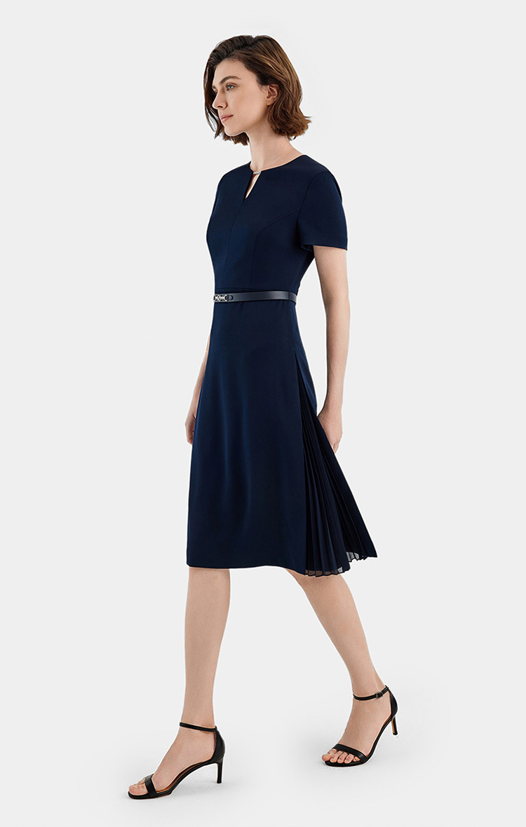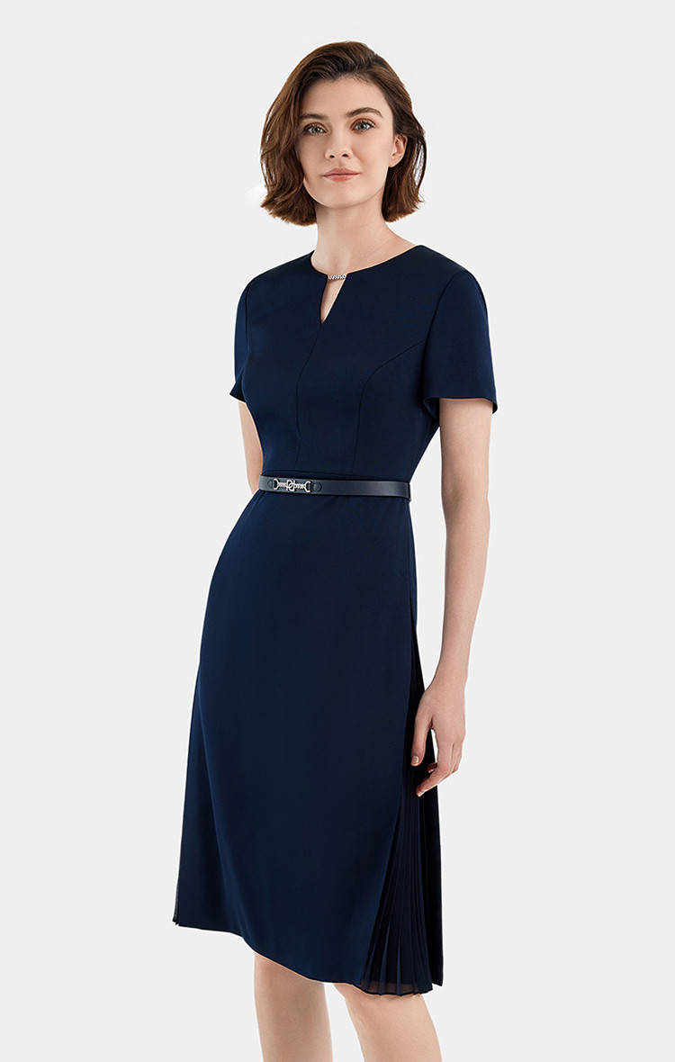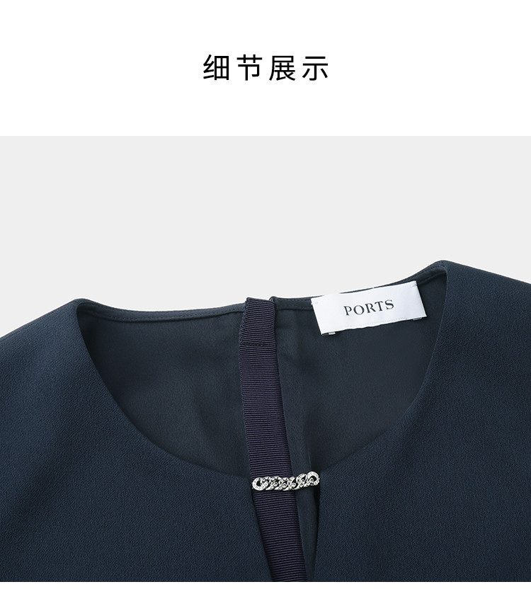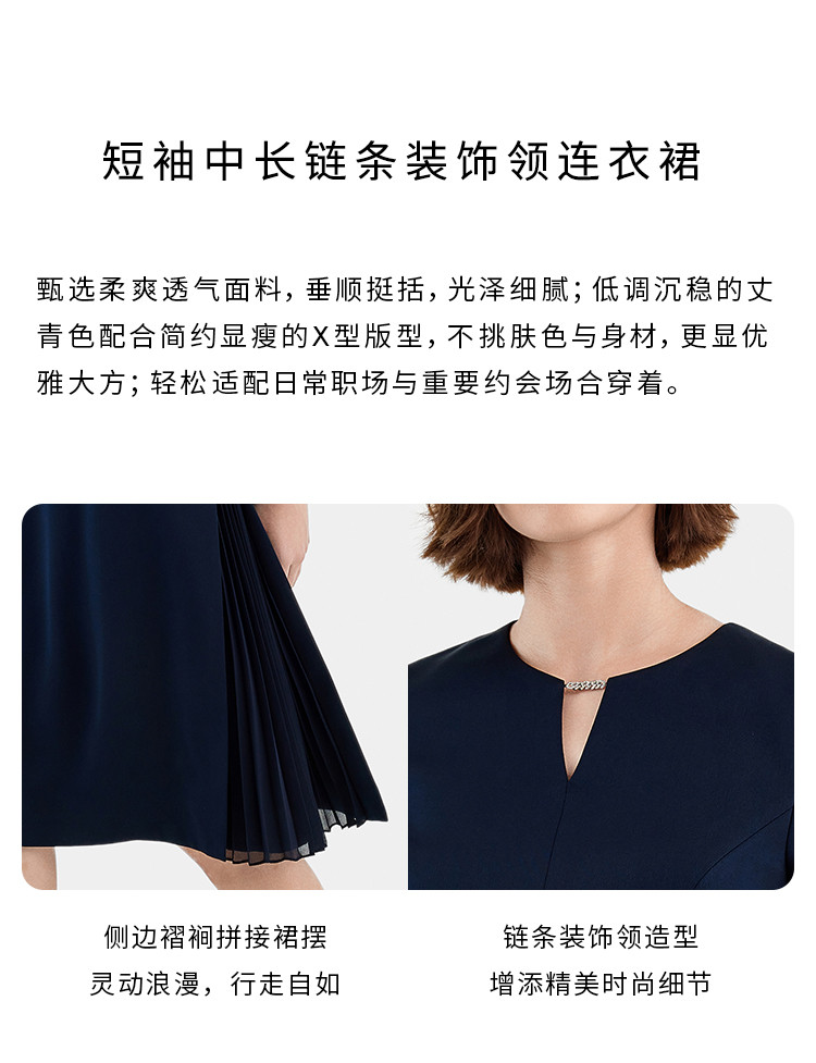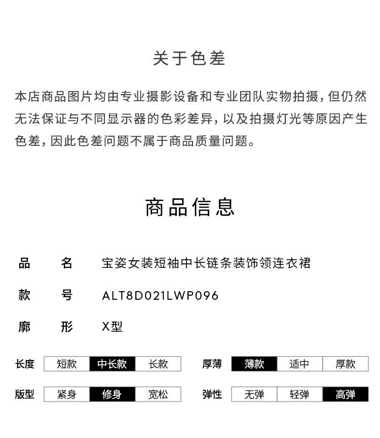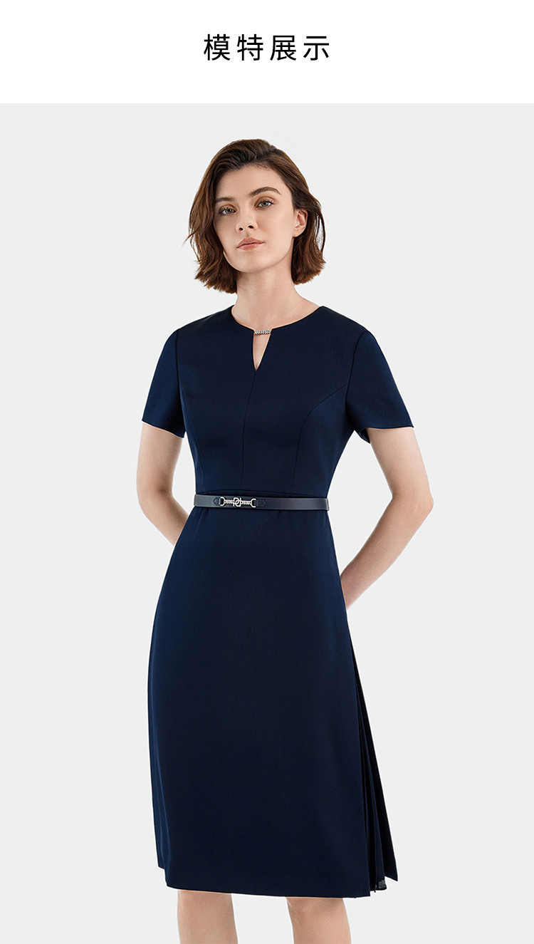商品名称:宝姿PORTS女装商务优雅纯色短袖中长款连衣裙 568778