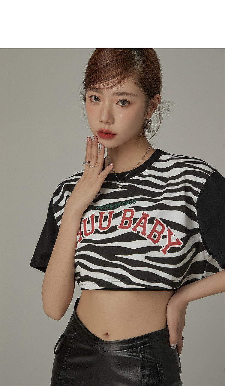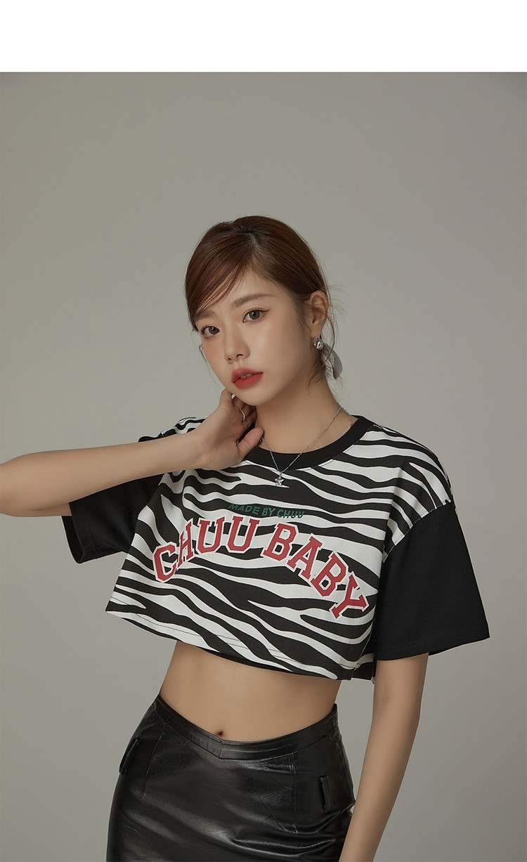 CHUU斑马纹短袖T恤女士春夏印花撞色短款上衣 670995