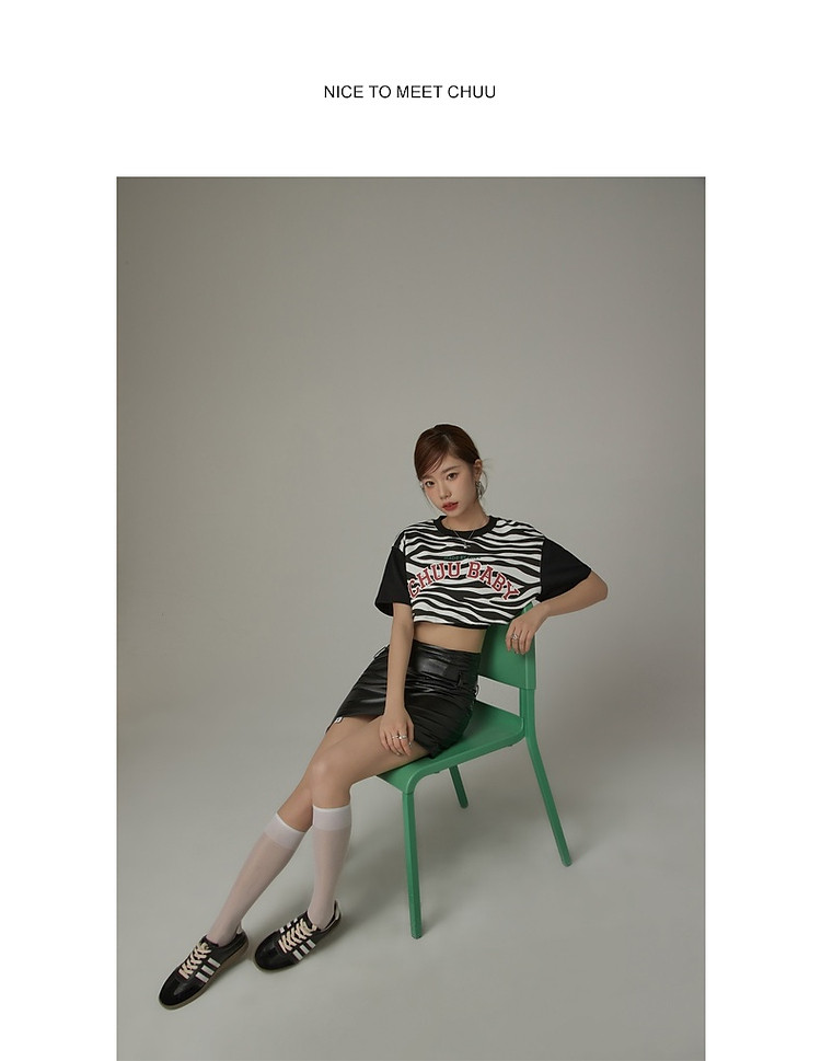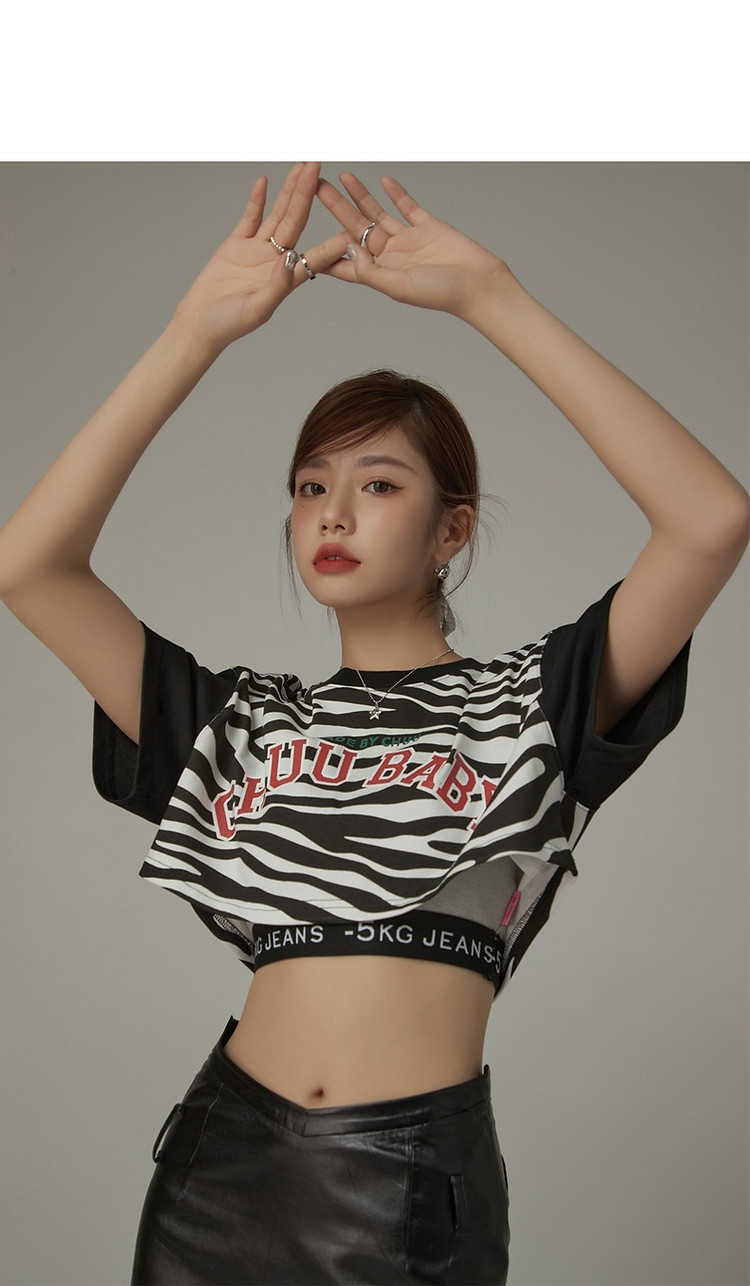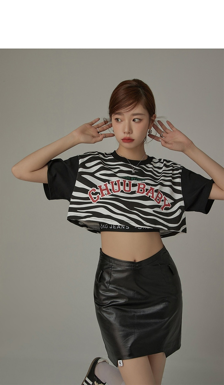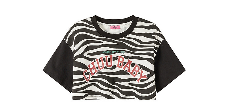 商品名称:CHUU斑马纹短袖T恤女士春夏印花撞色短款上衣 670995