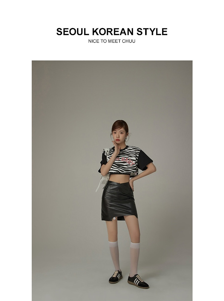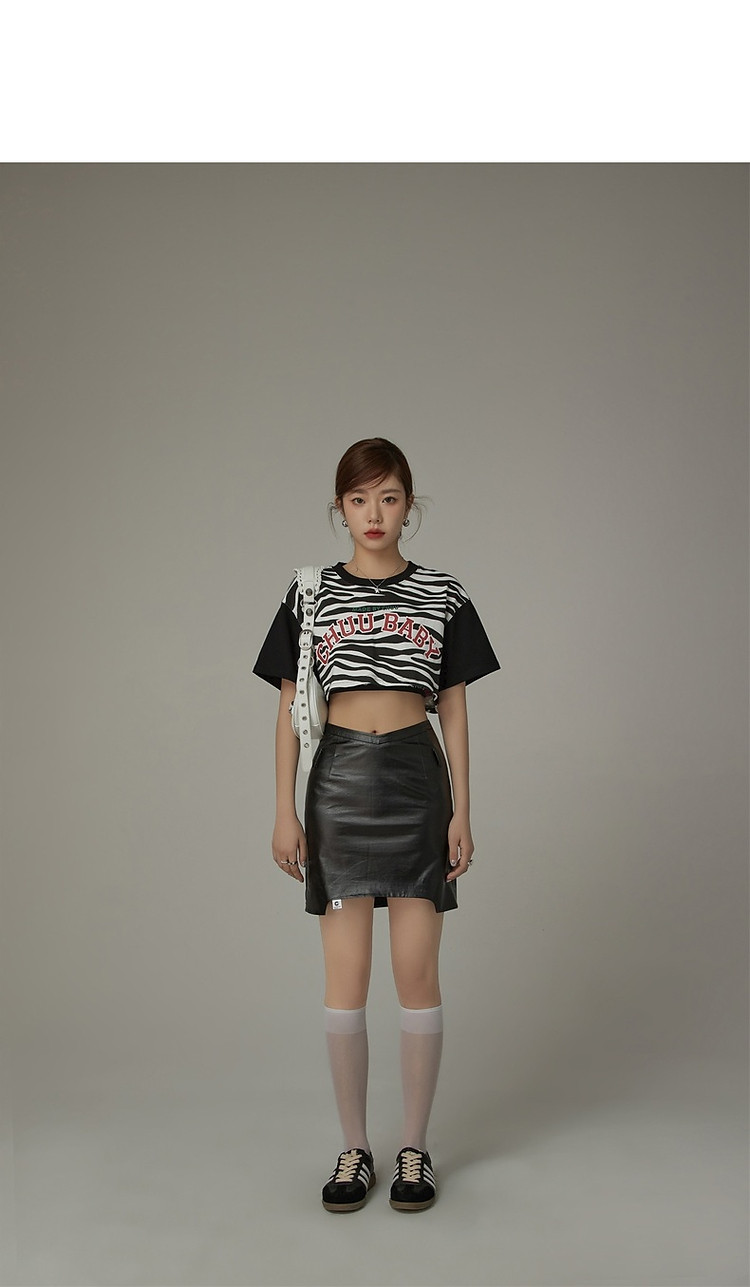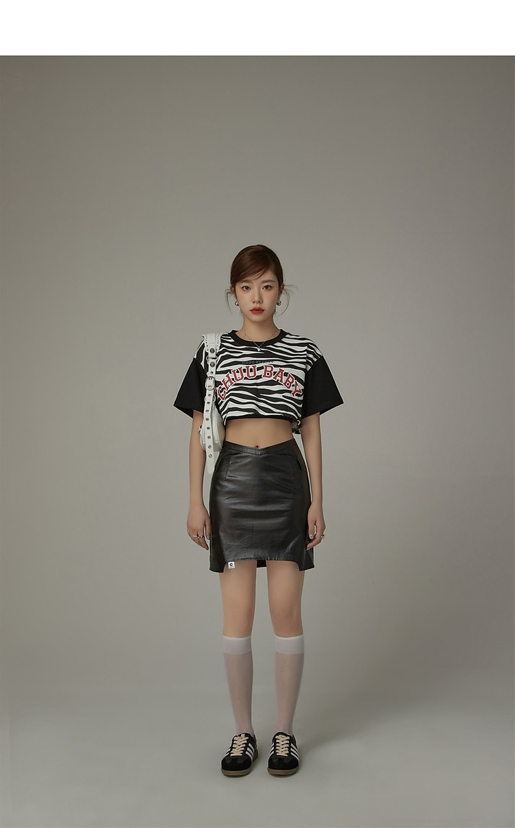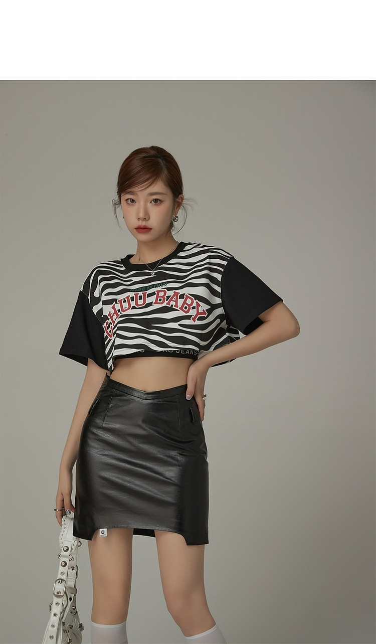 商品名称:CHUU斑马纹短袖T恤女士春夏印花撞色短款上衣 670995