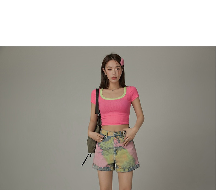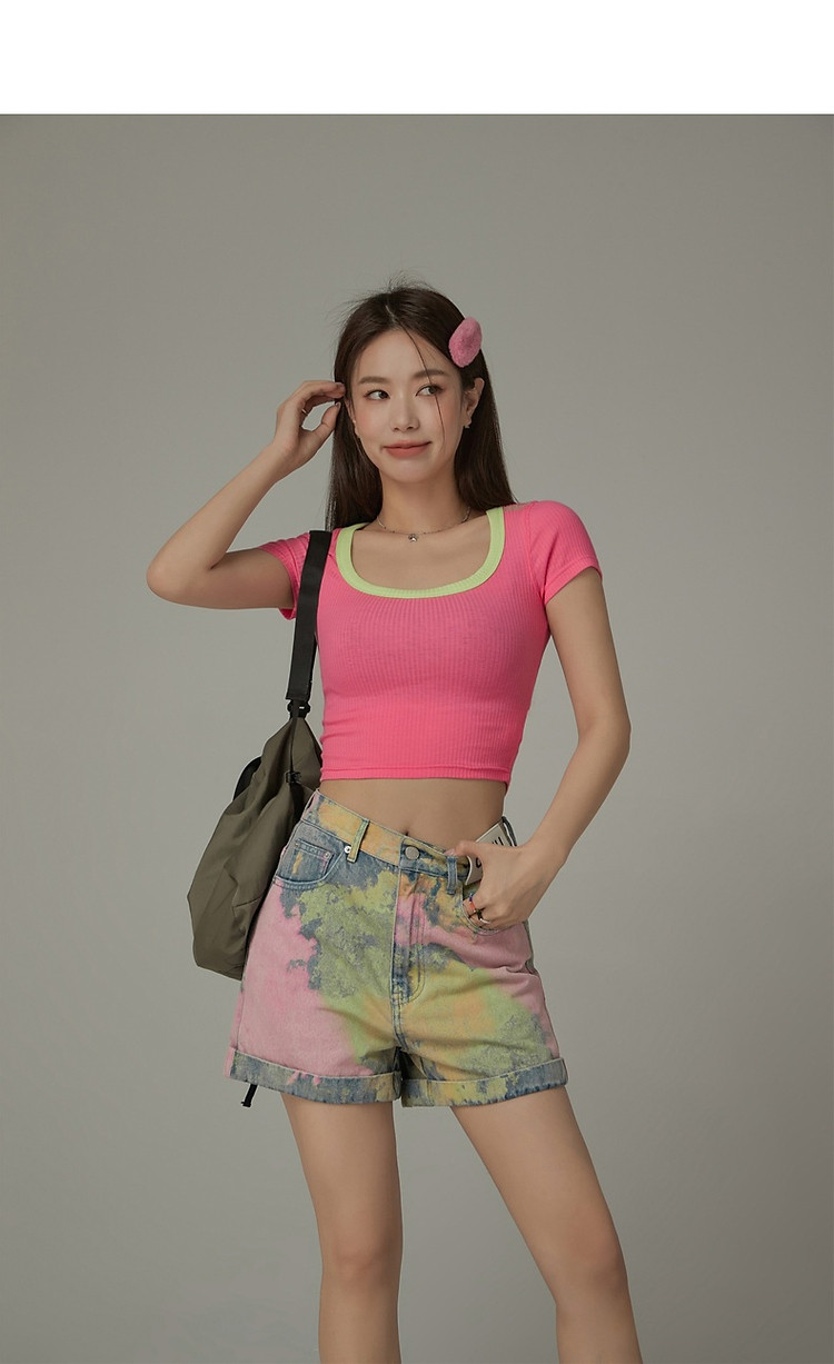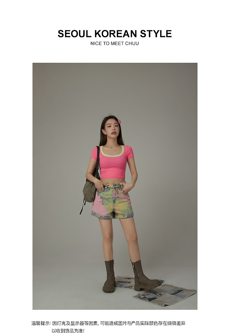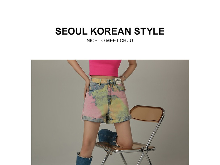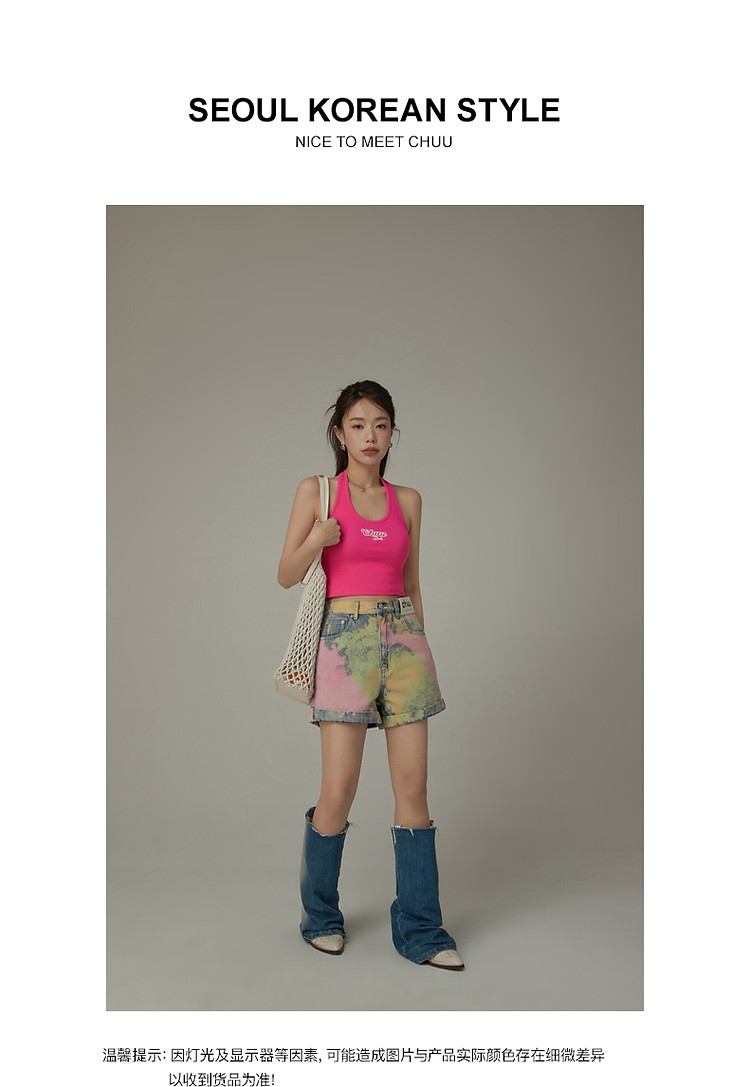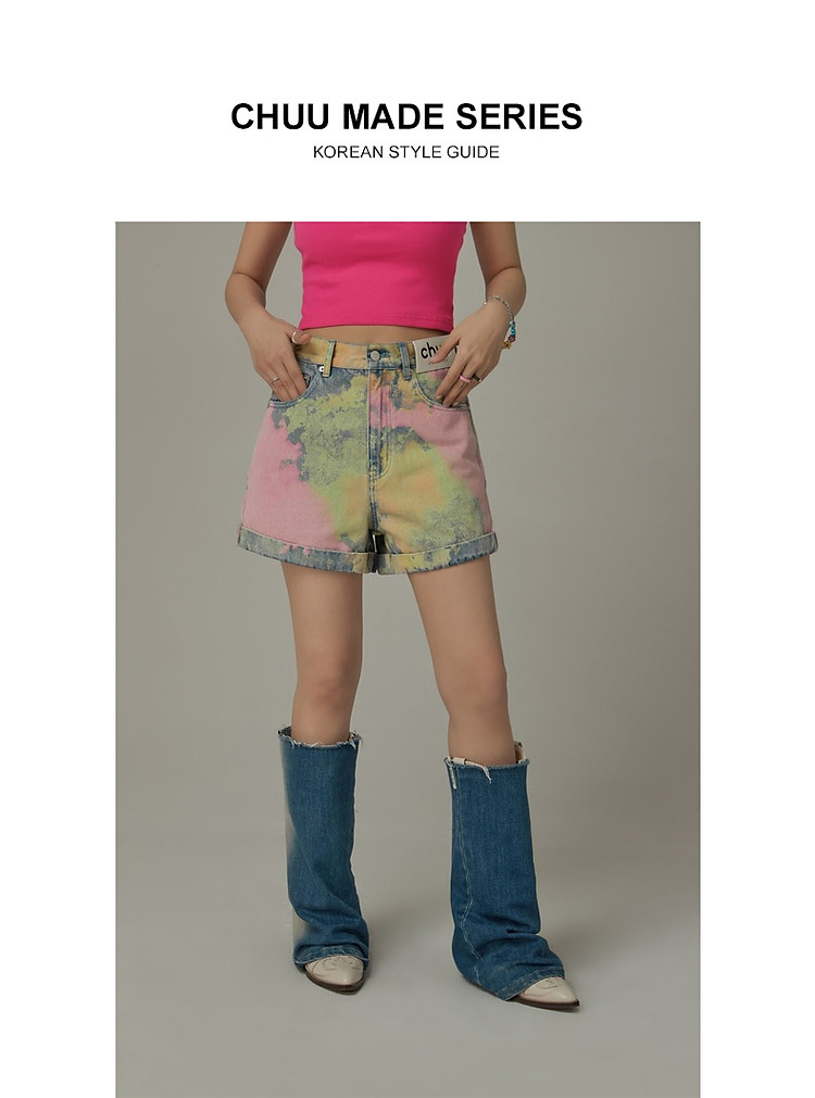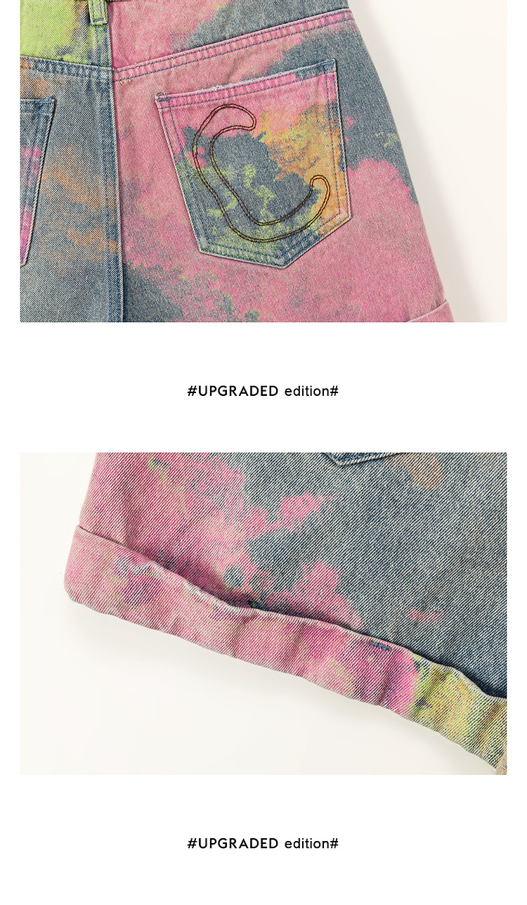商品名称:迷彩高腰牛仔裤女士夏设计感辣妹别致宽松短裤子 933203