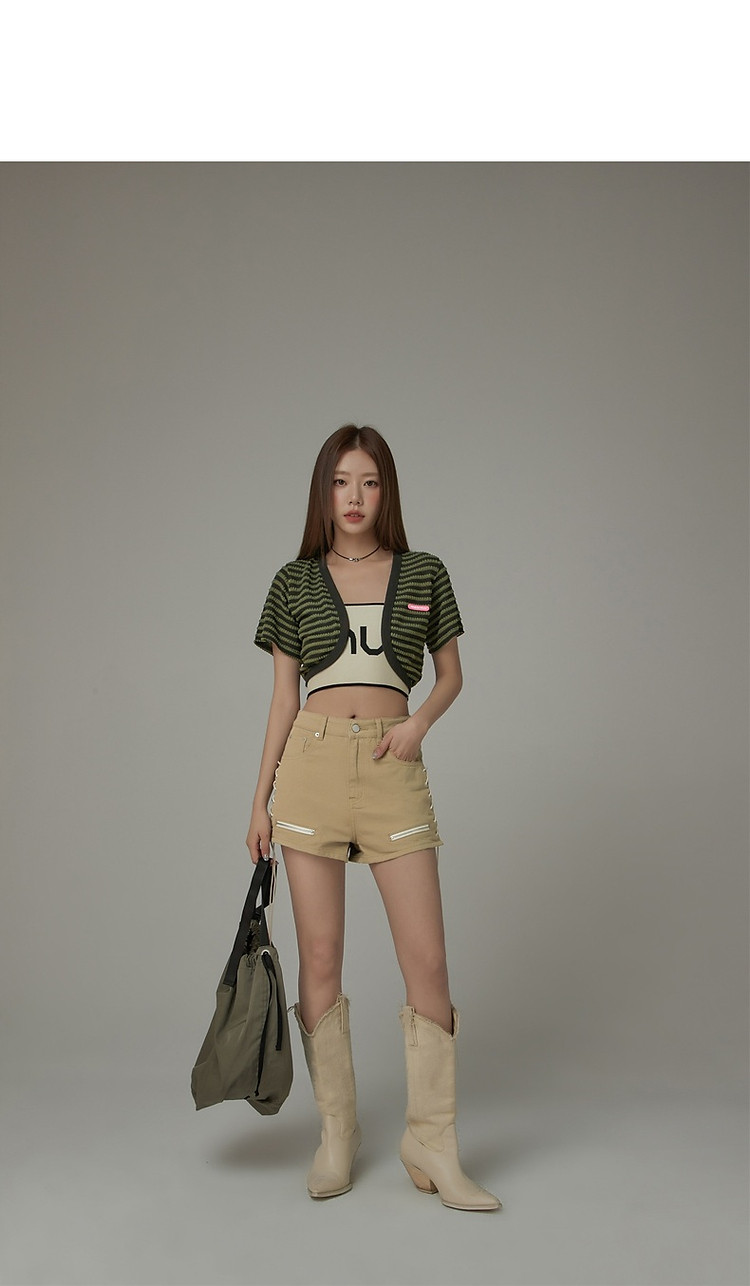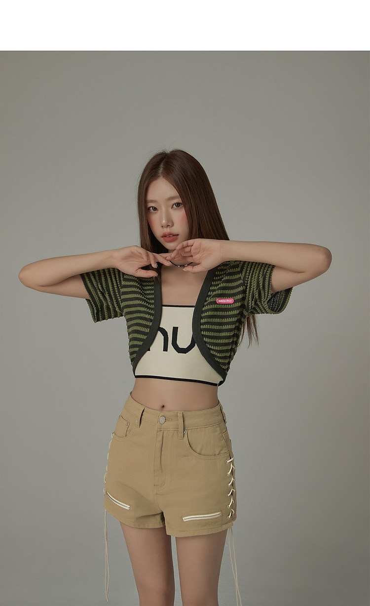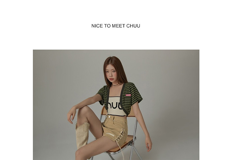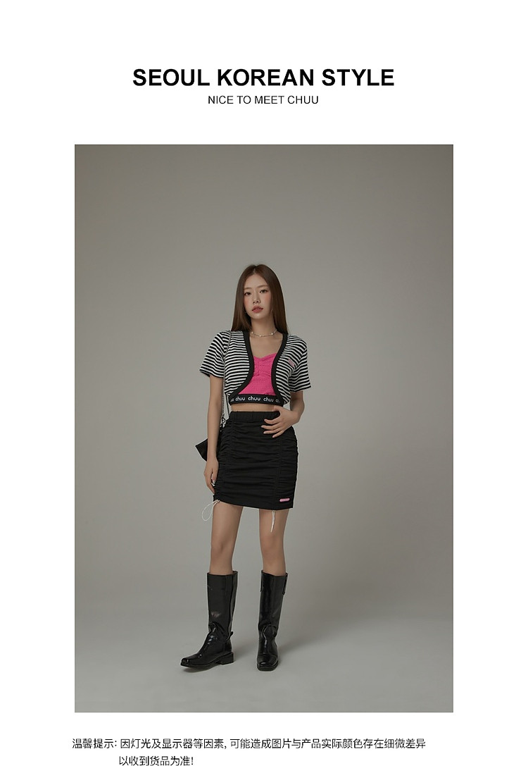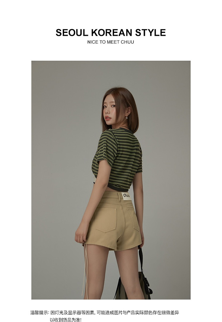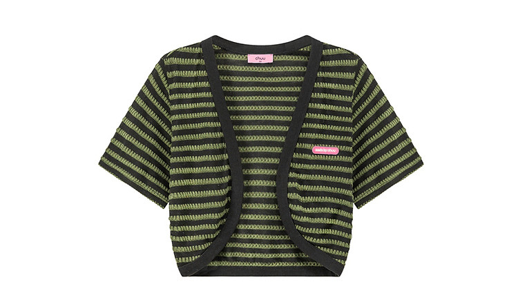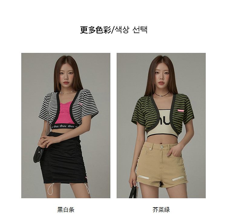 商品名称:CHUU条纹撞色短外套女士春夏贴标短袖开衫短外套 478483