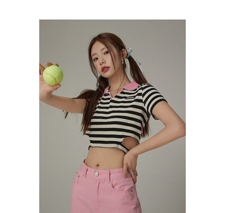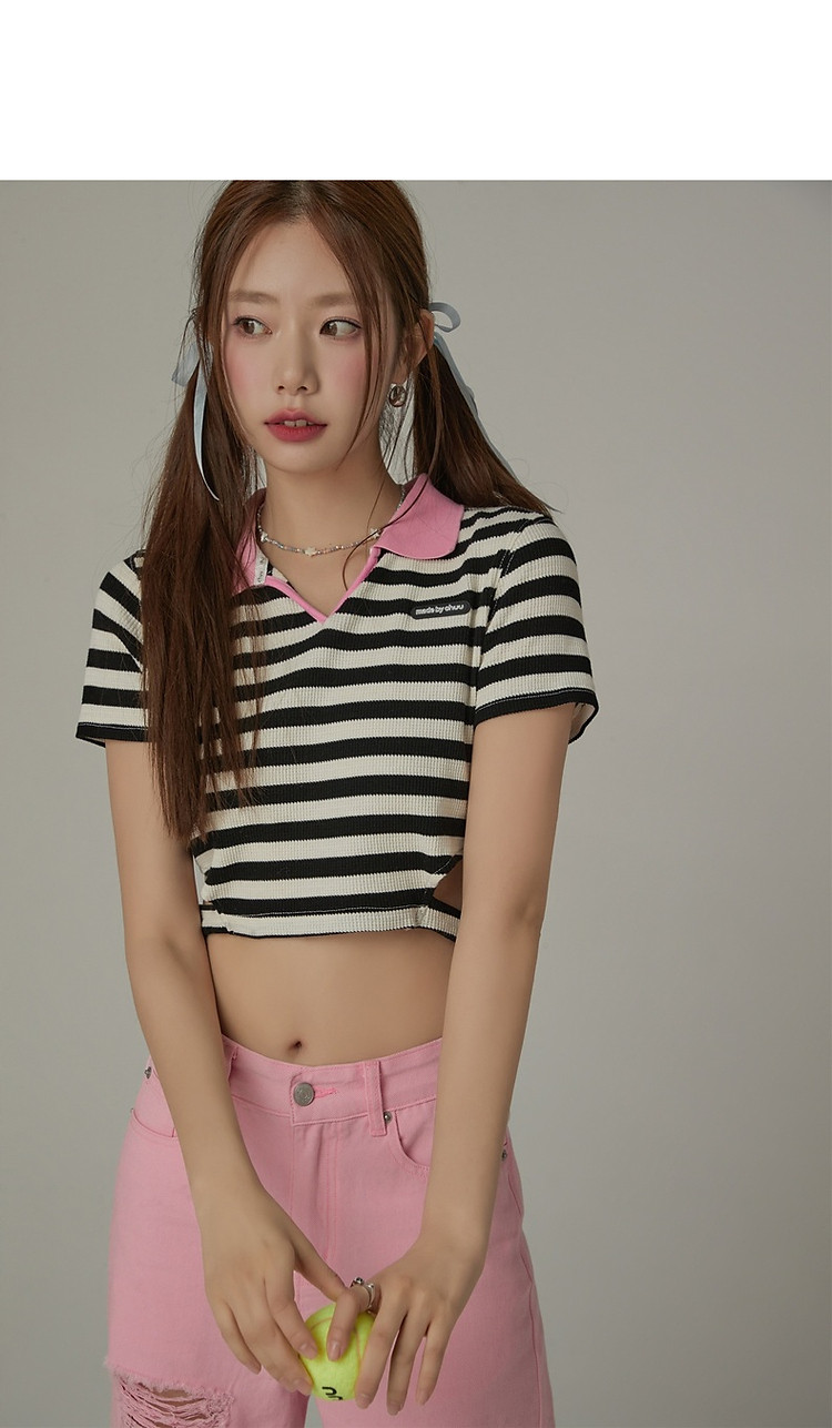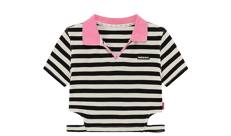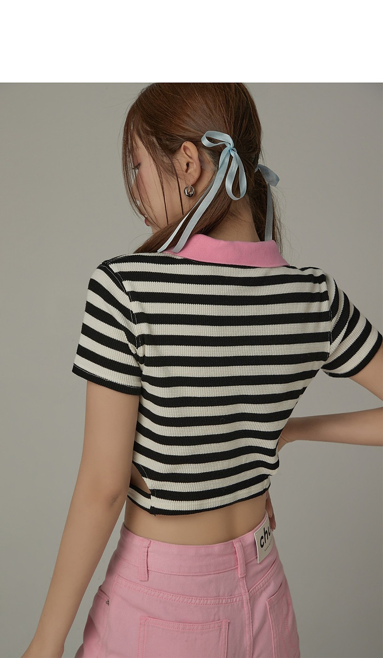 商品名称:黑白条纹T恤女春夏小个子甜辣露脐镂空短袖上衣 859731