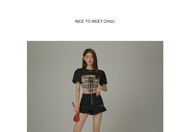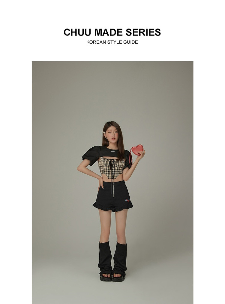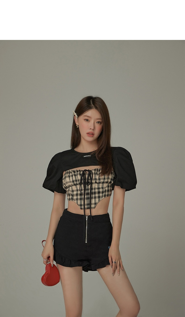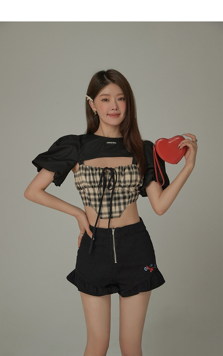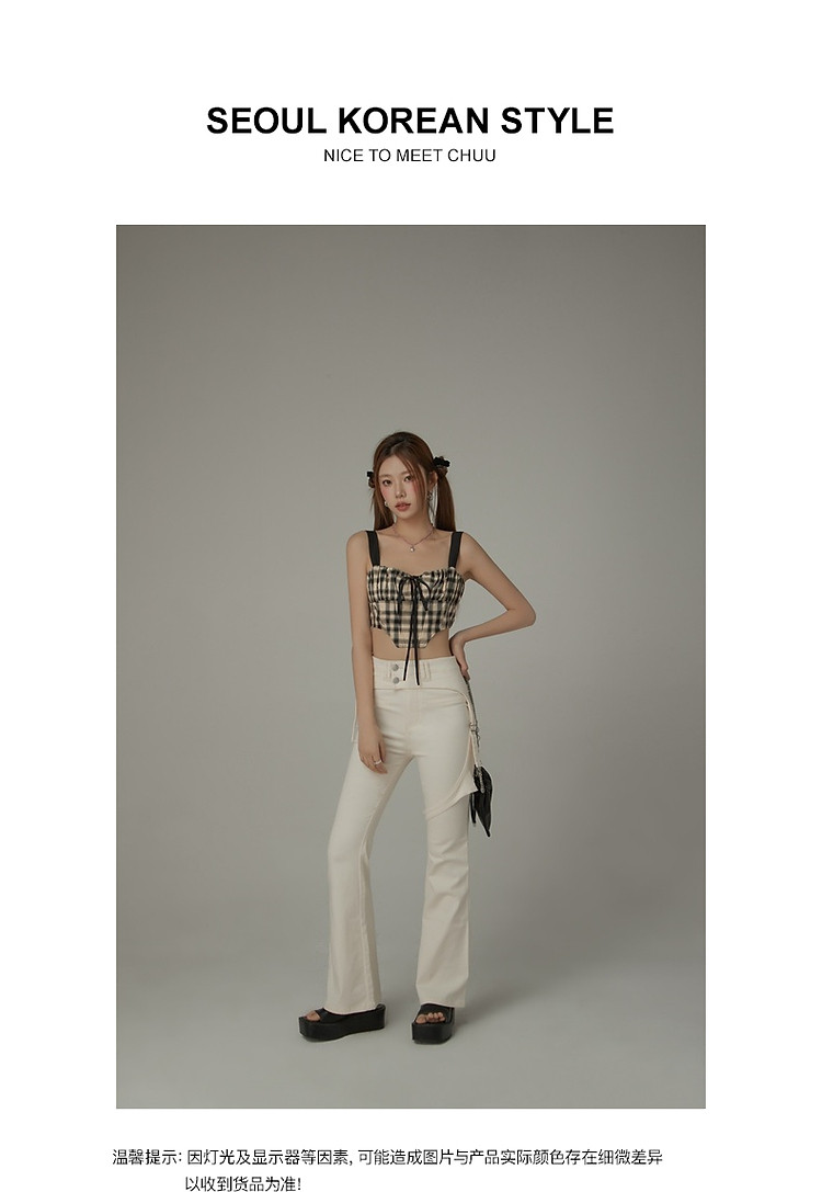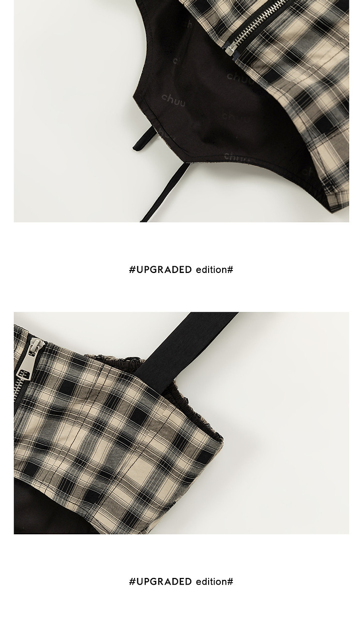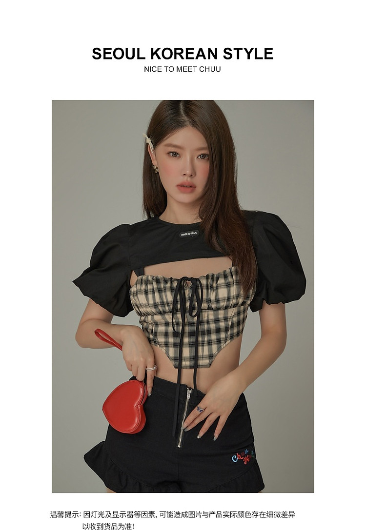 商品名称:格纹系带小背心女春夏甜辣抽褶小个子不规则爱心吊带 924947