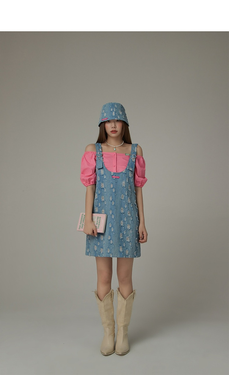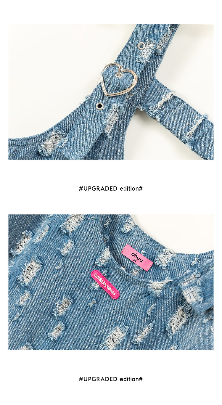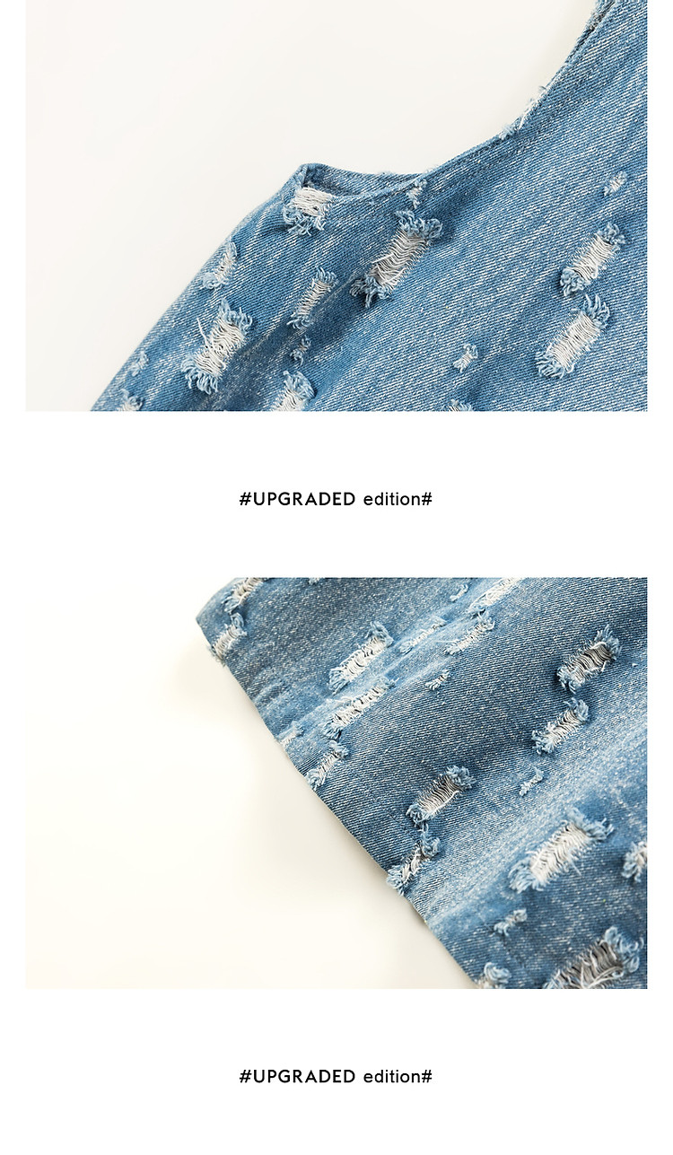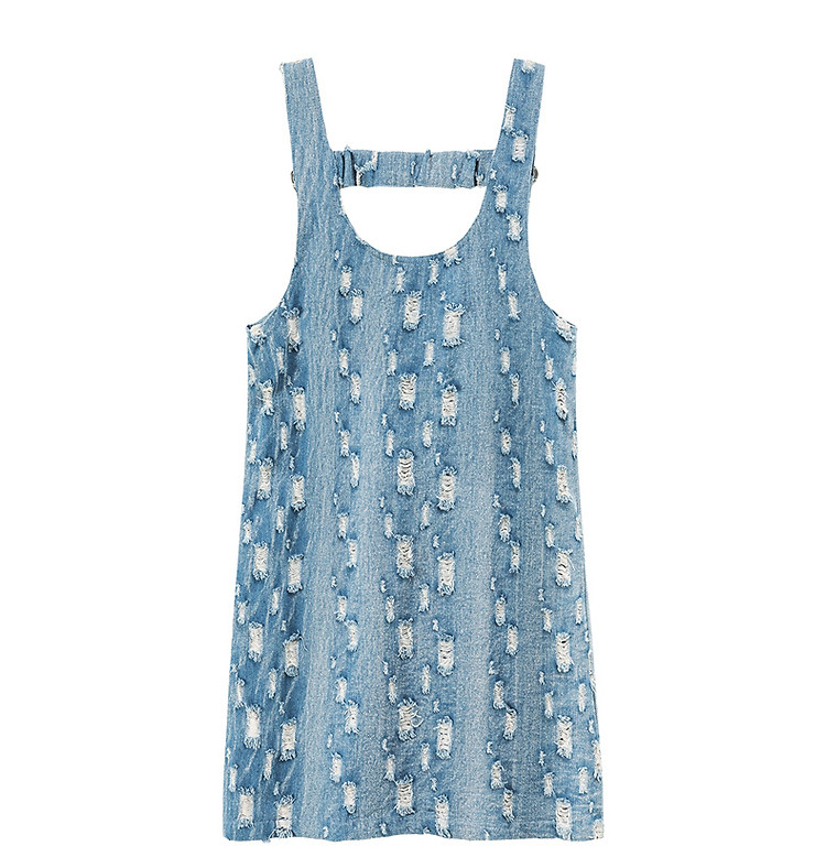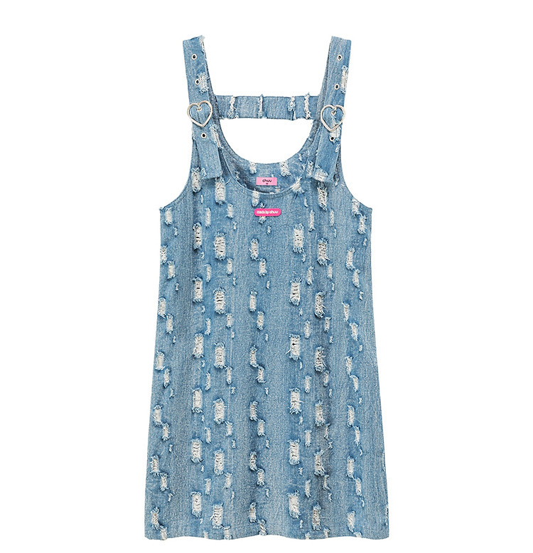 商品名称:宽松直筒连衣裙女夏设计感破洞牛仔背带裙短裙子 054099